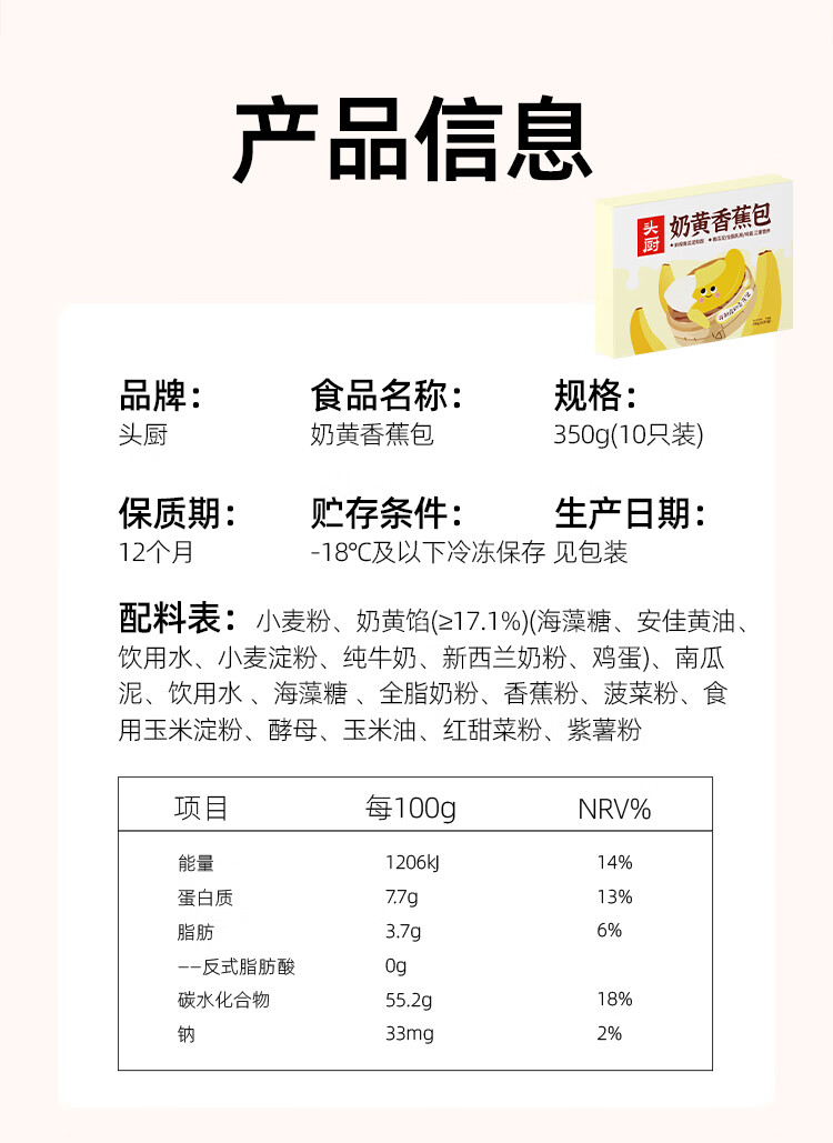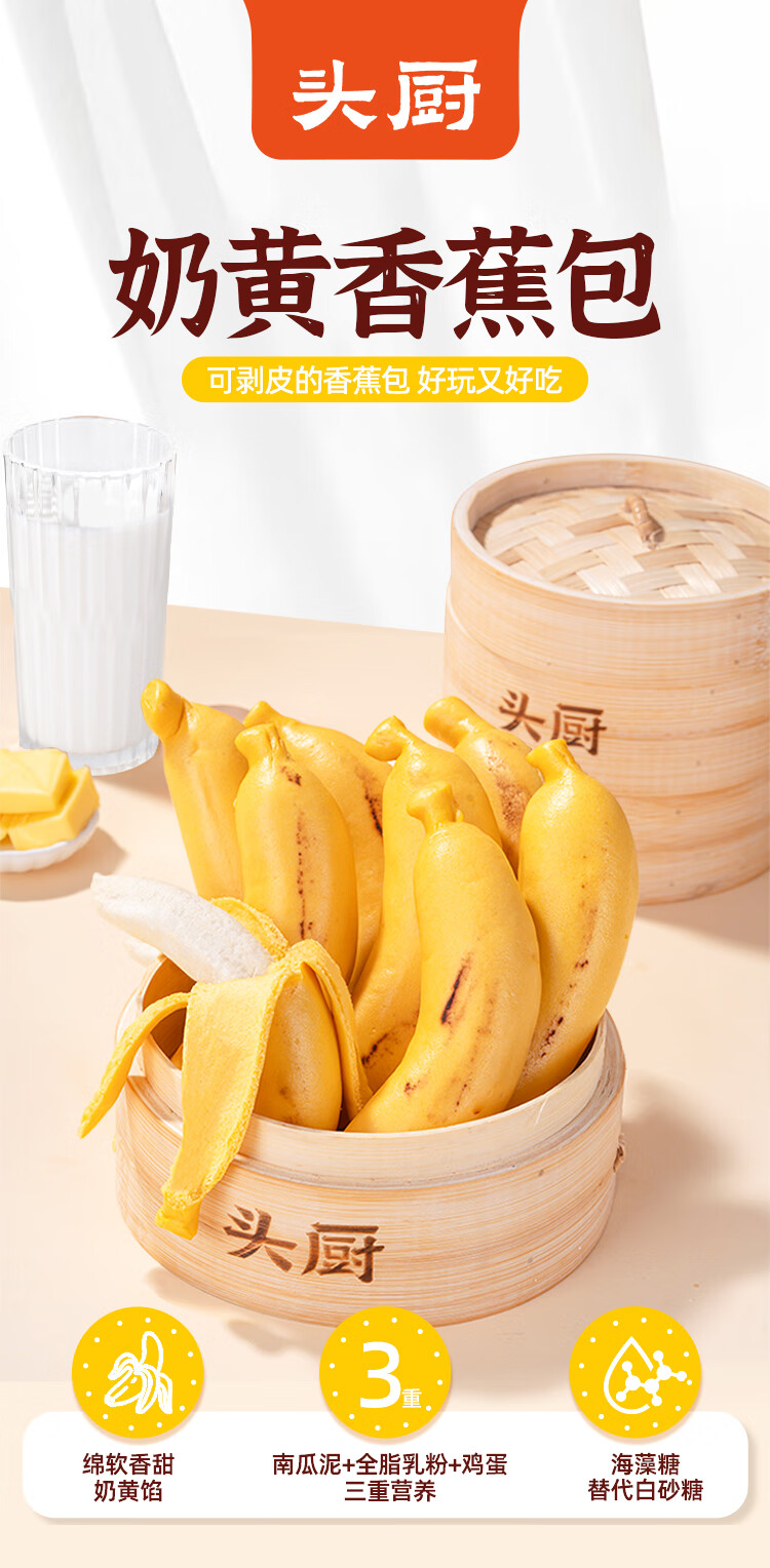 头厨奶黄香蕉包350g共10只 儿童早餐包学生早餐食品半成品