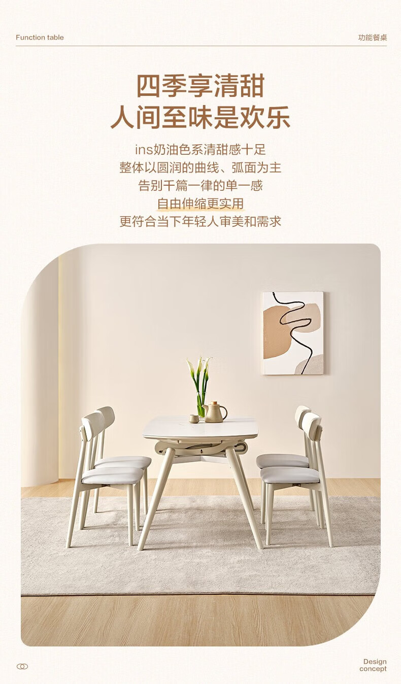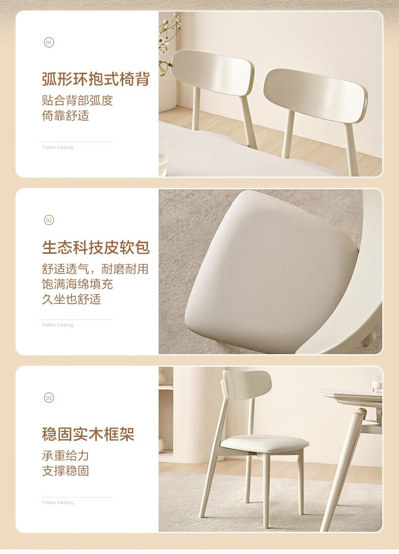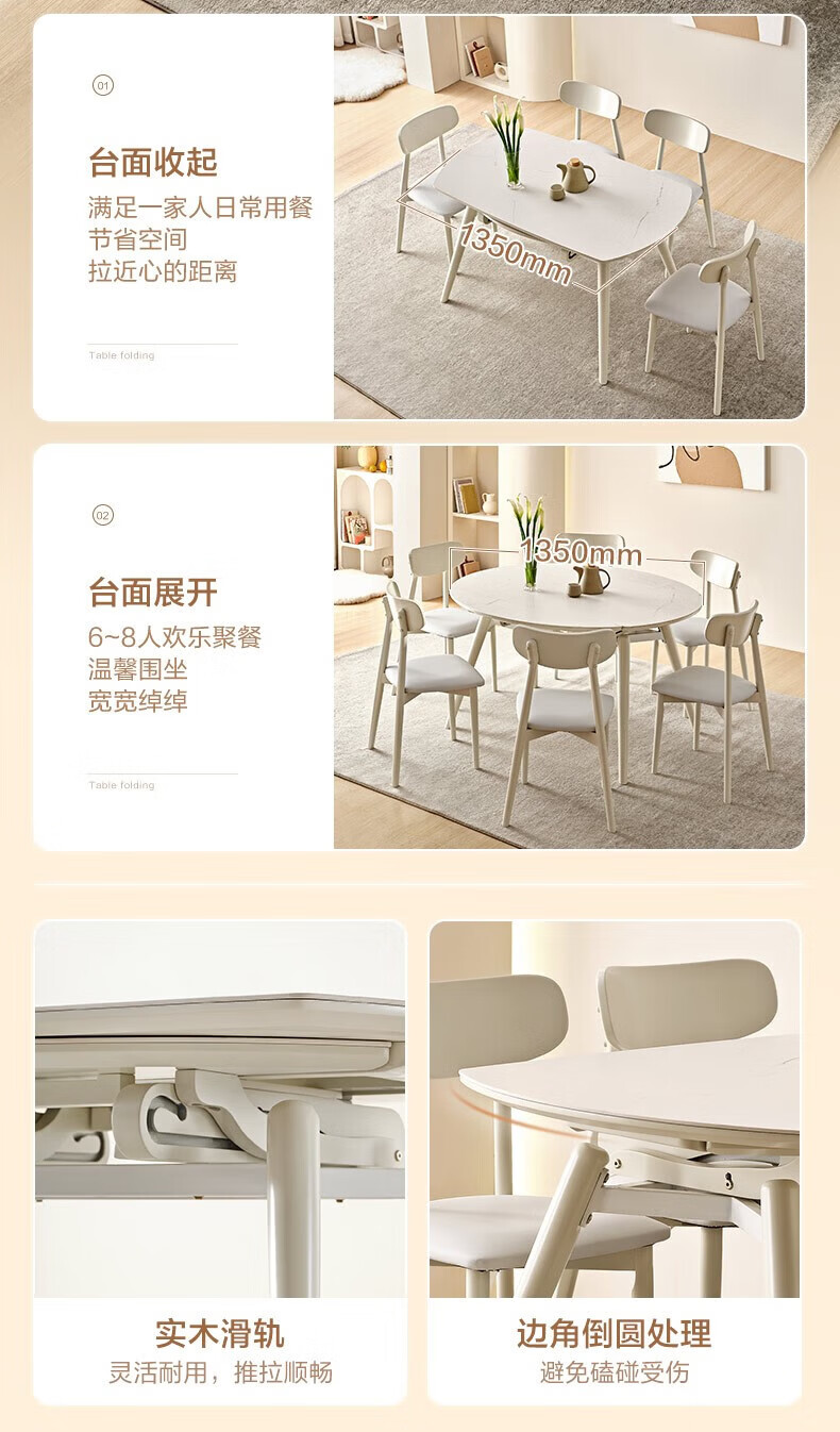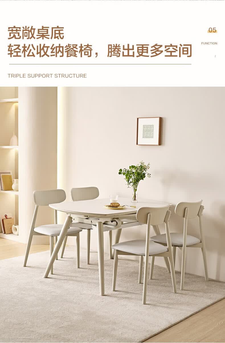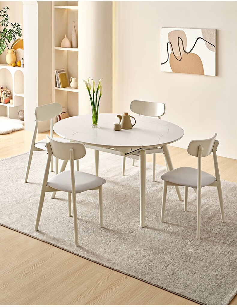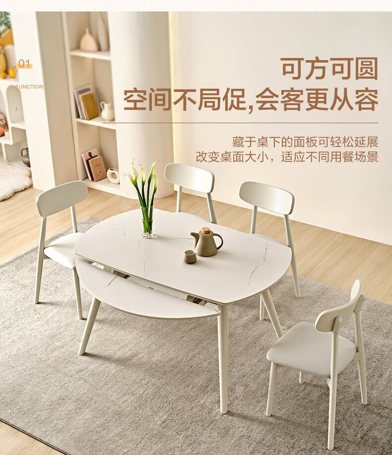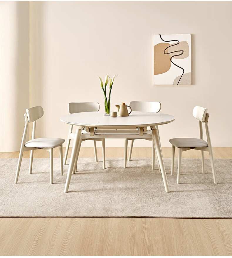 全友(QUANU)【迷瞪清仓货盘】岩板多功能餐桌椅组合客厅可伸缩折叠吃饭圆桌子 奶油|餐椅*2