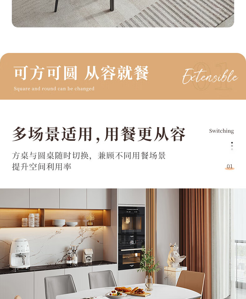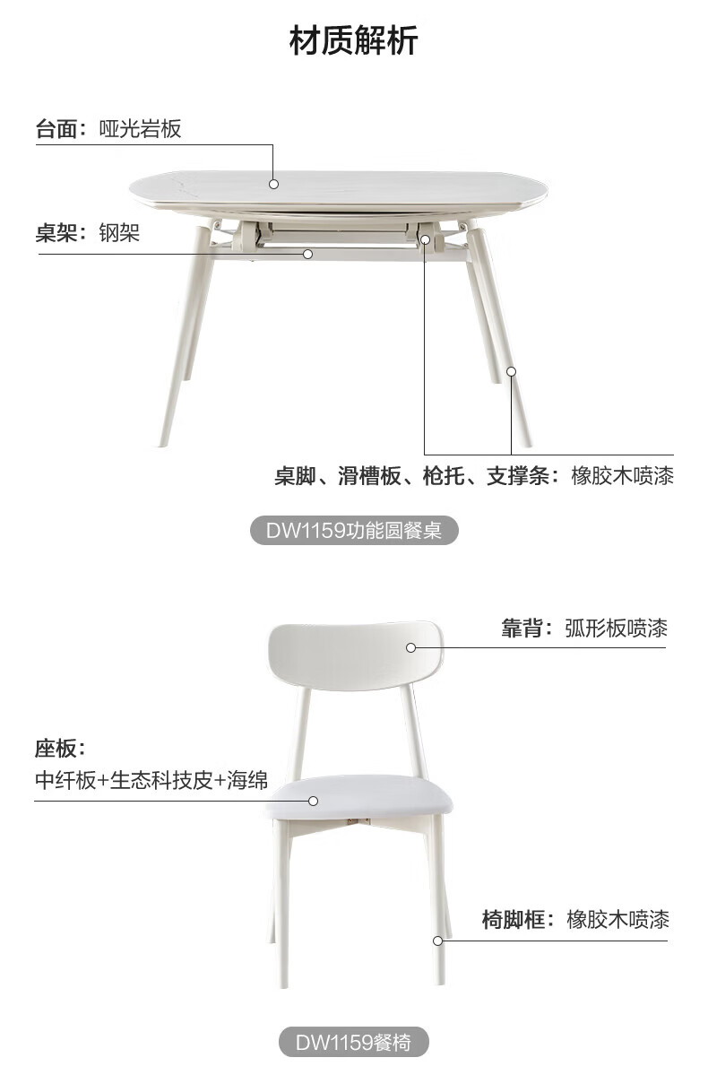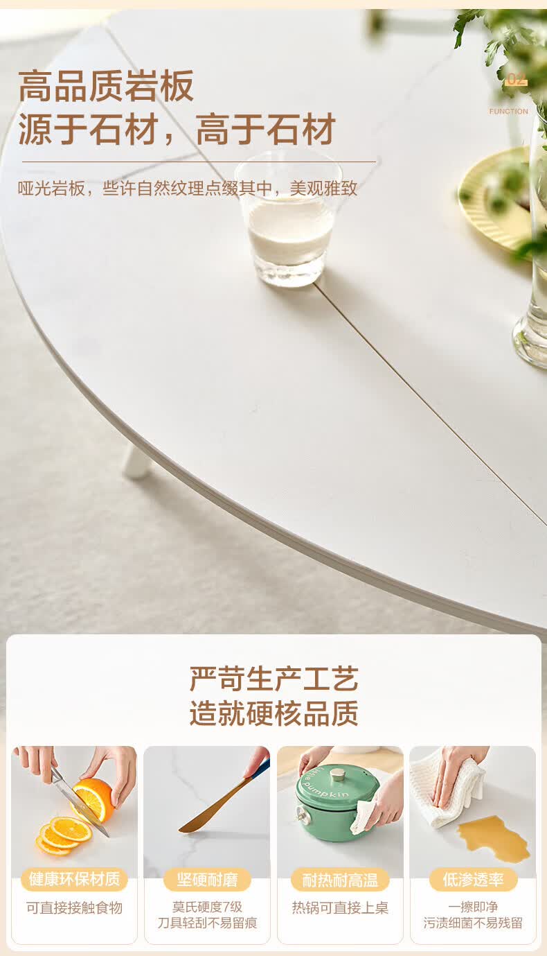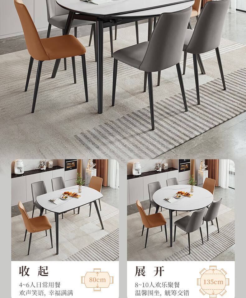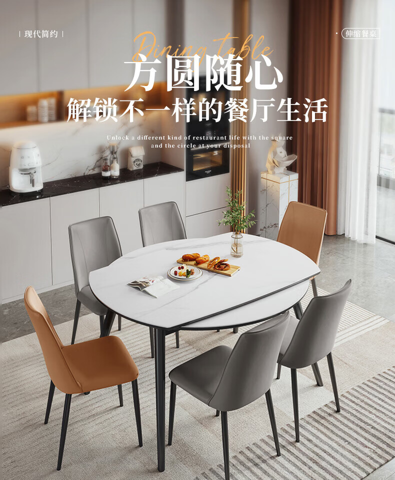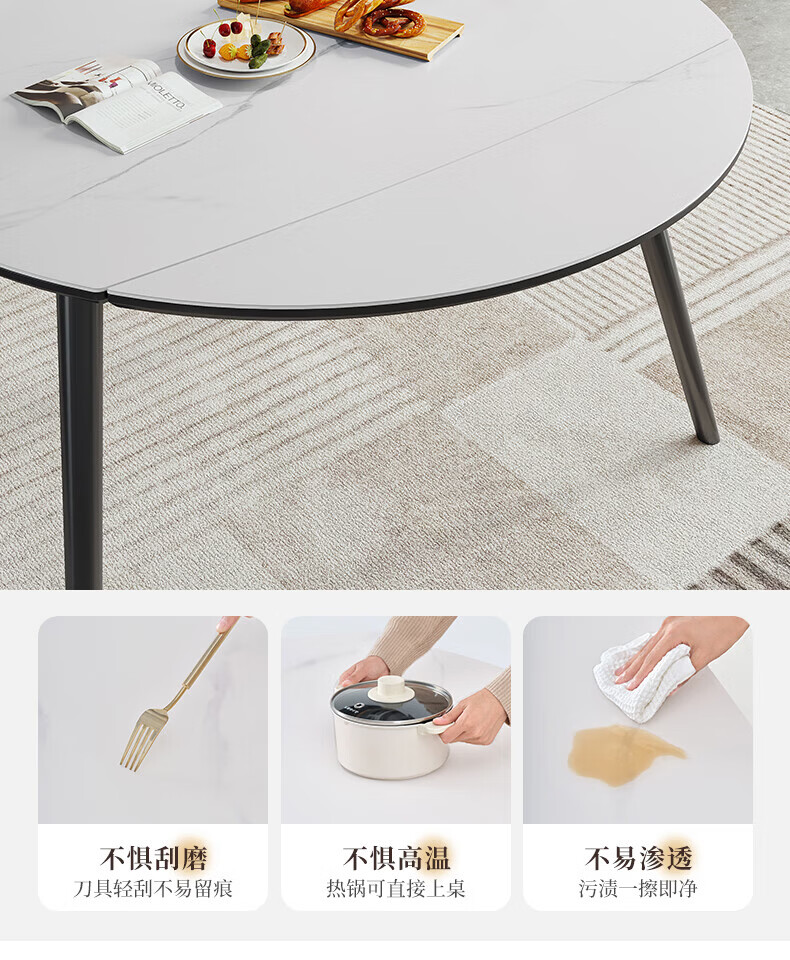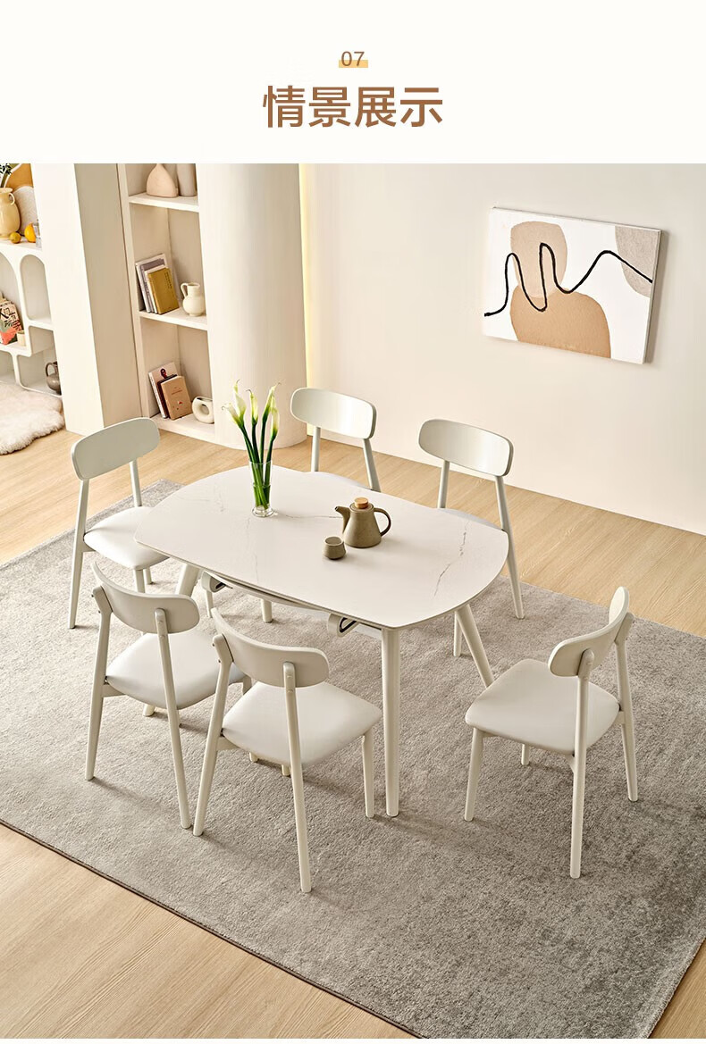 全友(QUANU)【迷瞪清仓货盘】岩板多功能餐桌椅组合客厅可伸缩折叠吃饭圆桌子 奶油|餐椅*2