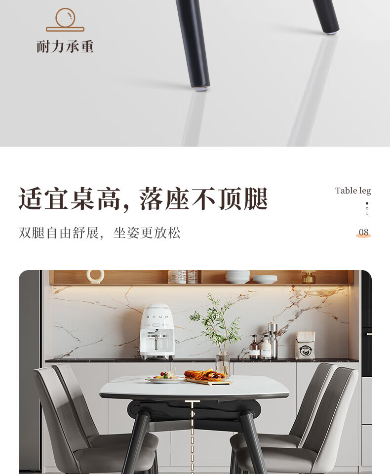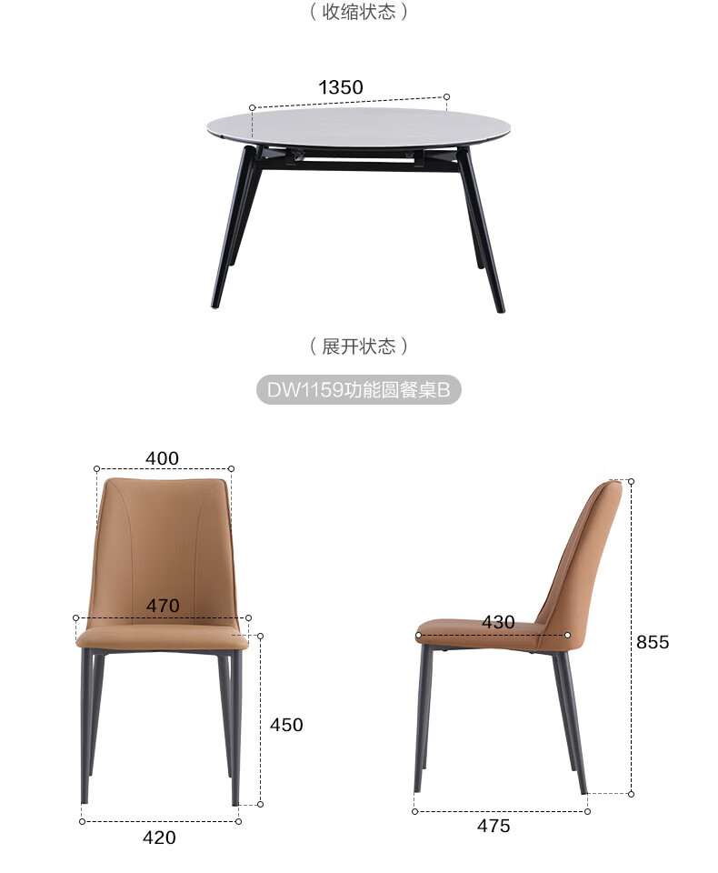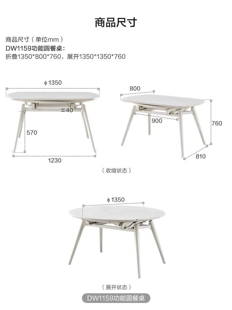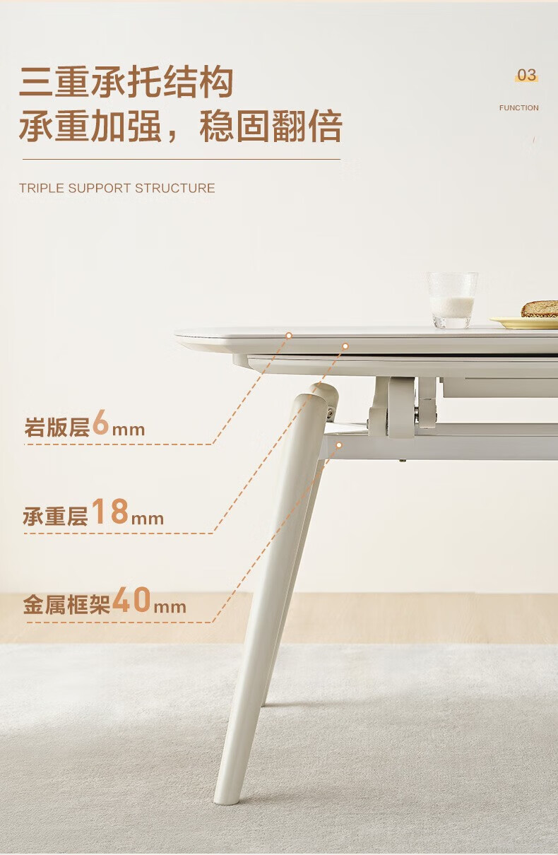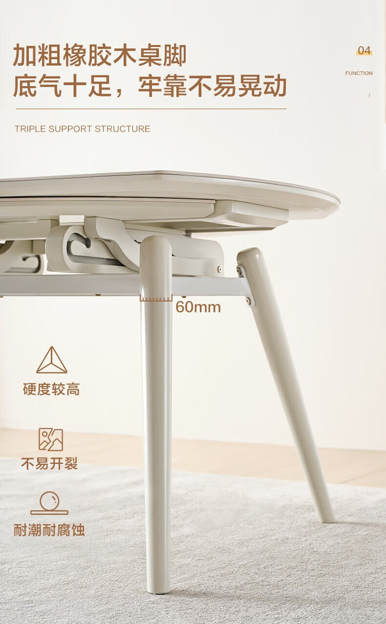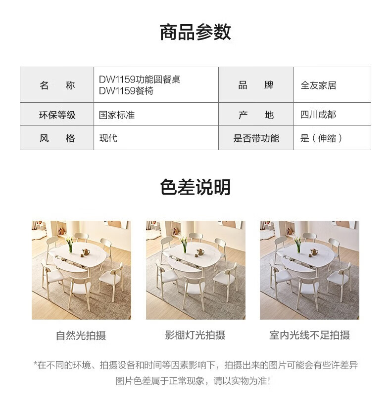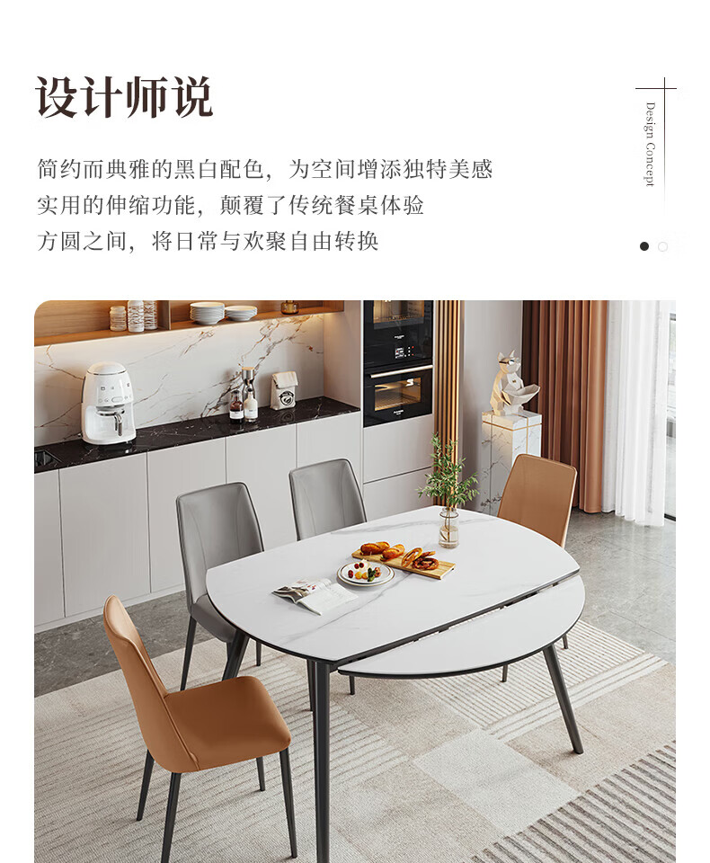 全友(QUANU)【迷瞪清仓货盘】岩板多功能餐桌椅组合客厅可伸缩折叠吃饭圆桌子 奶油|餐椅*2