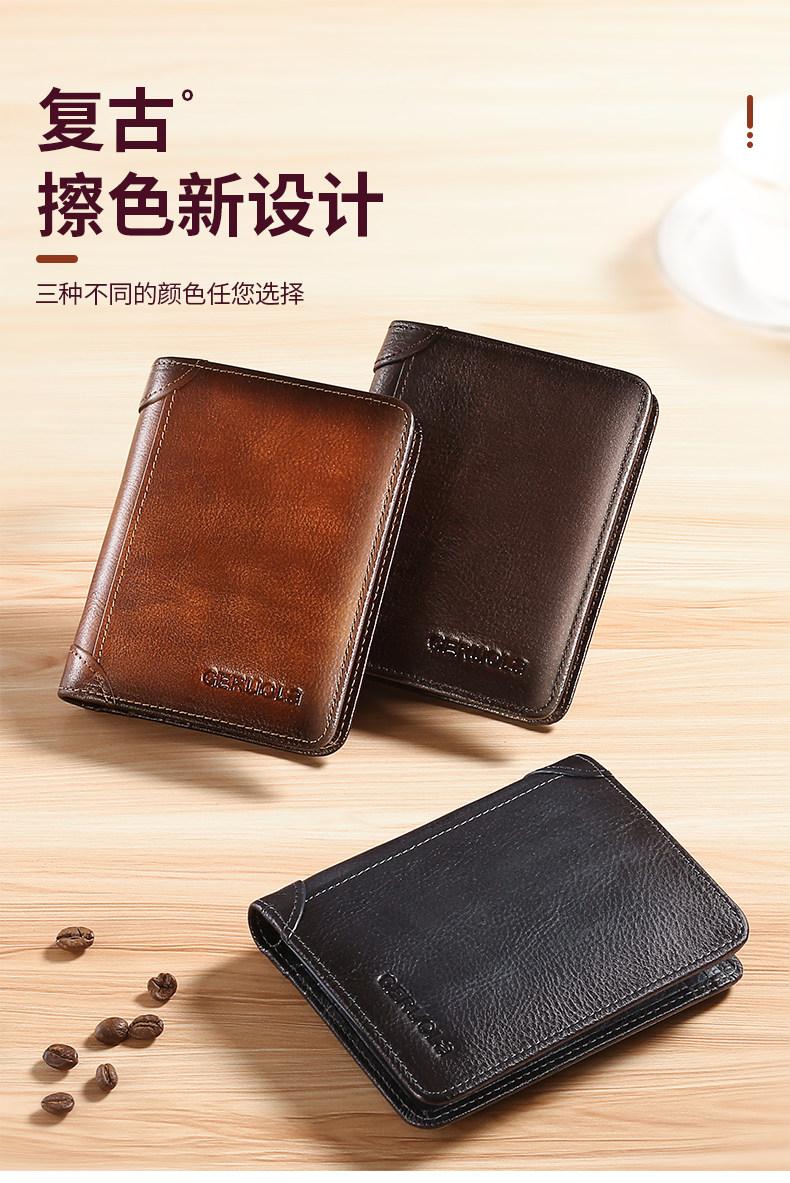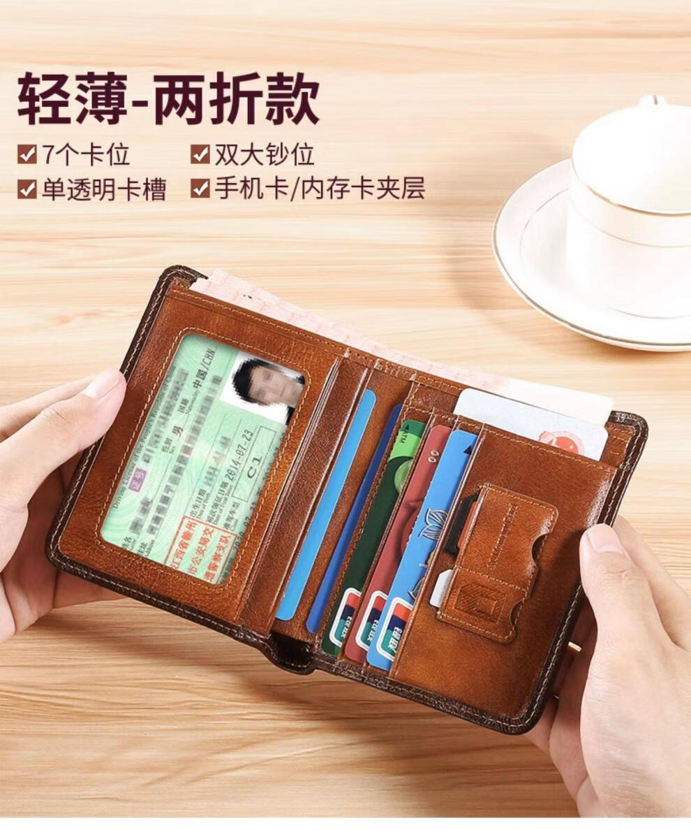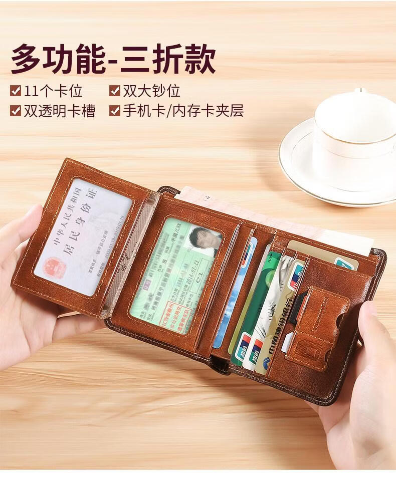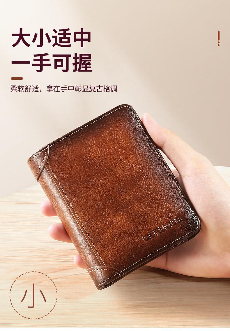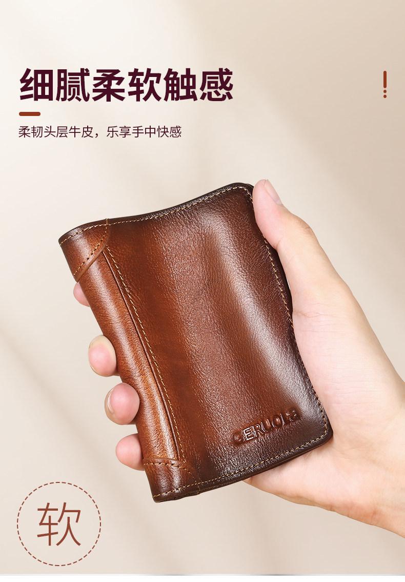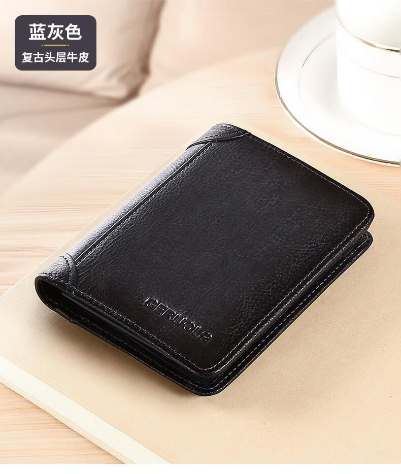 EKK日本进口品牌男士钱包真皮短款多功能驾驶证卡包一体钱皮夹名牌高 蓝灰色3折款-横款里外全头层牛皮(防盗刷