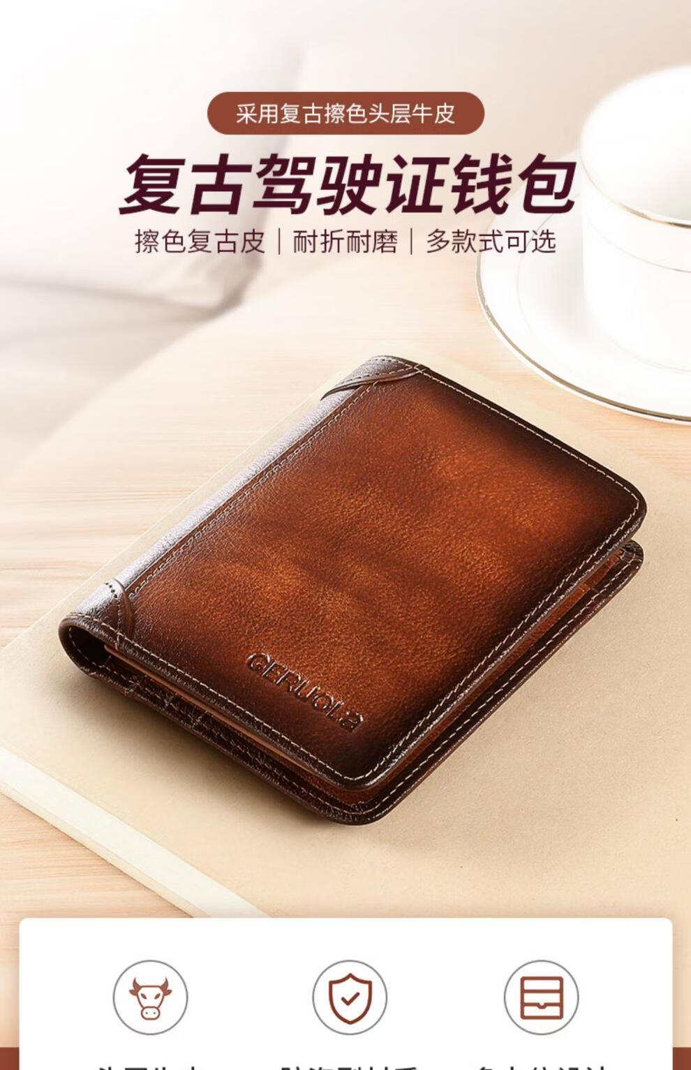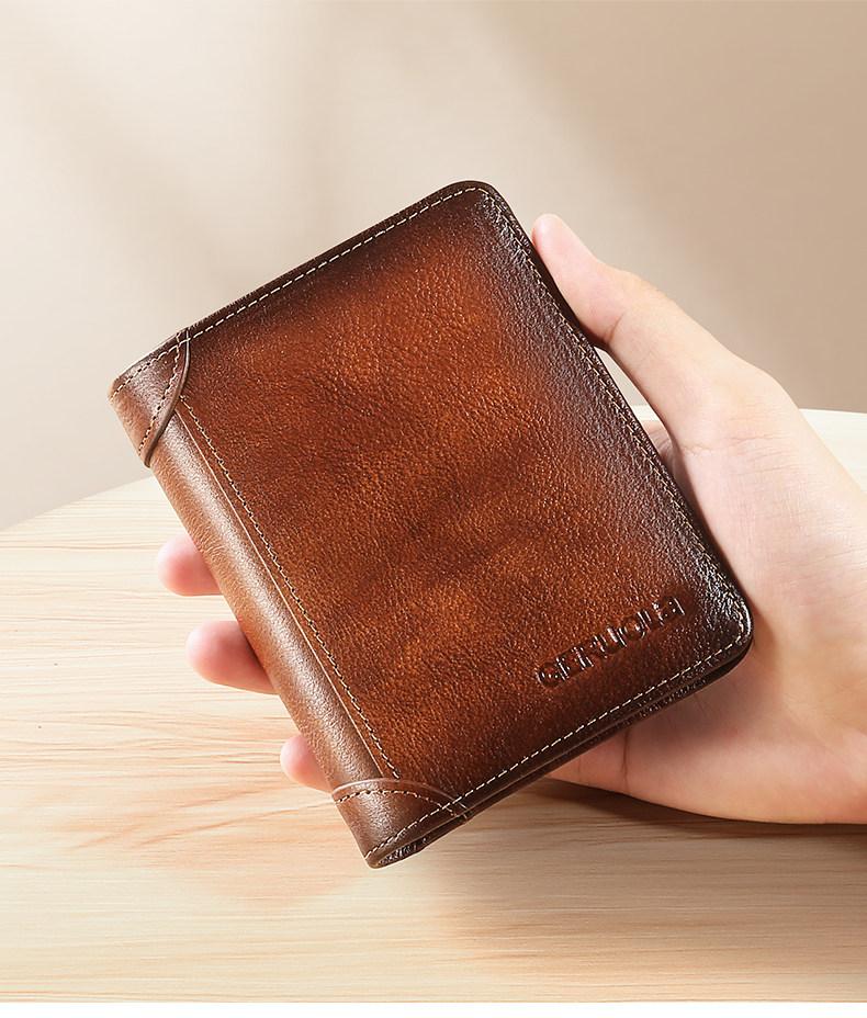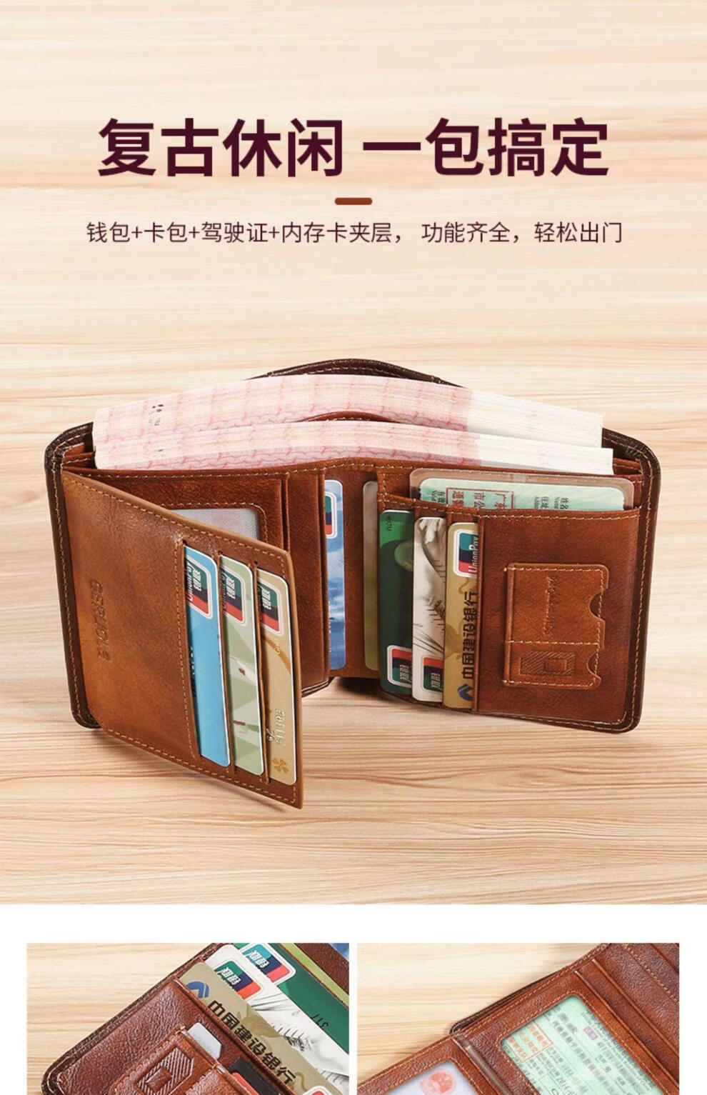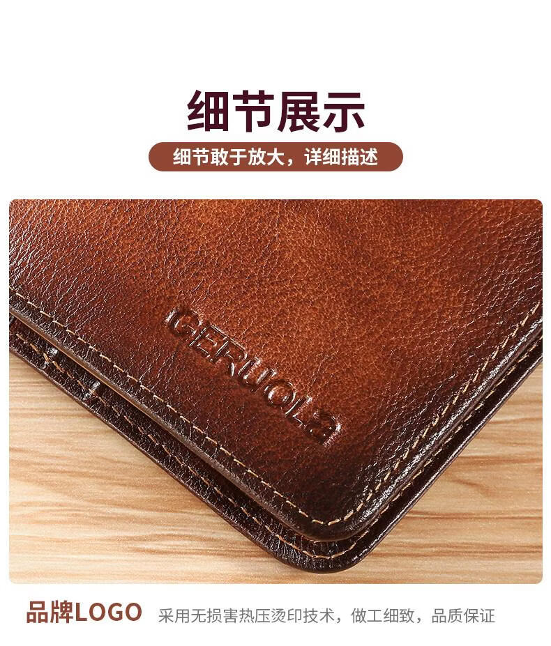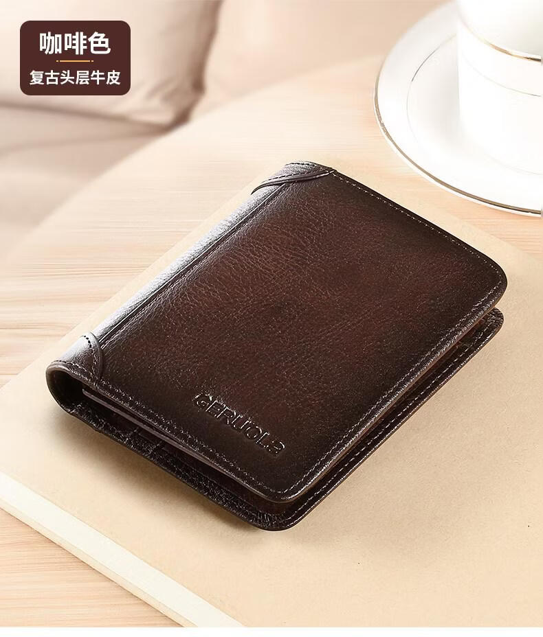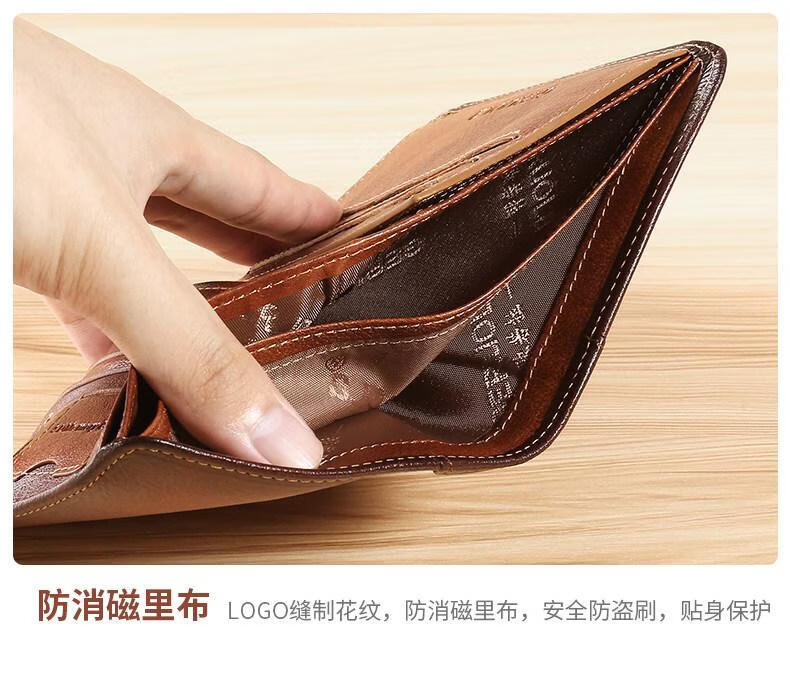 EKK日本进口品牌男士钱包真皮短款多功能驾驶证卡包一体钱皮夹名牌高 蓝灰色3折款-横款里外全头层牛皮(防盗刷