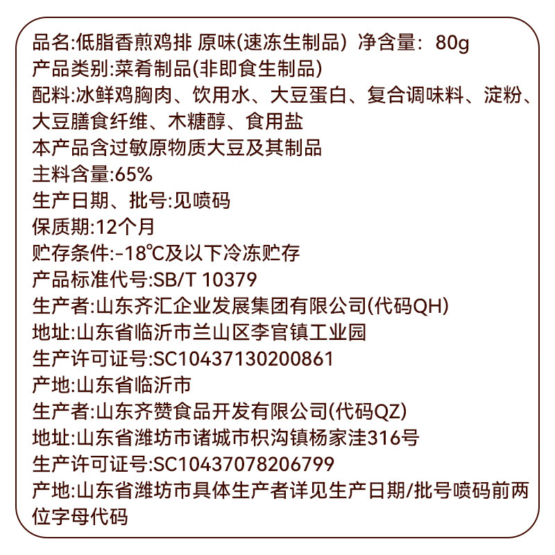齐赞 原味鸡排鸡胸肉轻食鸡肉非油炸健身代餐量贩装早餐 【原味】80g*10袋