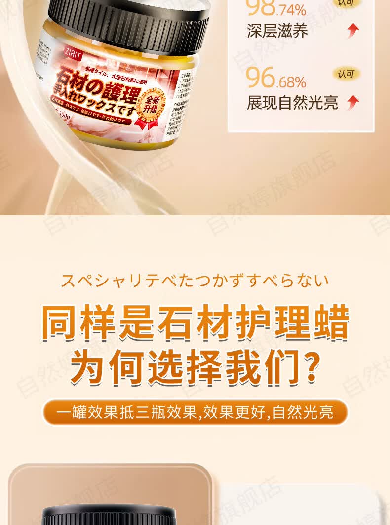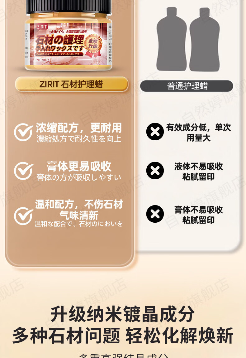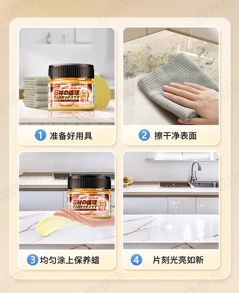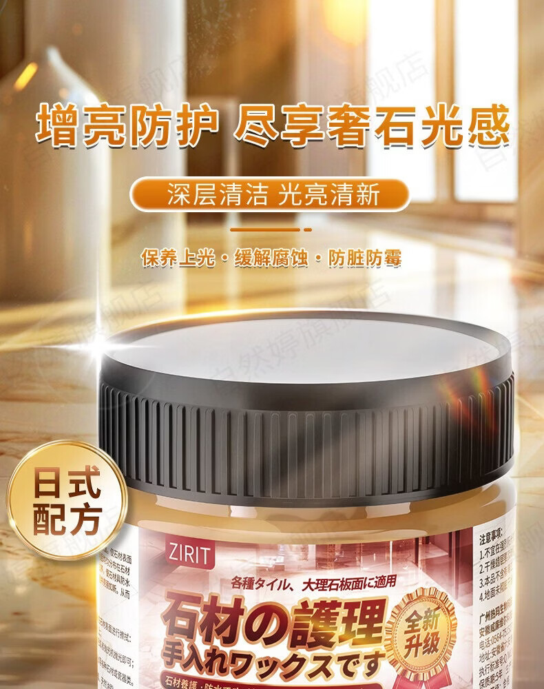 ZIRIT石材护理蜡大理石抛光蜡瓷砖增亮保养石英石台面护理打蜡家用 2瓶【使用简单 一擦即亮】