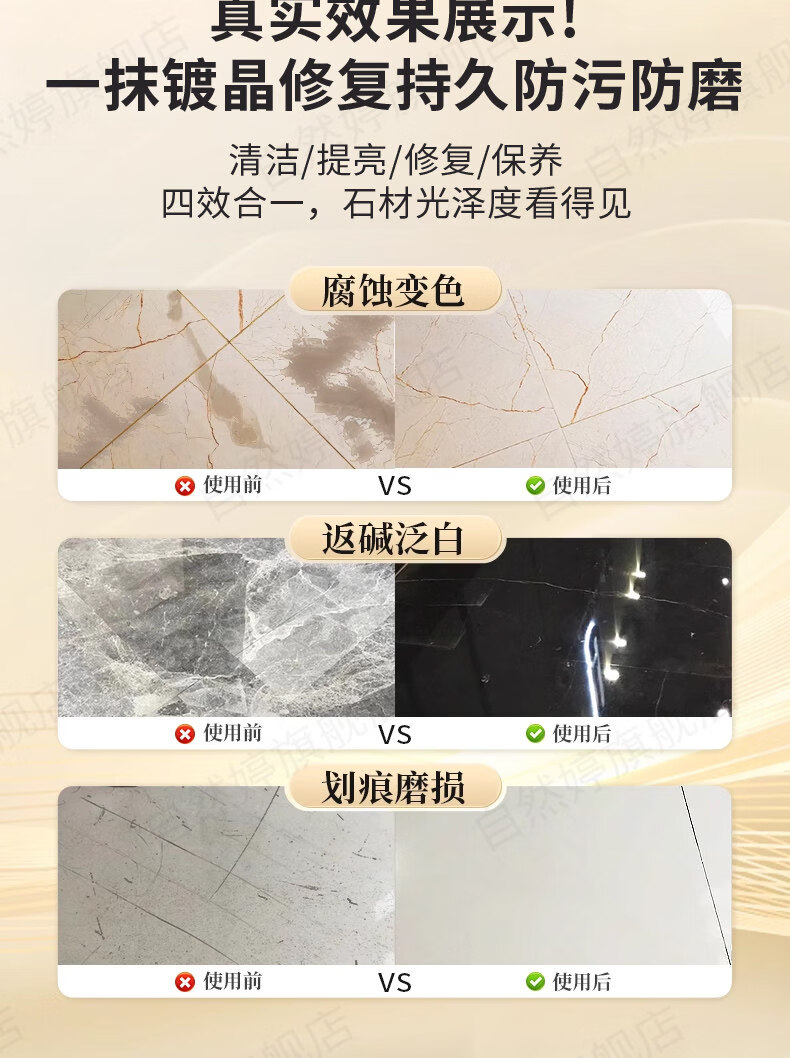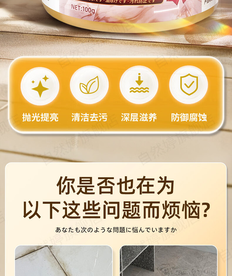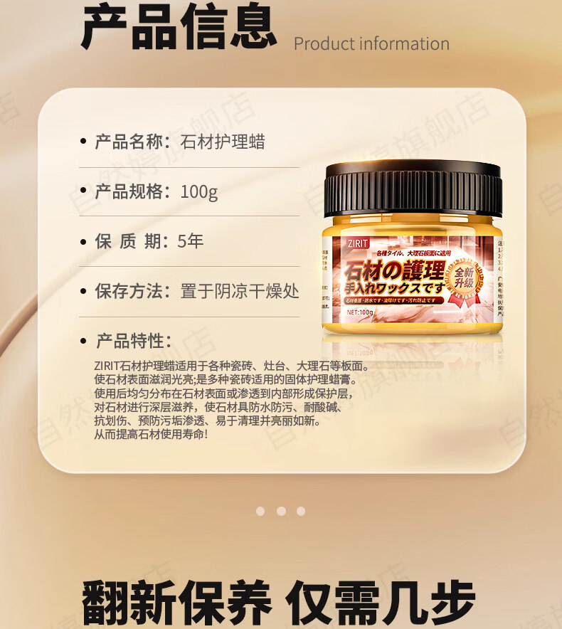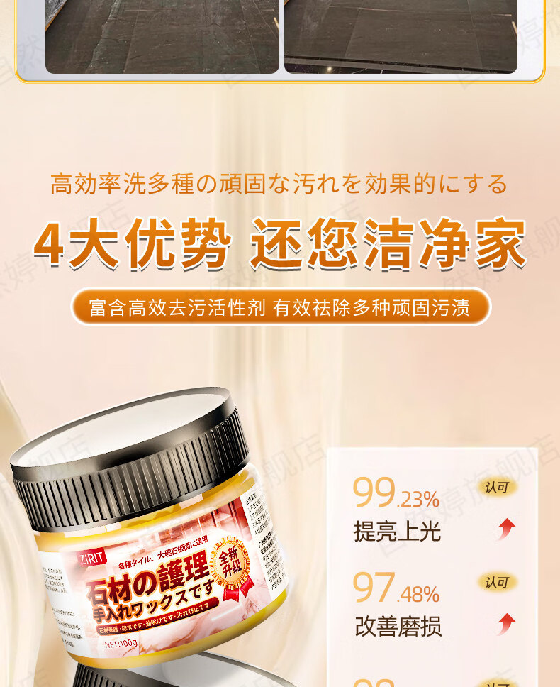 ZIRIT石材护理蜡大理石抛光蜡瓷砖增亮保养石英石台面护理打蜡家用 2瓶【使用简单 一擦即亮】