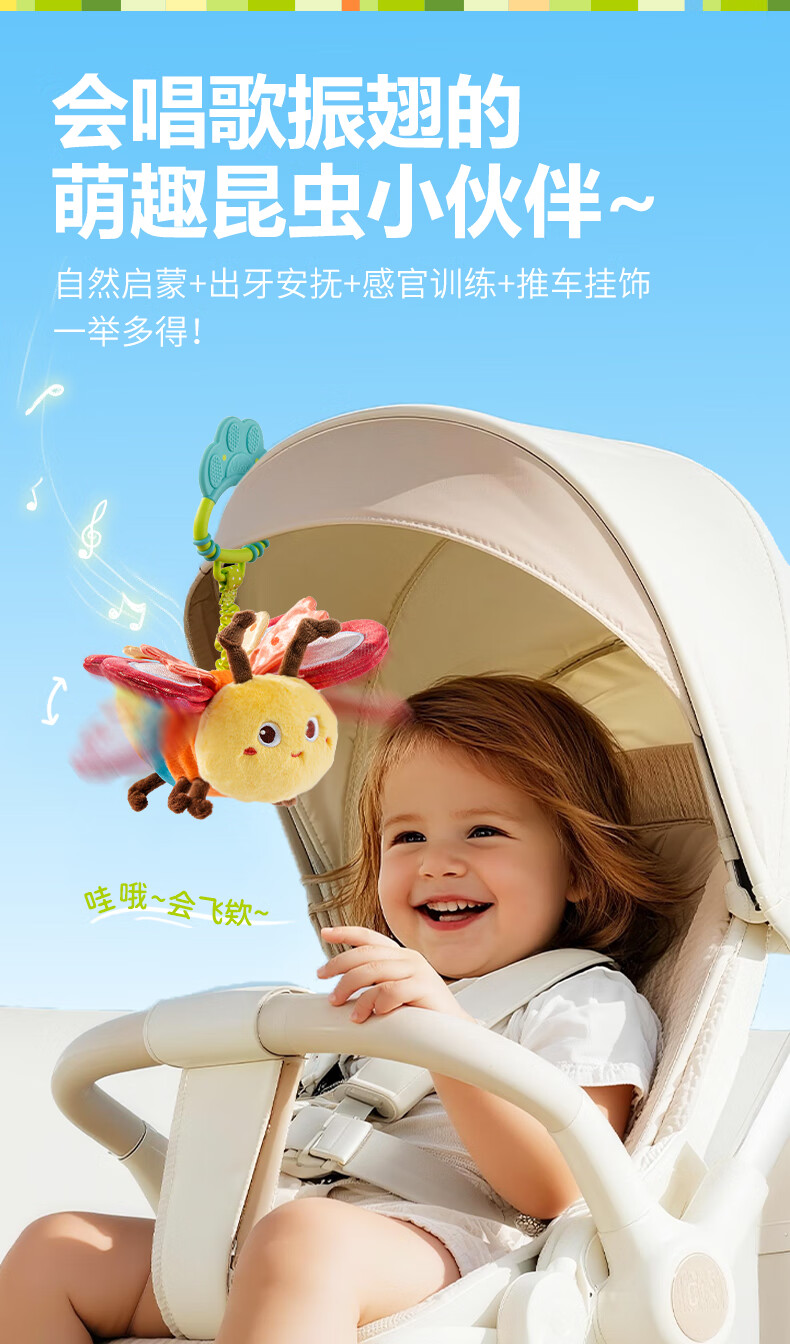 jollybaby昆虫飞飞毛绒宝宝安抚玩偶婴儿推车挂件车载玩具0-1岁礼物-蜻蜓