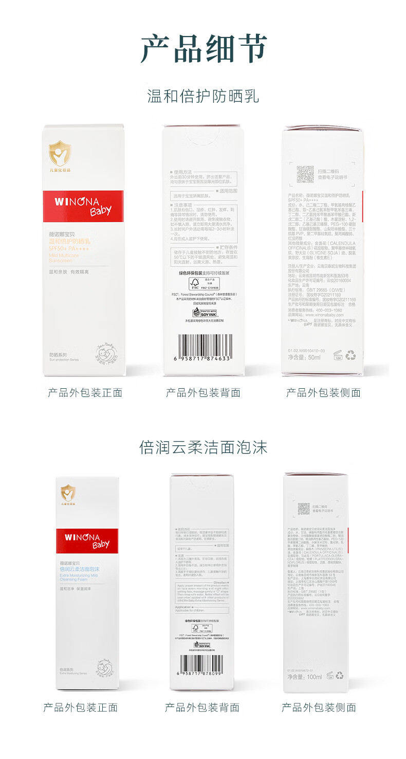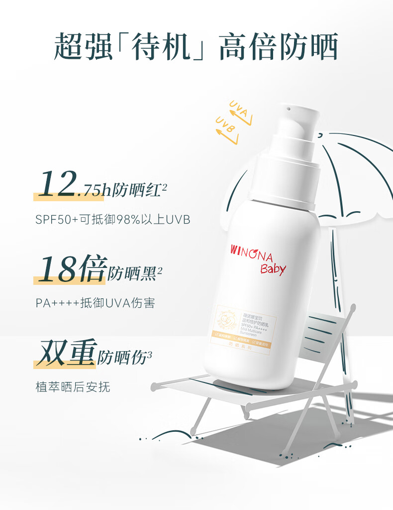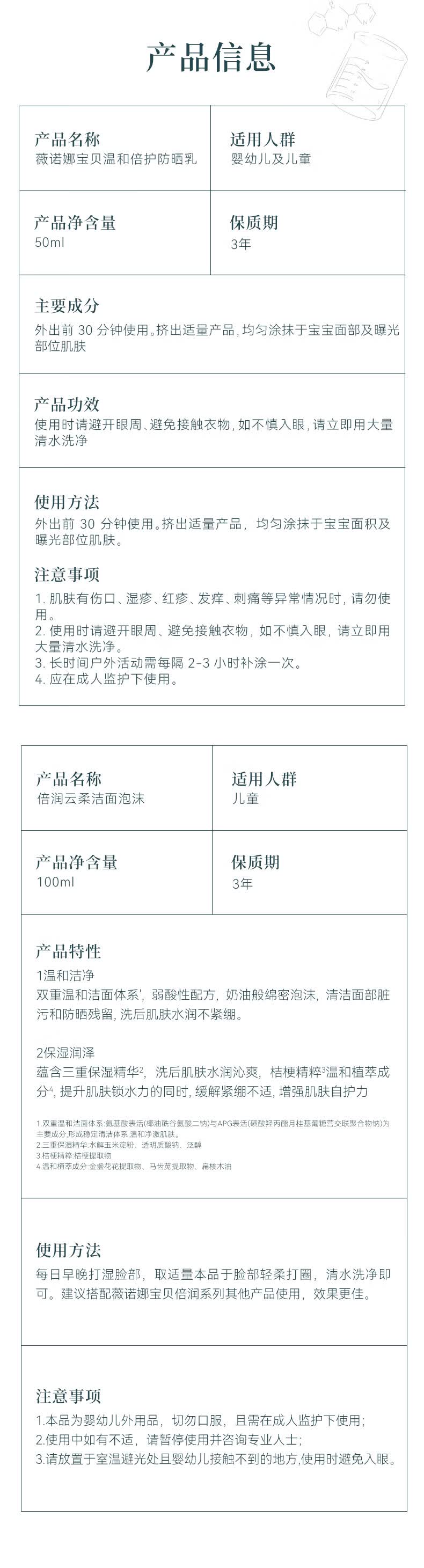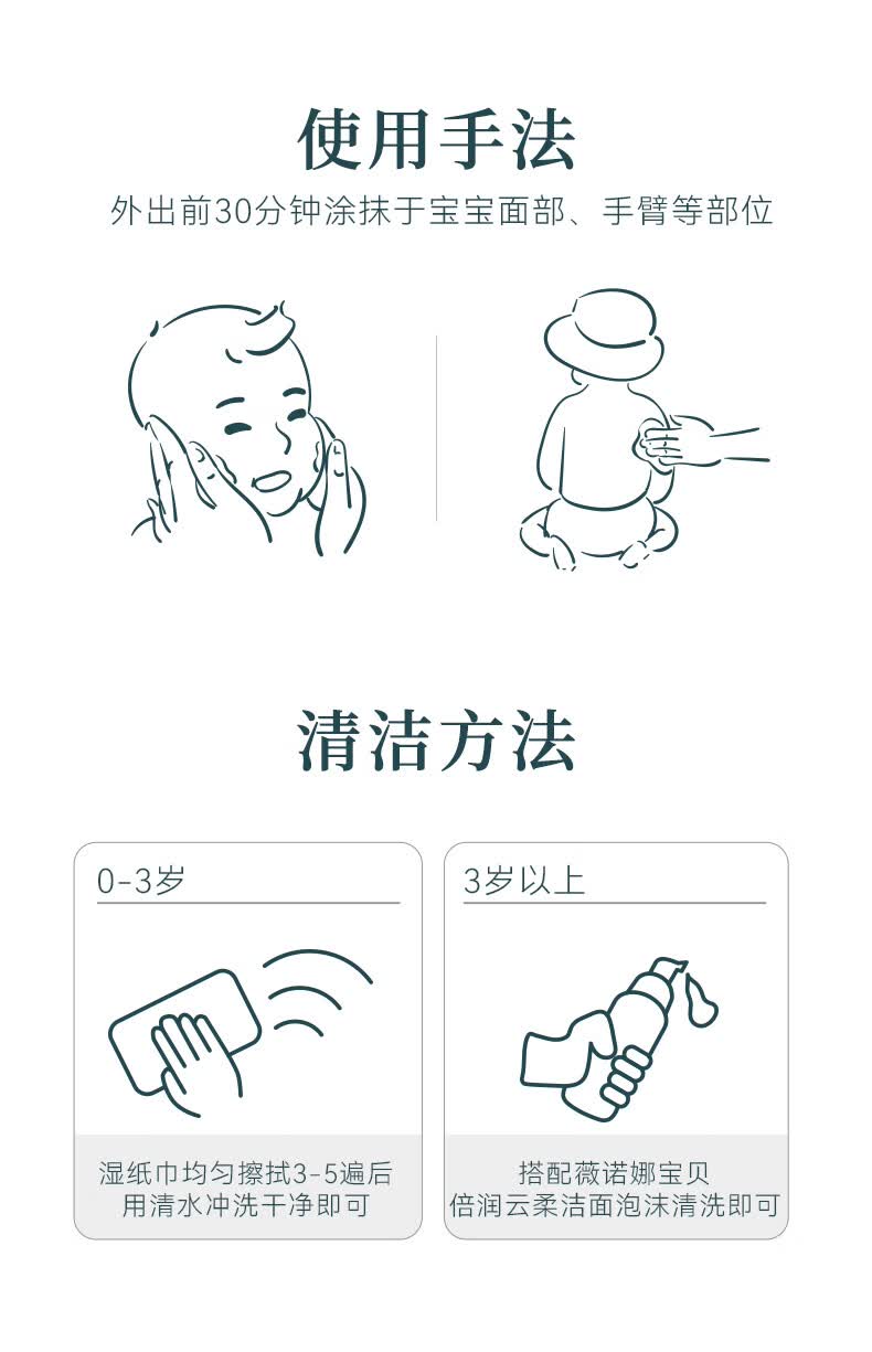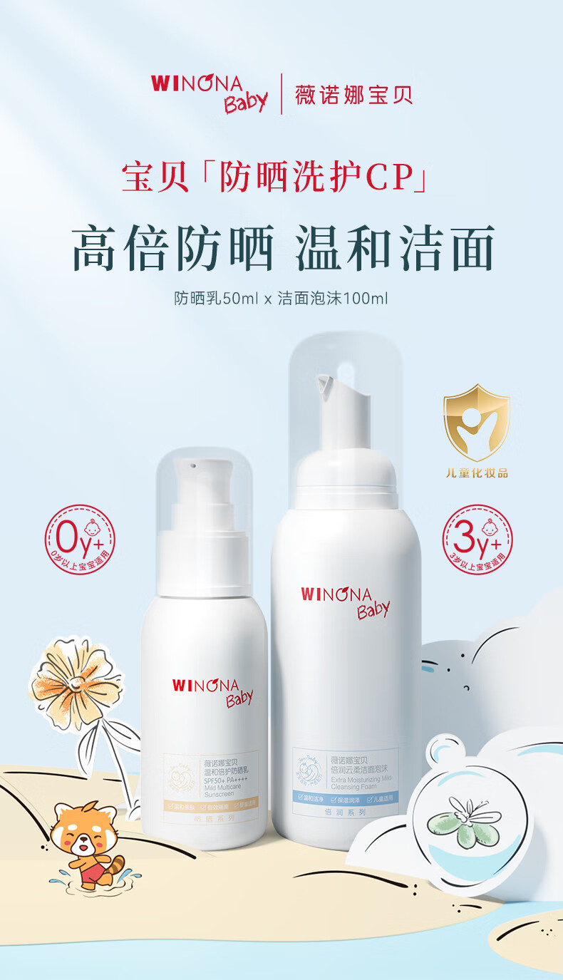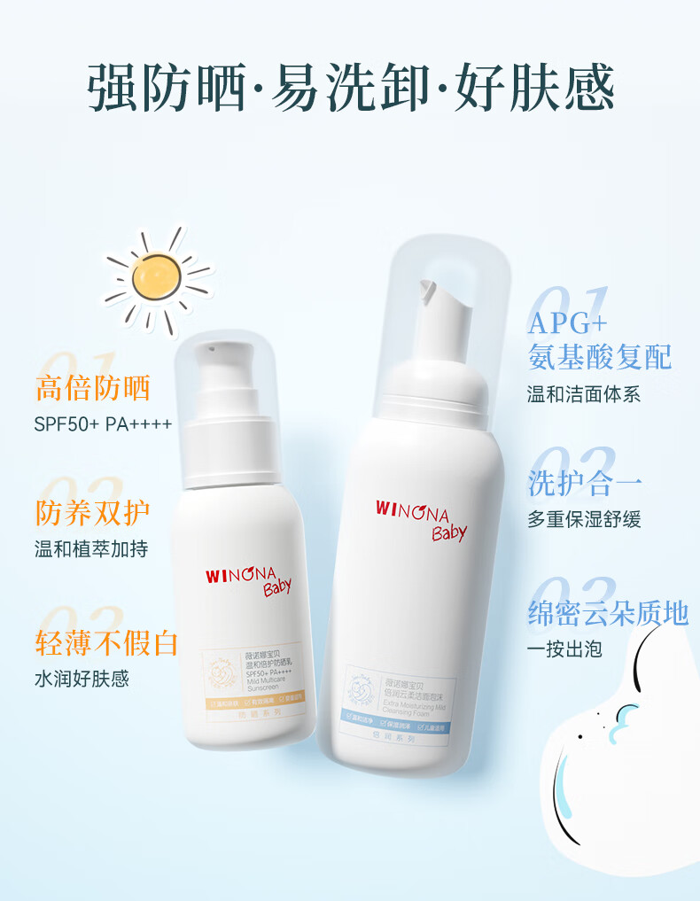 薇诺娜宝贝洁面防晒乳套组(洁面100ml+防晒乳50ml) 儿童防晒出行防护组合