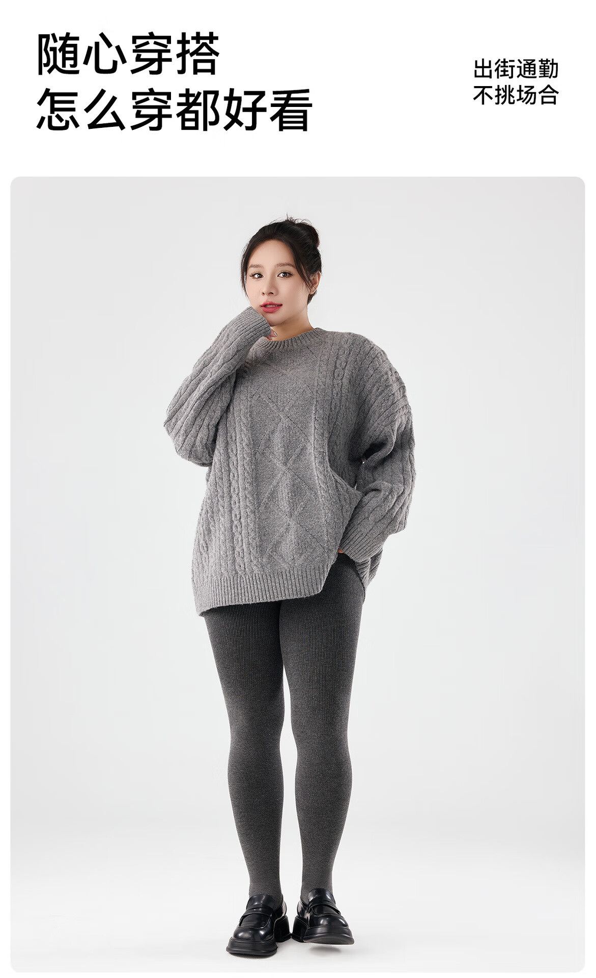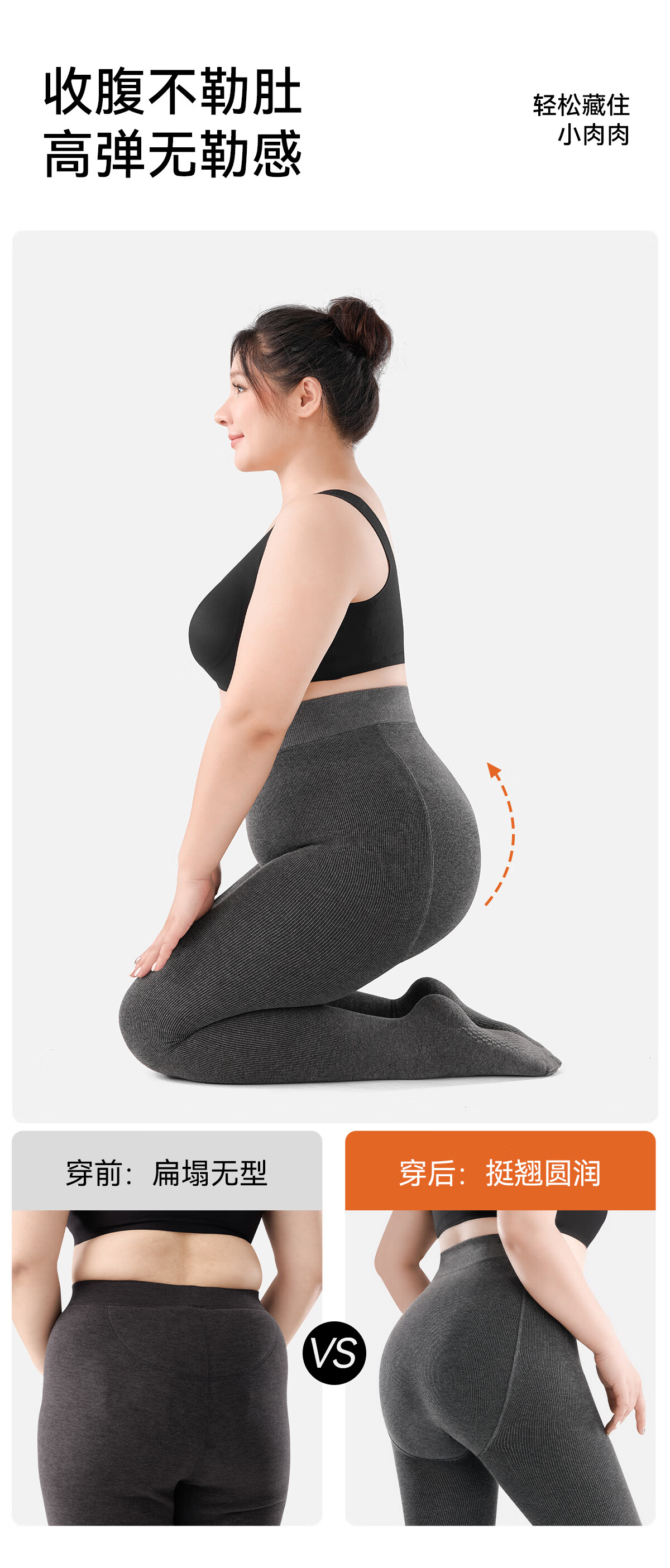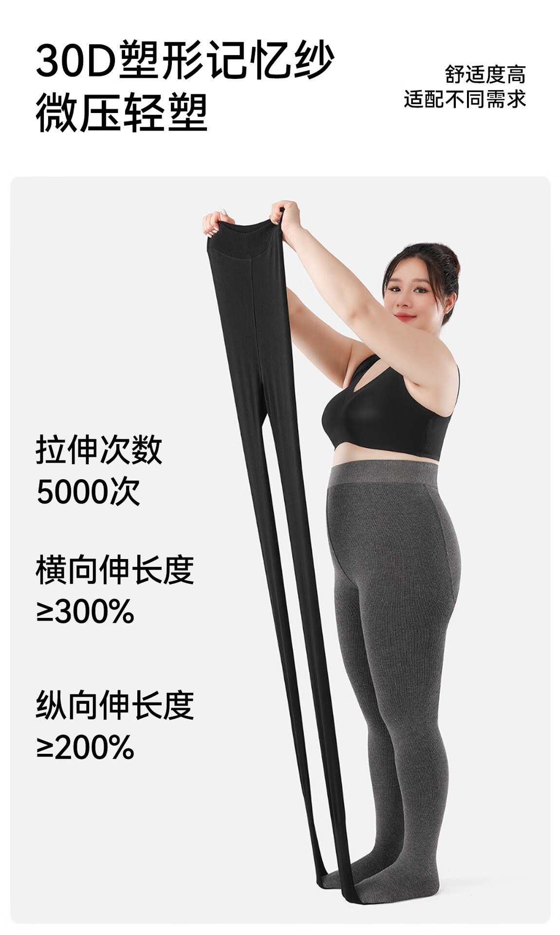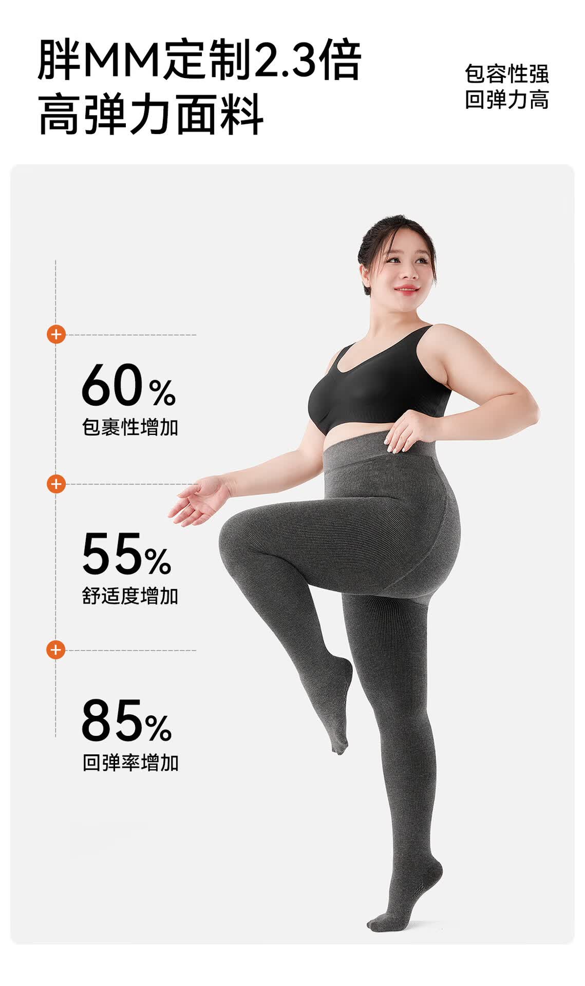 宝娜斯大码竖条纹棉质打底裤女外穿春秋冬加肥加大胖mm格雷系螺纹连裤袜 中灰色(加绒加厚款)【踩脚款】 1条 L (适合80-140斤)
