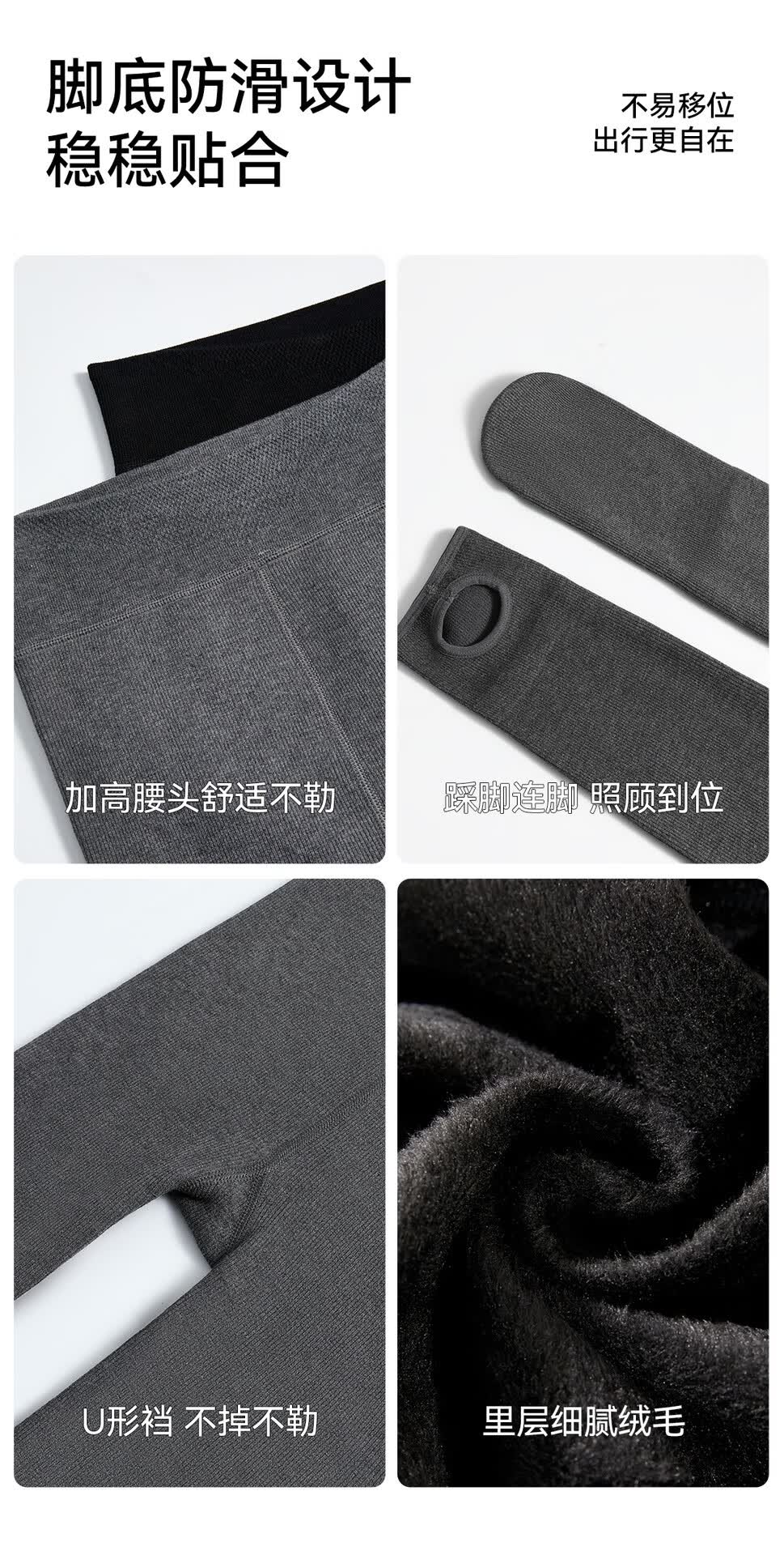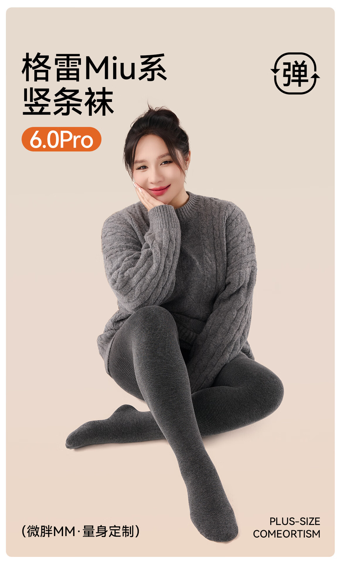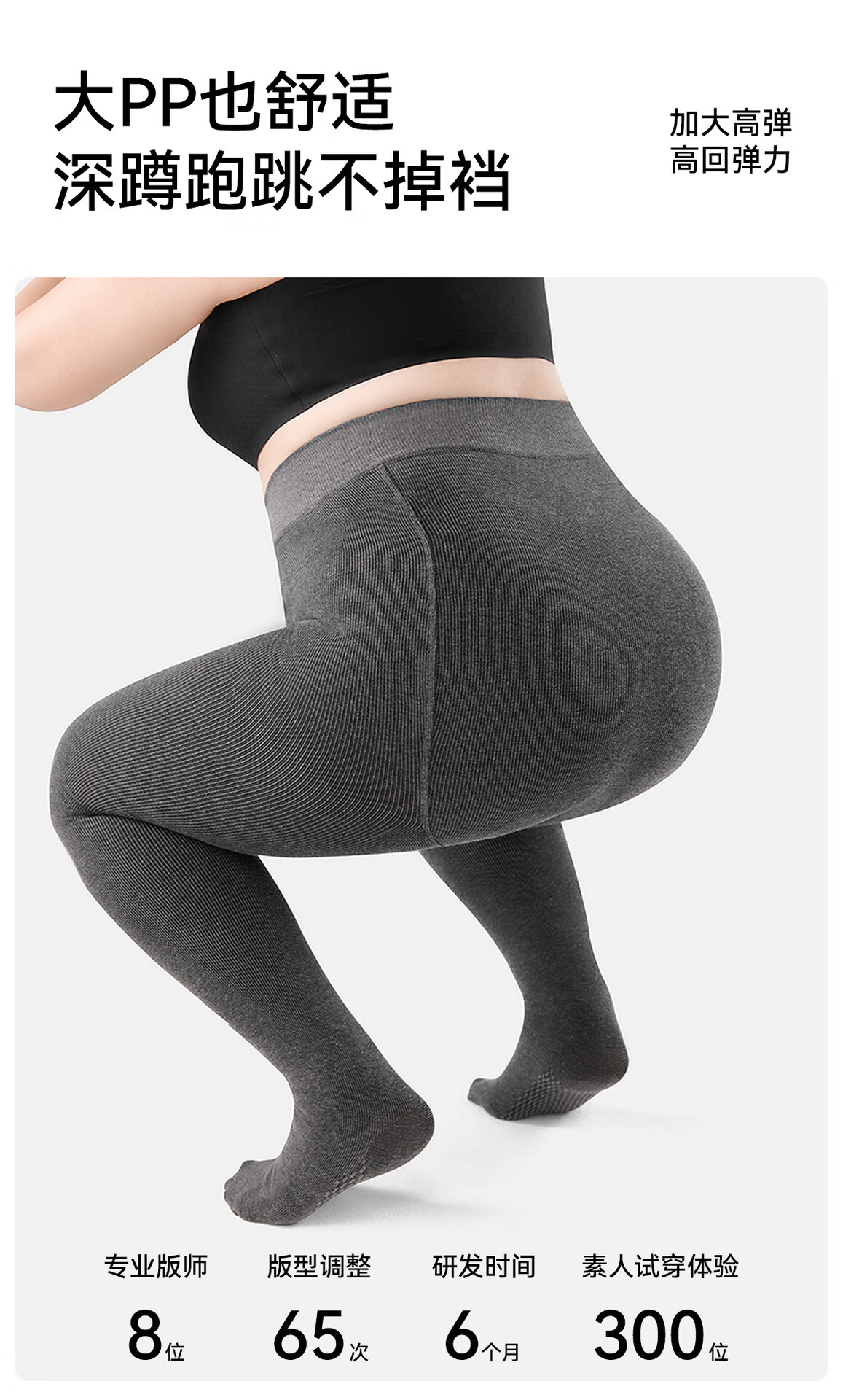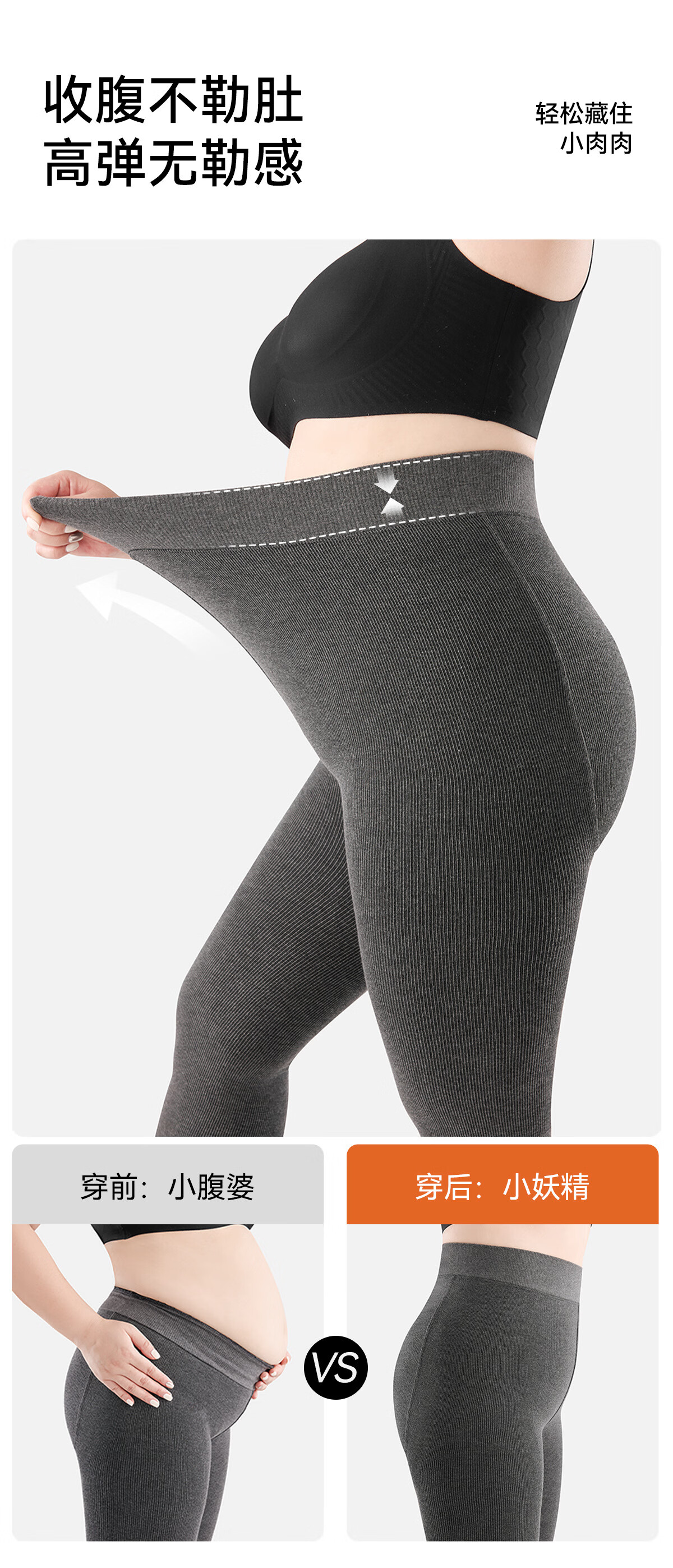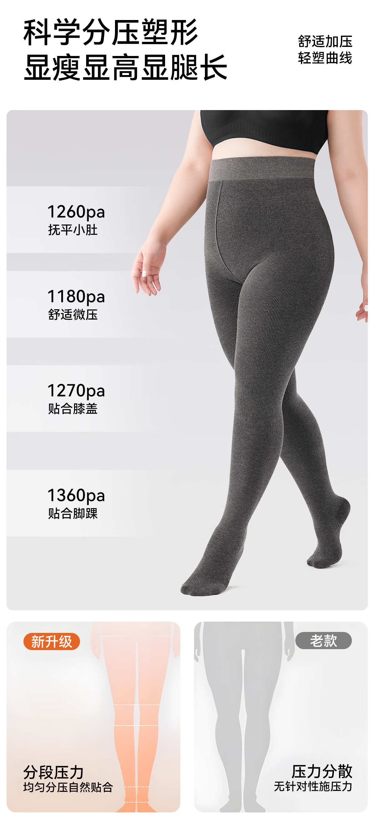 宝娜斯大码竖条纹棉质打底裤女外穿春秋冬加肥加大胖mm格雷系螺纹连裤袜 中灰色(加绒加厚款)【踩脚款】 1条 L (适合80-140斤)