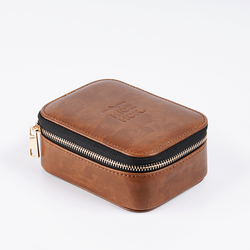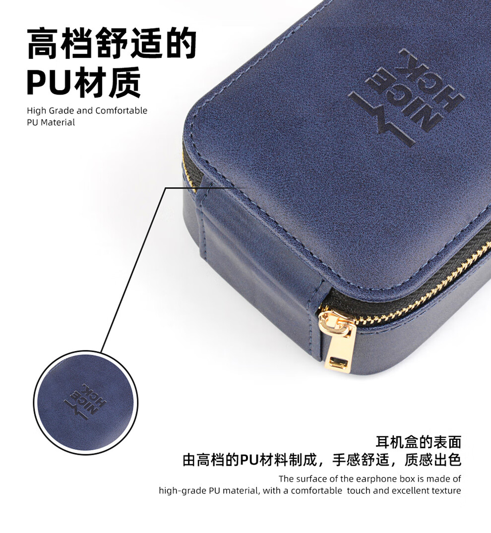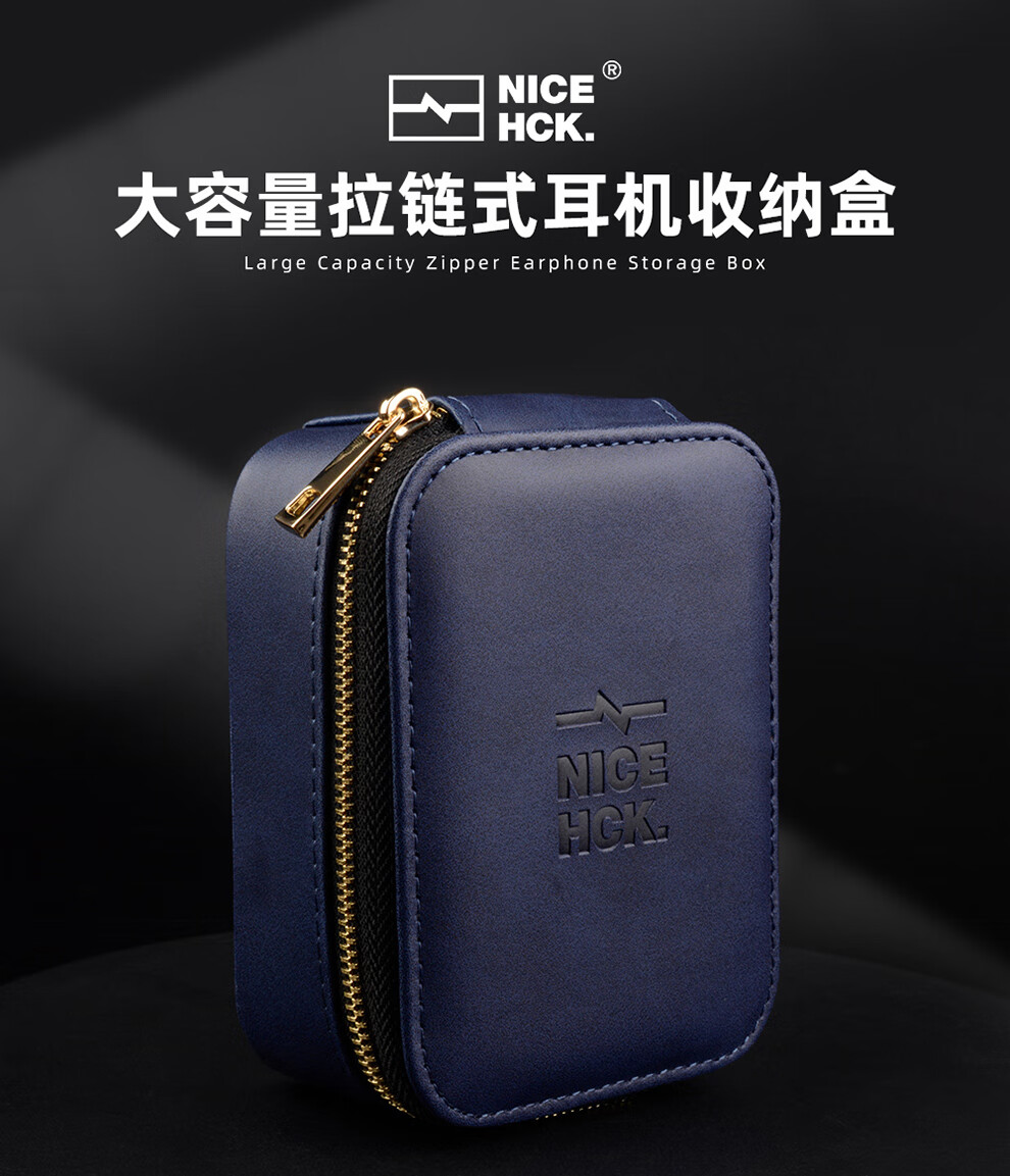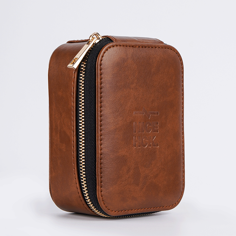 NICEHCK 大尺寸高档拉链耳机包PU盒便携多功能用途防压抗震保护收纳数据线数码U优盘HiFi线材 大容量PU拉链耳机盒-棕色款