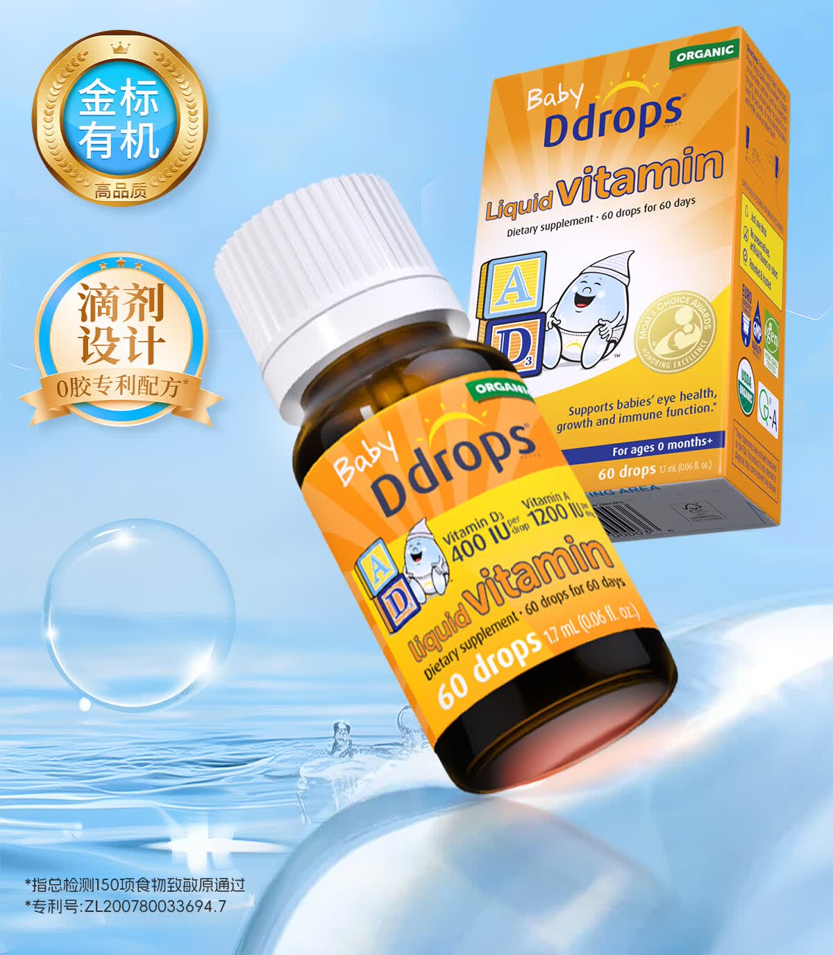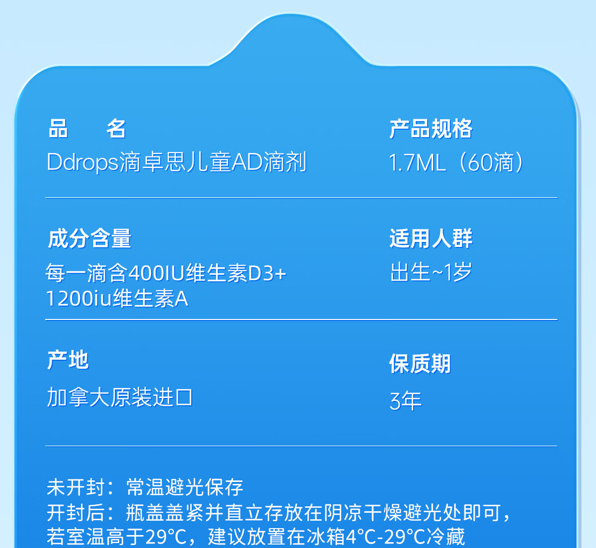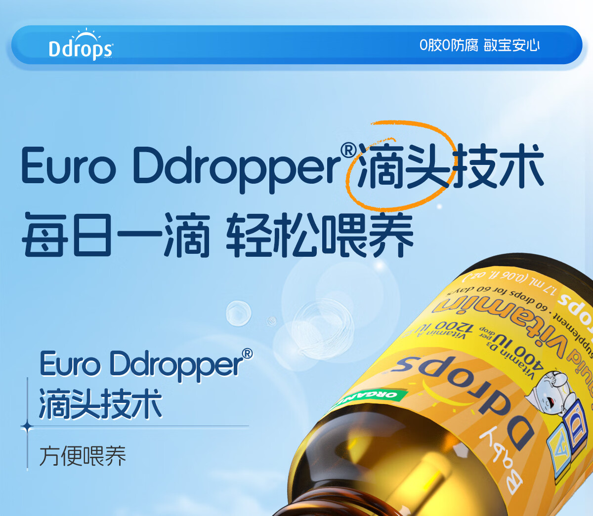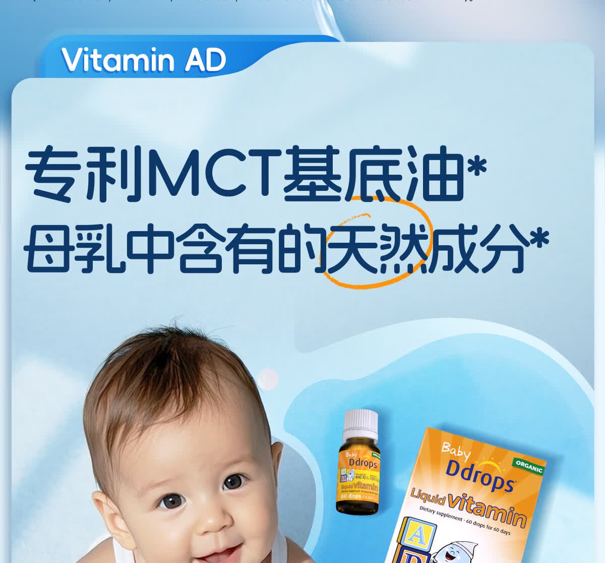 Ddrops滴卓思婴儿维生素ad滴剂 0-1岁 敏宝适用 【出生-1岁】婴儿AD+婴儿D3 1瓶*1瓶