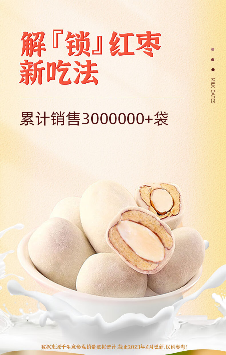 枣粮先生奶枣巴旦木夹心奶酪枣蜜饯果干新疆红枣坚果网红休闲零食独立包装 巴旦木奶枣125g*2+无核芝麻枣80g*1