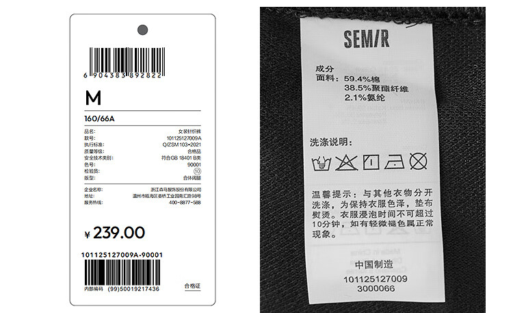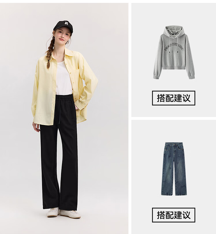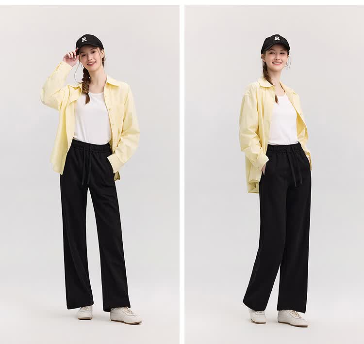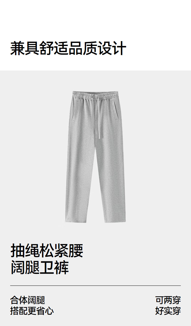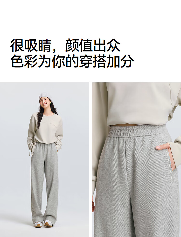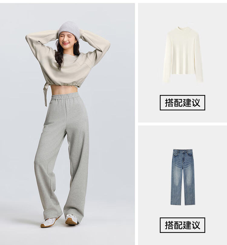 森马(Semir)休闲裤女春季松紧腰抽绳阔腿裤女生显瘦ins慵懒卫裤101125127009A