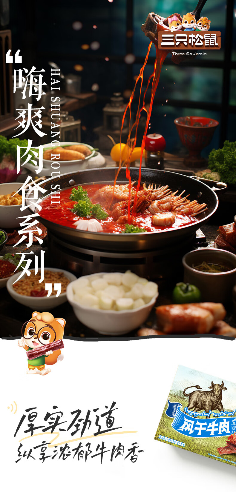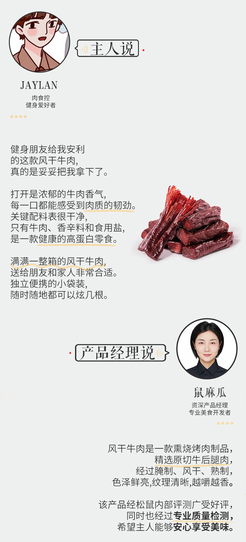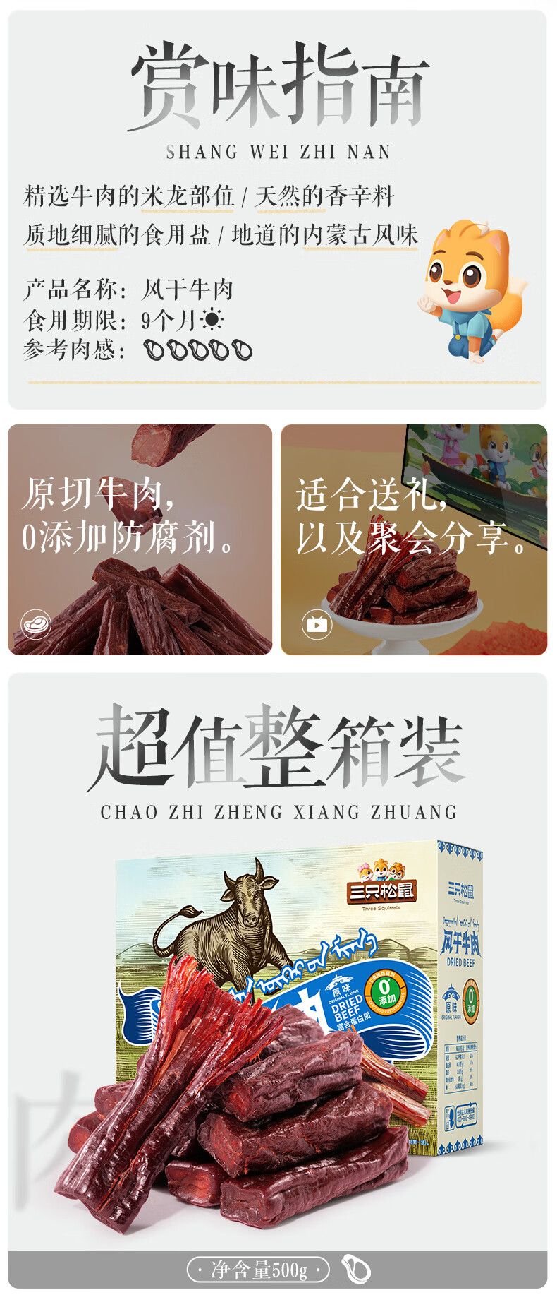 三只松鼠0添加风干牛肉500g箱装原味清真蒙古手撕牛肉干肉脯零食
