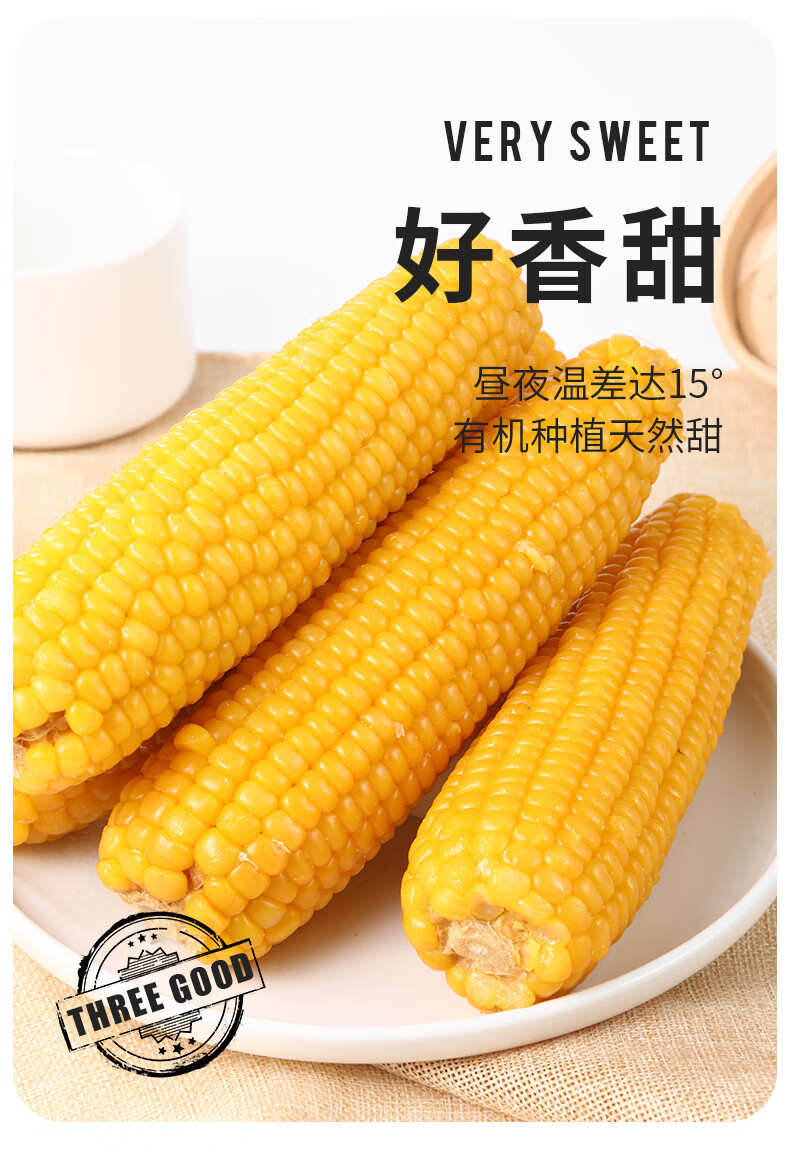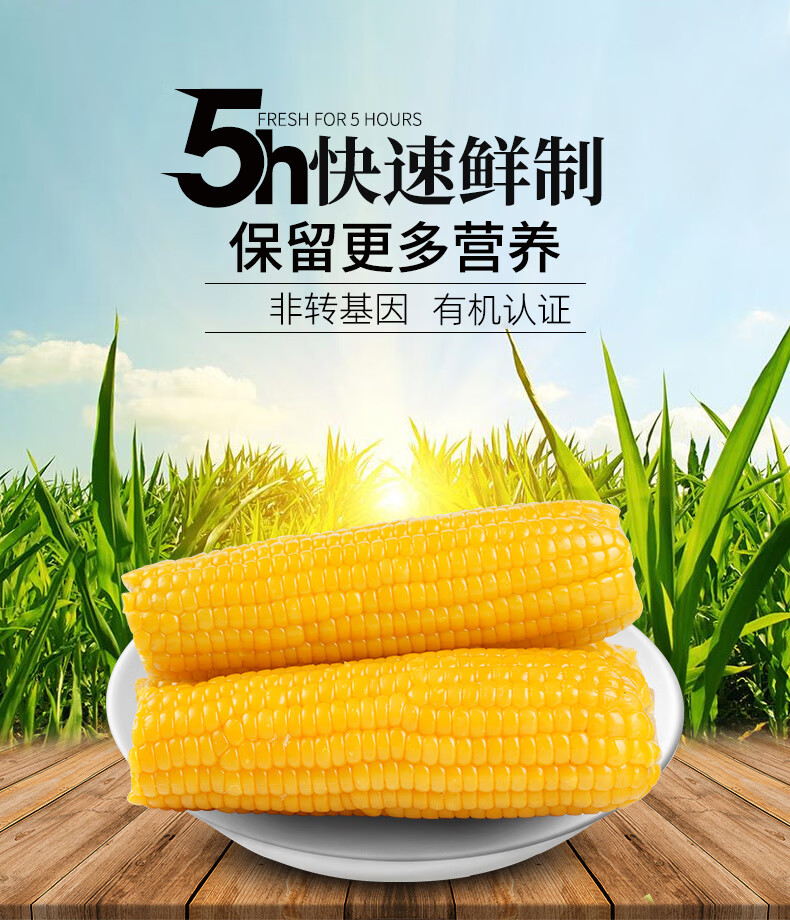 金沃瑞丰有机 黄糯玉米棒220g*5根 新鲜甜粘 非转基因 粗粮早餐代餐