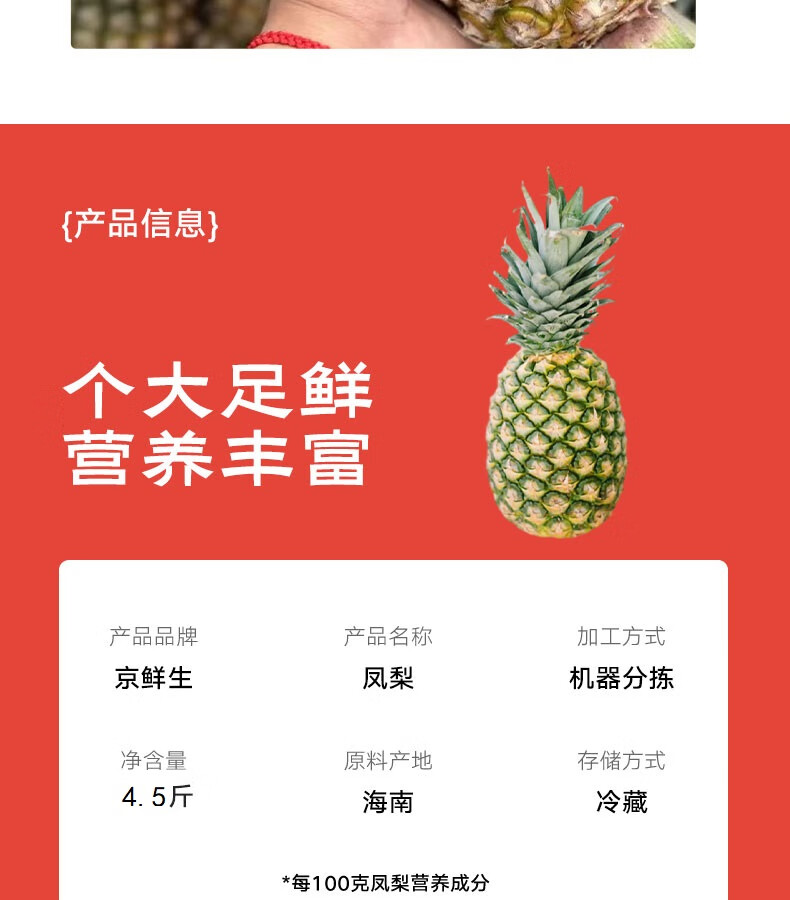 京鲜生 海南金钻凤梨 净重4.5斤单果650g起树上熟新鲜水果源头直发包邮