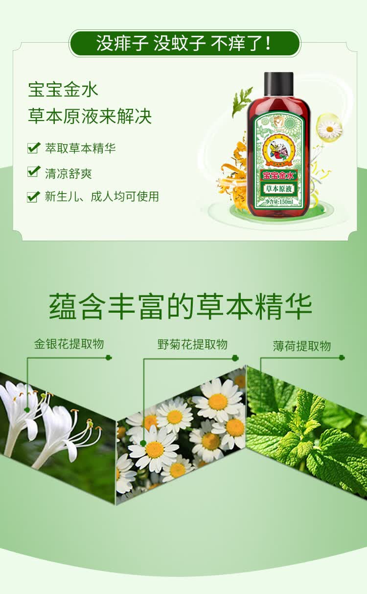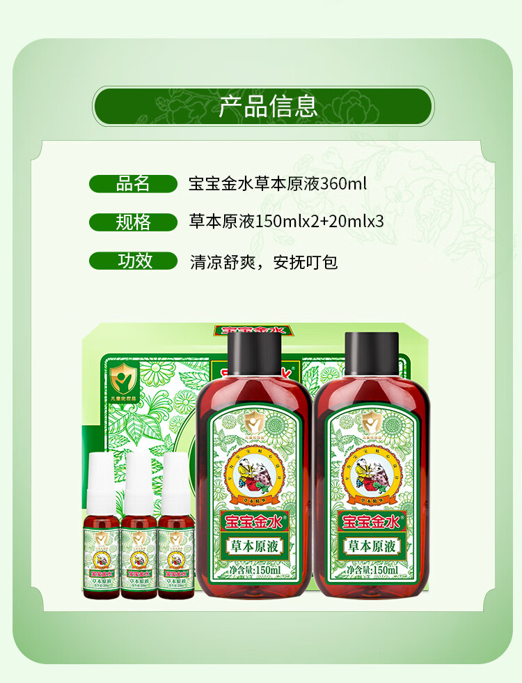 宝宝金水婴幼儿童洗澡草本原液去防痱子舒缓痒感花露水喷雾360ml