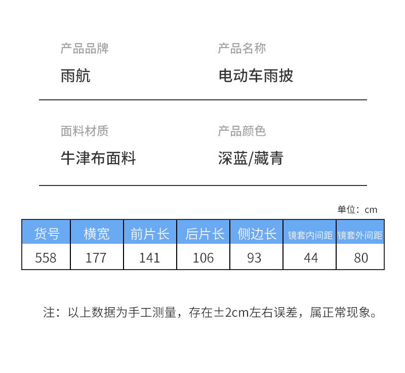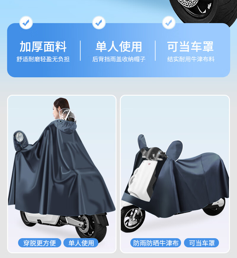 雨航(YUHANG)电动车雨衣电动车专用电瓶车雨披带镜套藏青色4XL