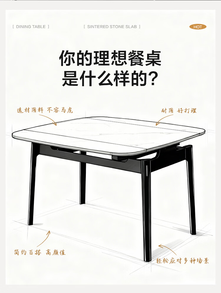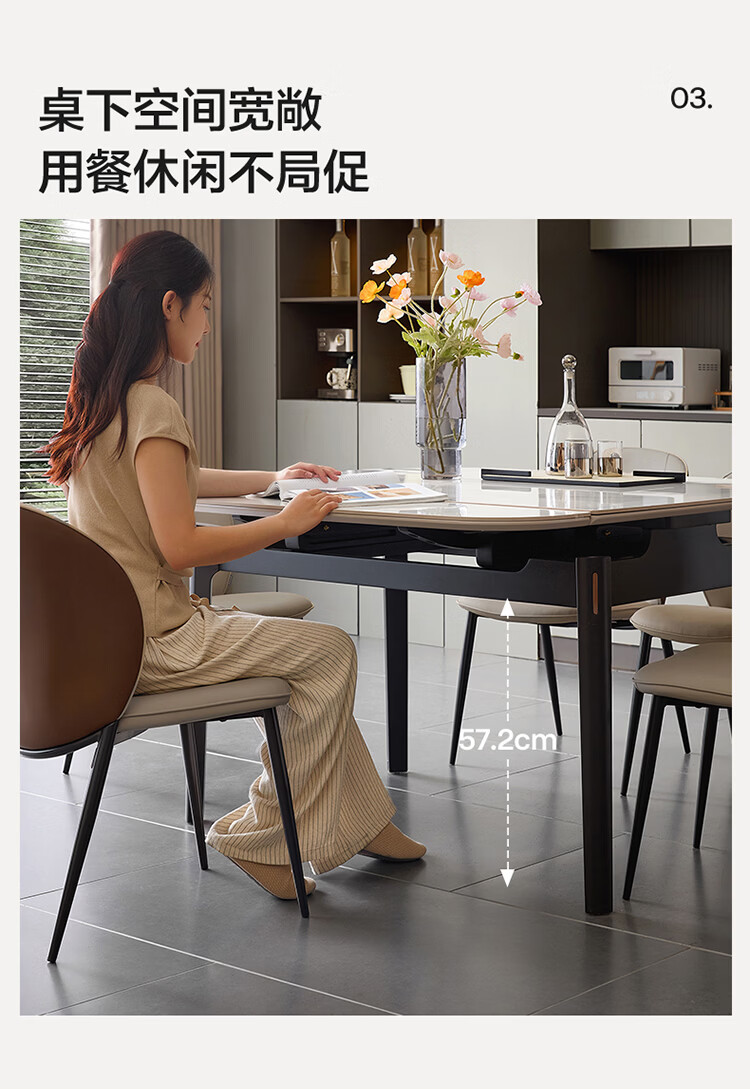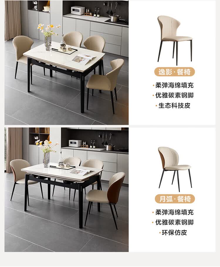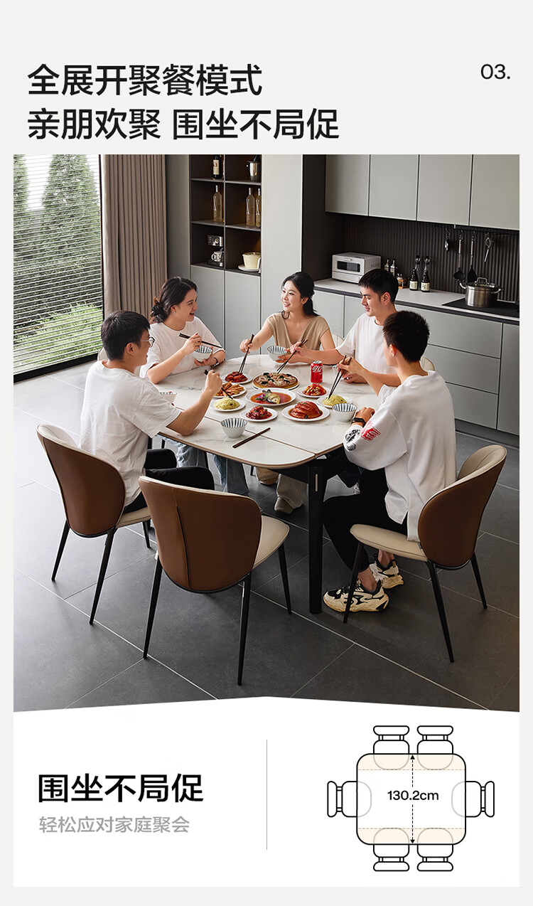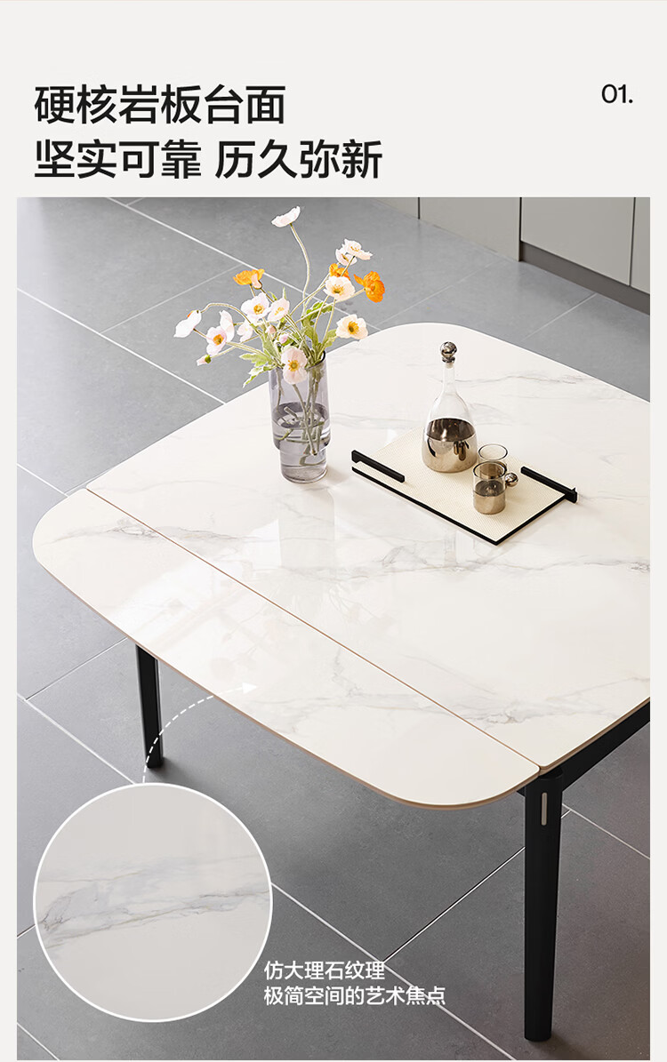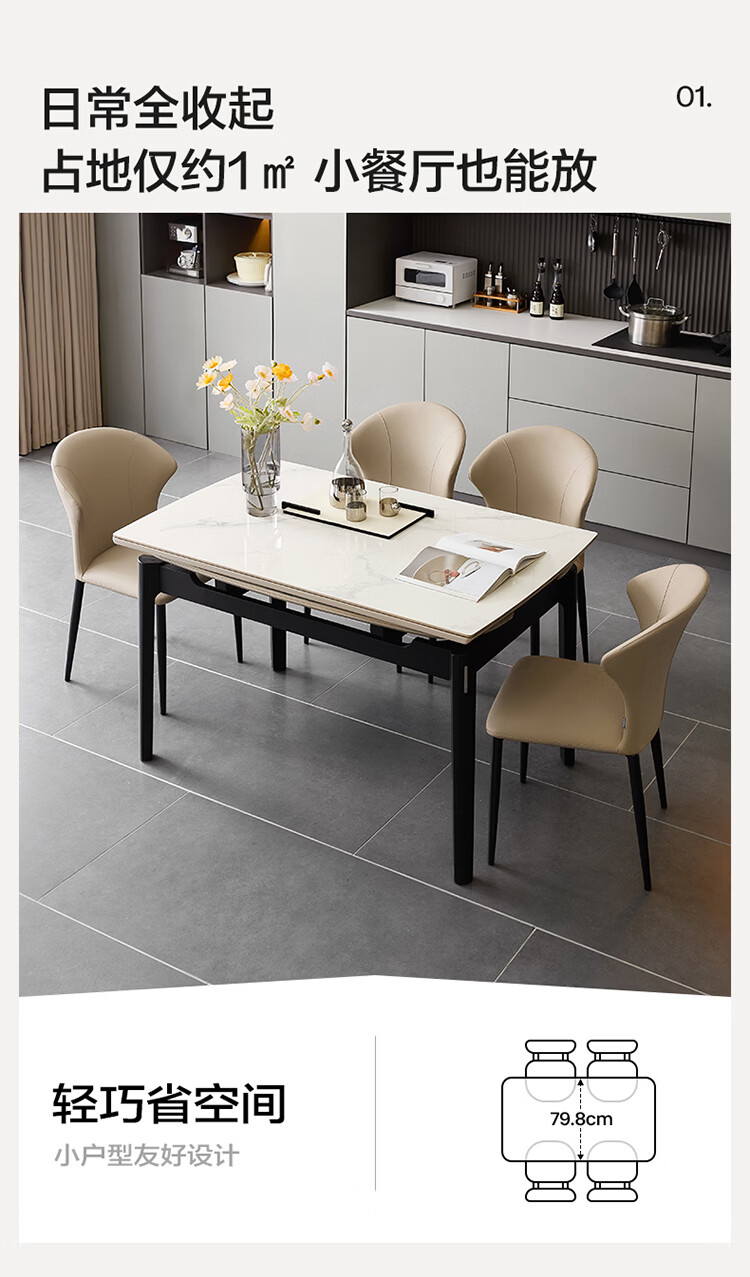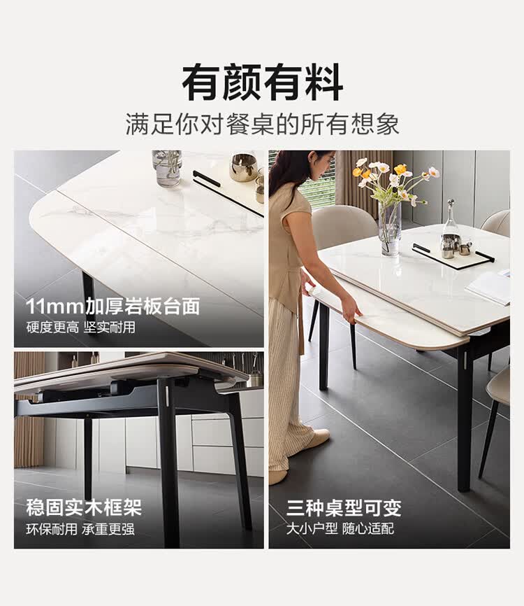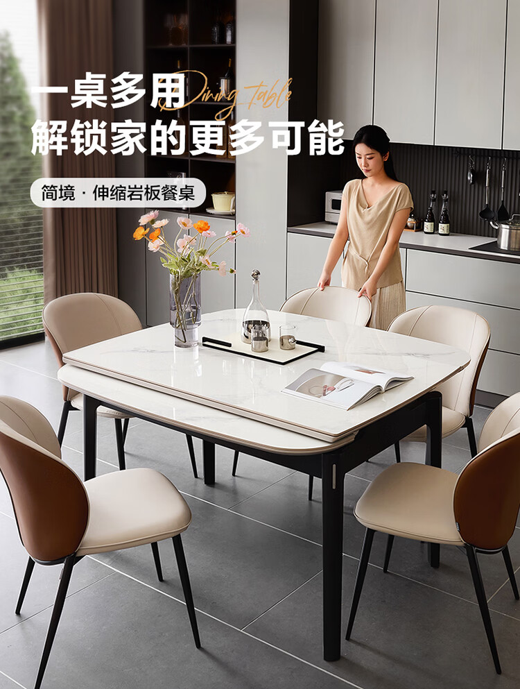 全友家居现代简约岩板餐桌家用轻奢高级感2026新款可伸缩4-6人餐桌椅 【岩板】功能餐桌