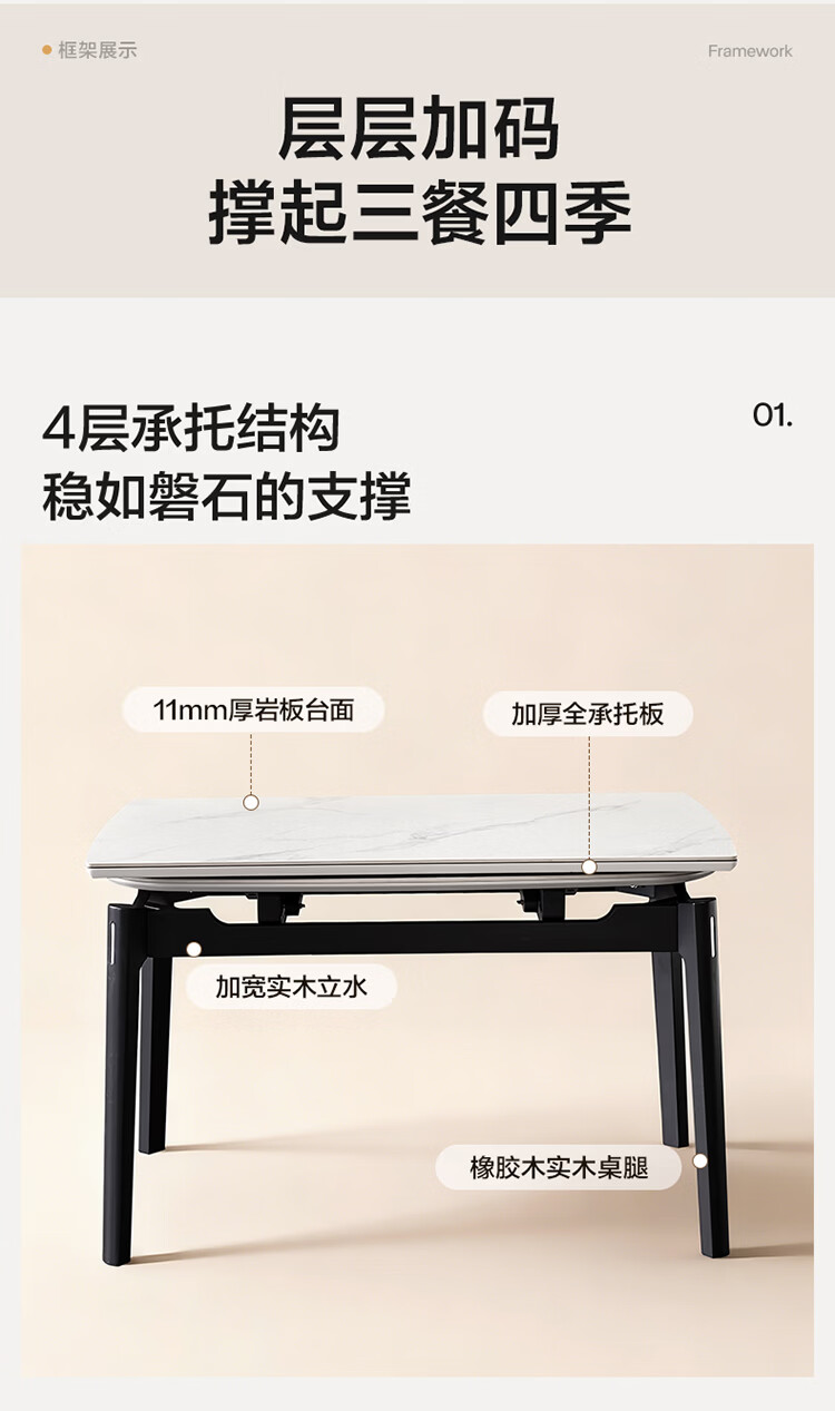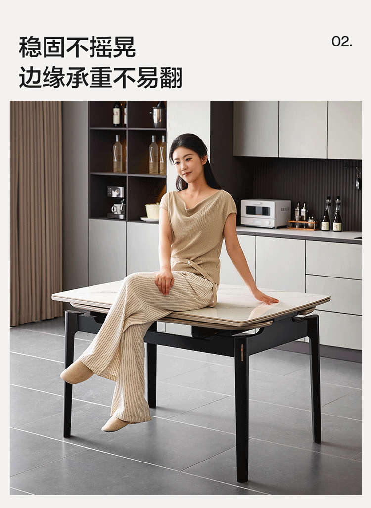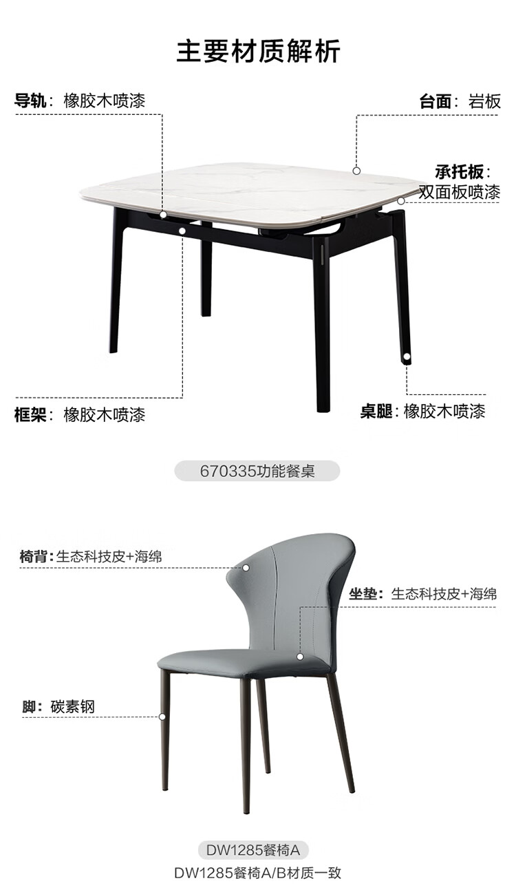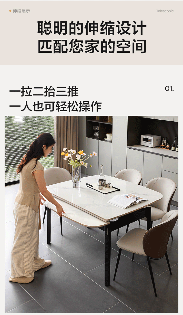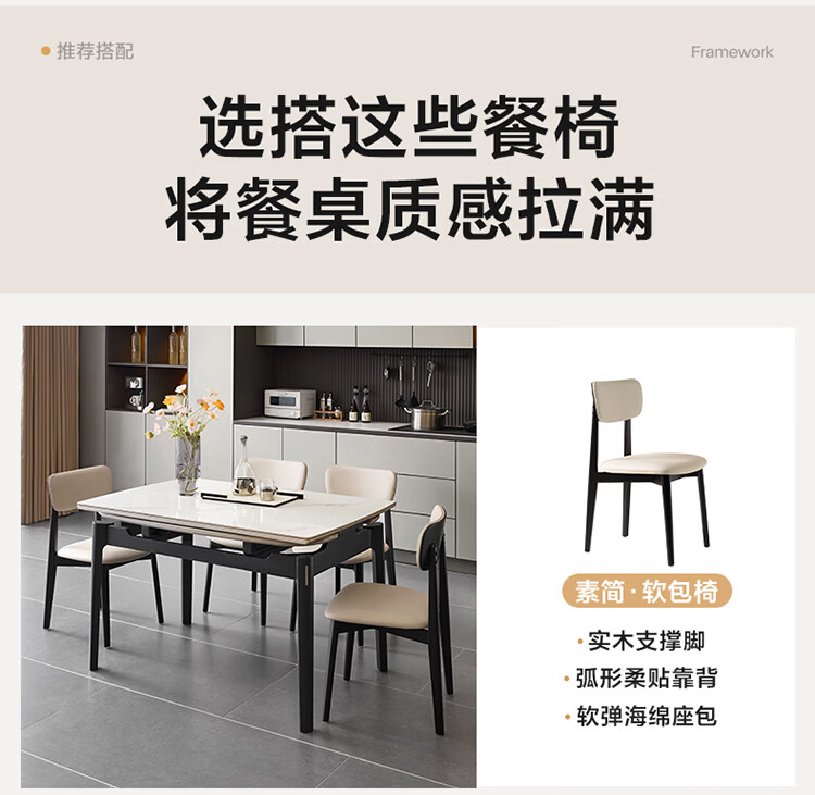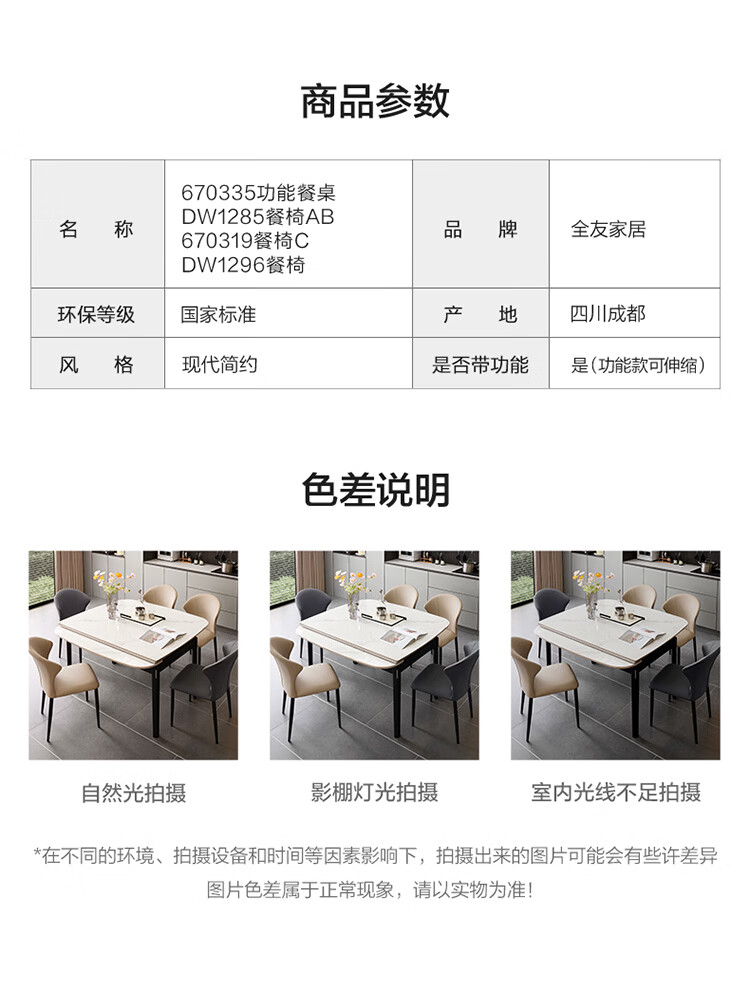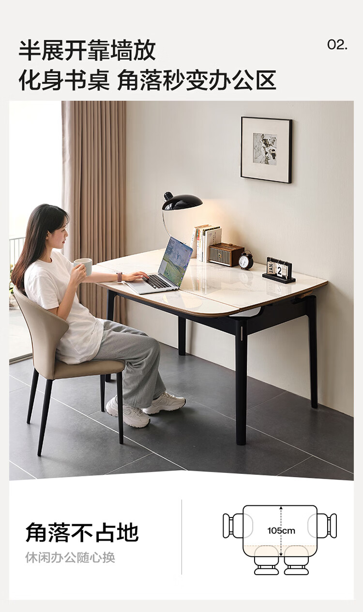 全友家居现代简约岩板餐桌家用轻奢高级感2026新款可伸缩4-6人餐桌椅 【岩板】功能餐桌