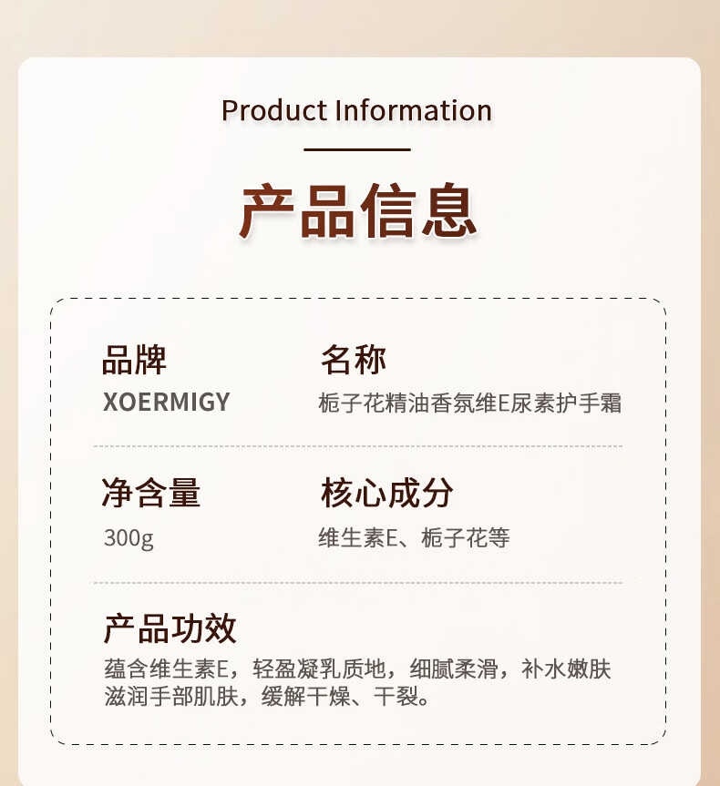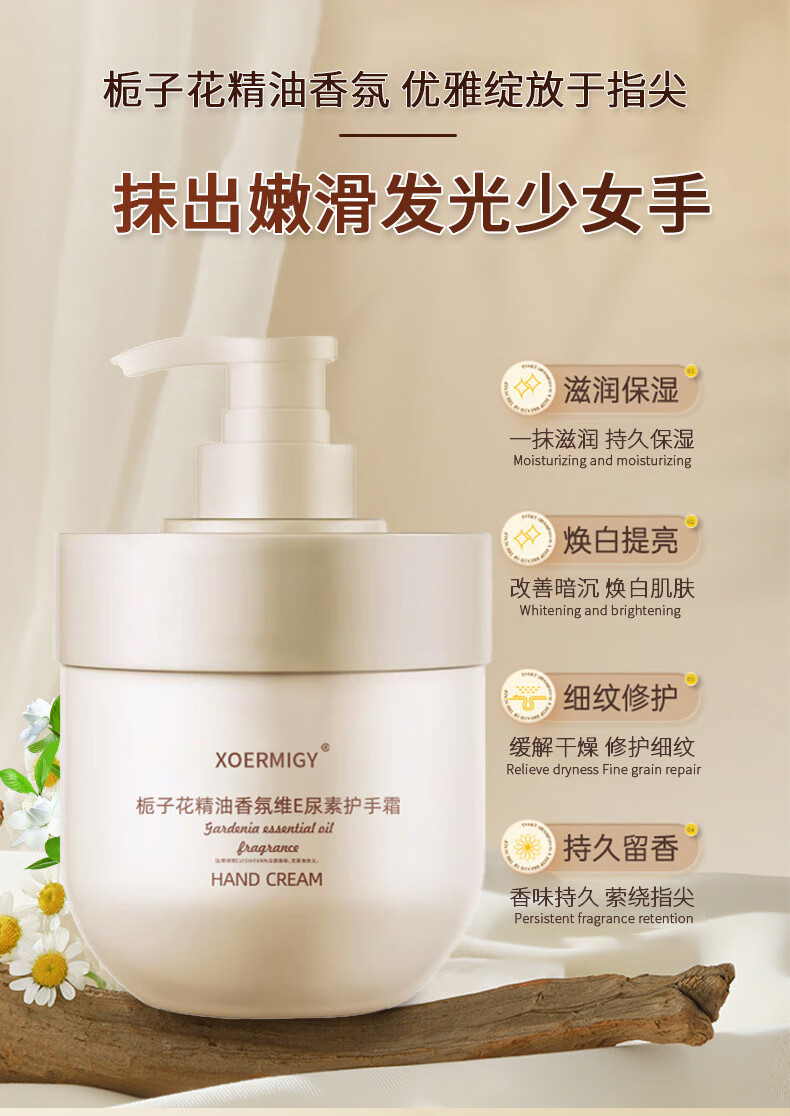 XOERMIOY护手霜防干裂膏足裂男女士维E尿素保湿滋润秋冬清爽不油腻护手霜 栀子花护手霜 300g*1瓶