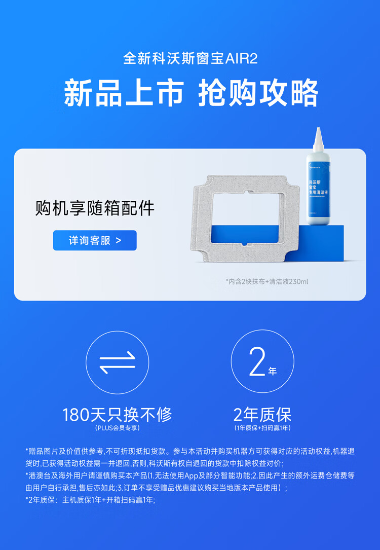 科沃斯超薄擦窗机器人AIR2 【ONE PRO姊妹款】 MINI2同款 双向喷水恒湿擦窗高层户外擦玻璃机器人