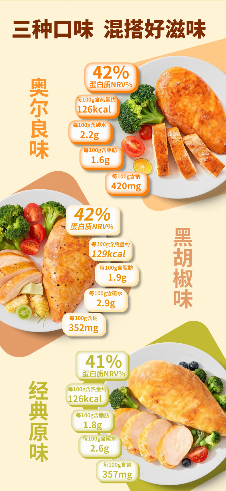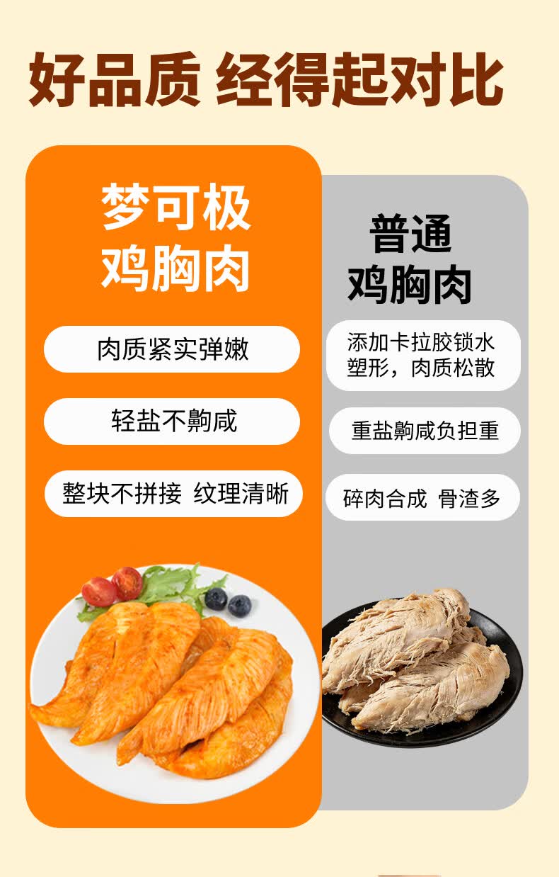 梦可极即食鸡胸肉混合口味50g*40低脂高蛋白健身代餐减零脂食京东物流