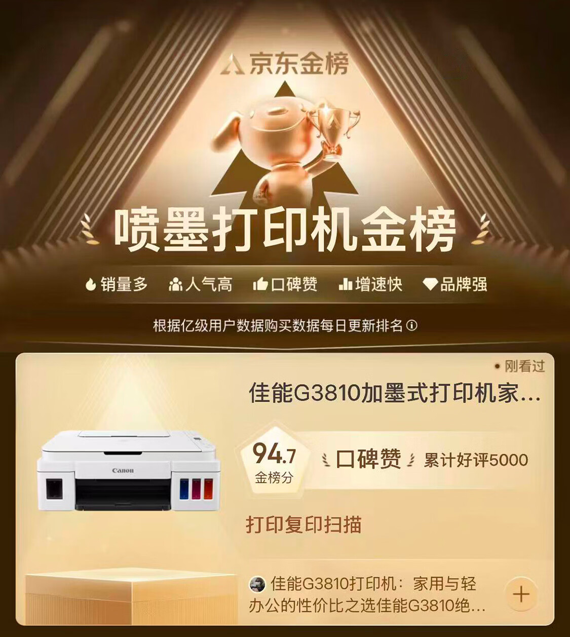 佳能(Canon)G3810大容量可加墨打印机打印复印扫描一体机家用家庭学生作业办公彩色喷墨墨仓式手机无线连接 【G3810 白】3in1-无线打印-7000页 官方标配