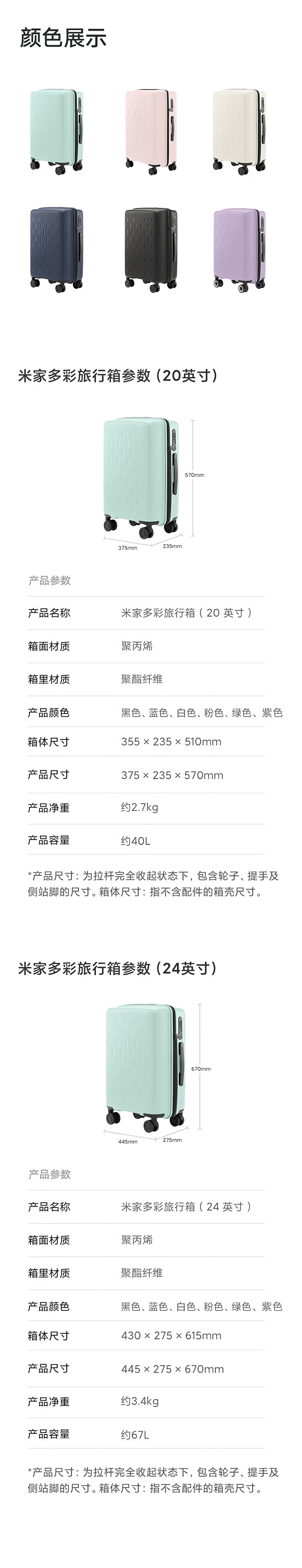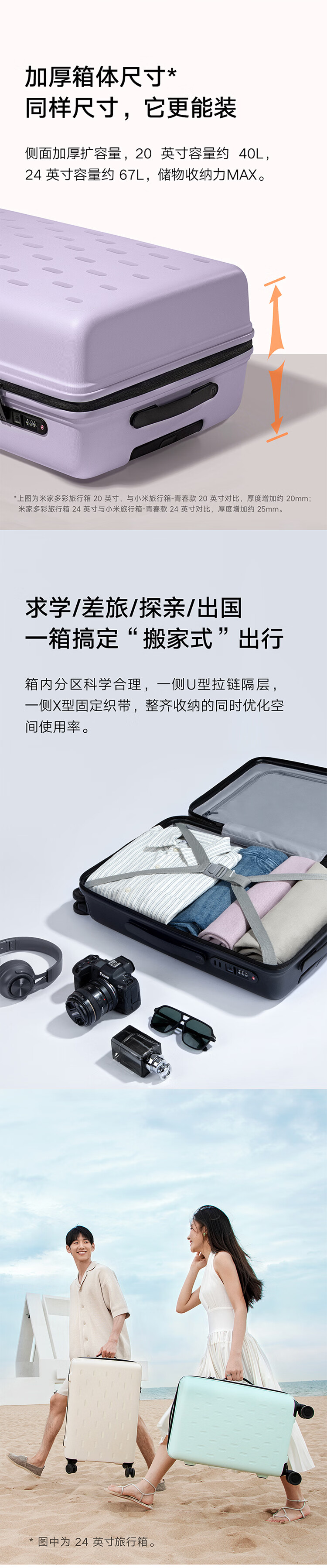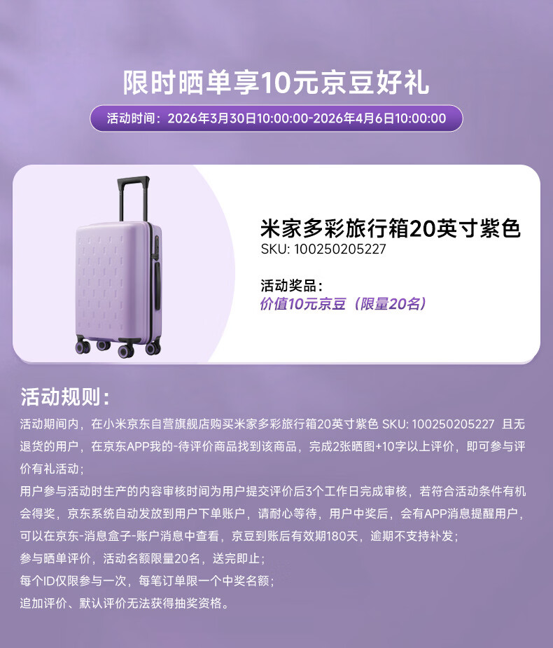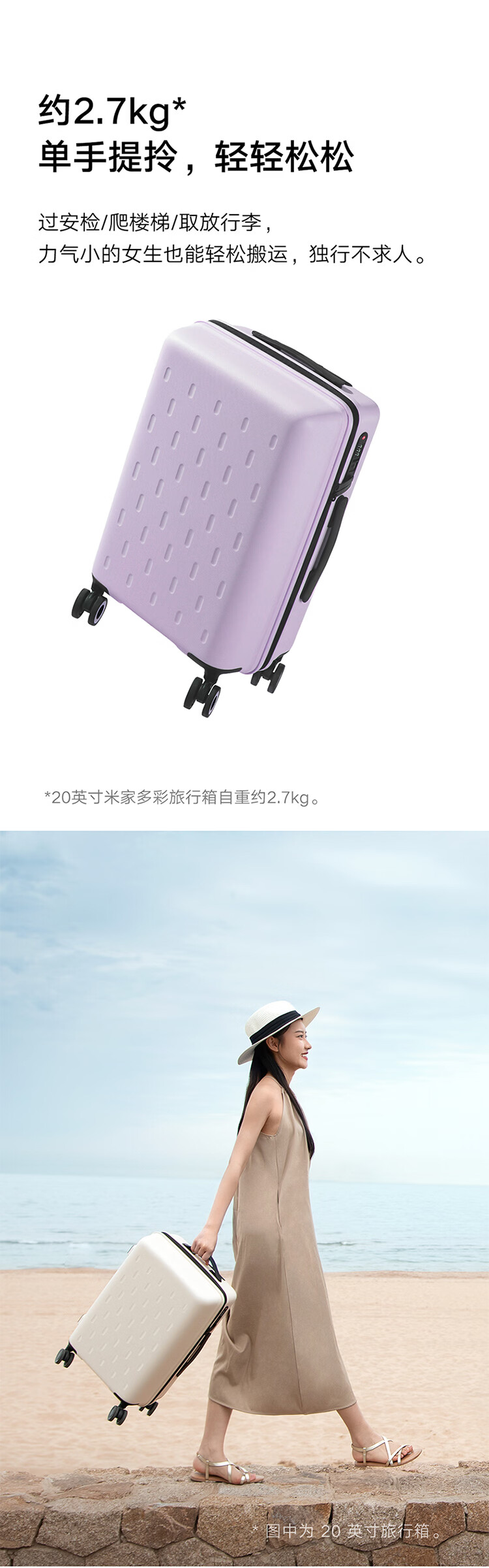 米家小米行李箱20英寸拉杆箱可登机箱万向轮旅行箱男女小型密码箱紫色