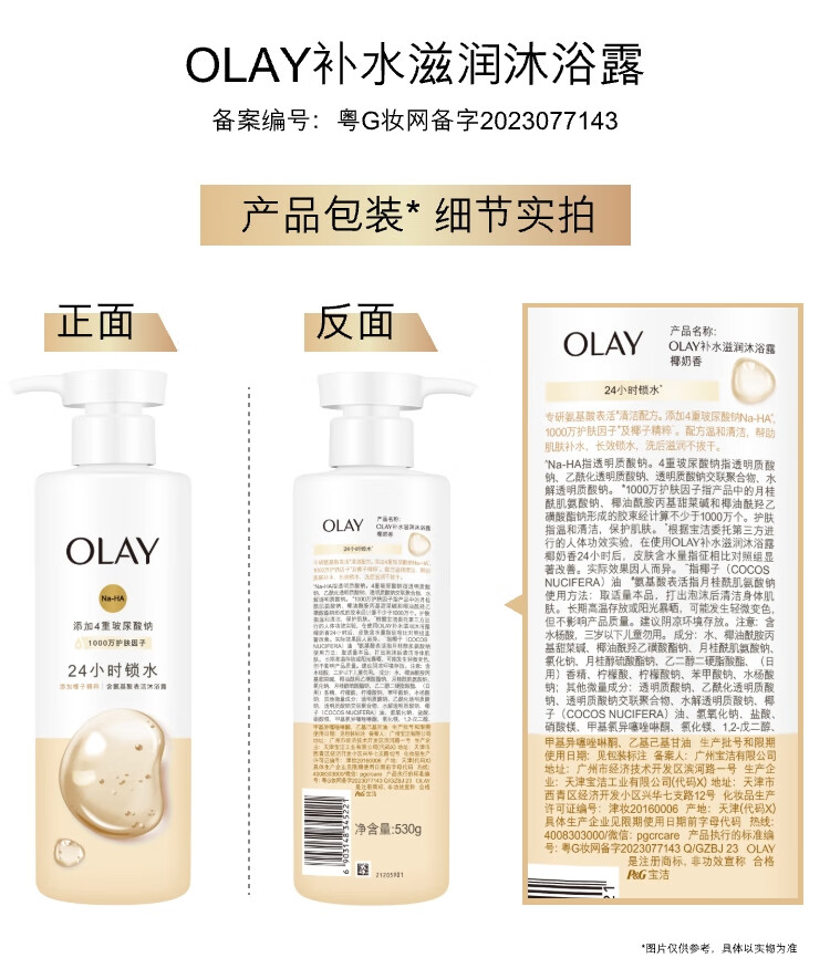 OLAY玉兰油补水滋润沐浴露 椰奶香530g 锁水 男女士通用 新旧包装随机