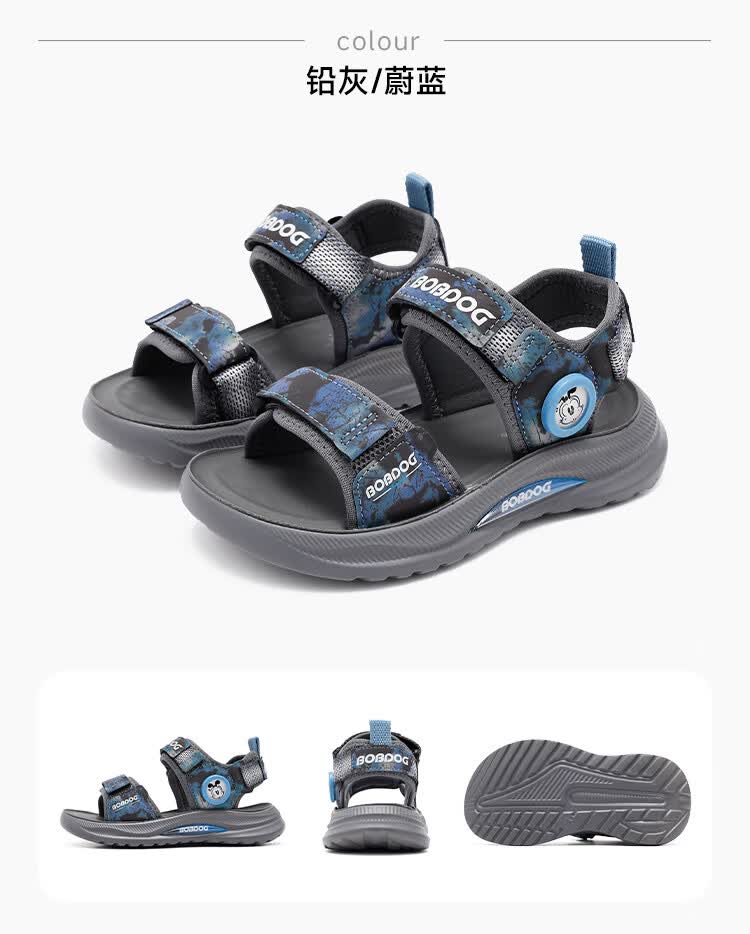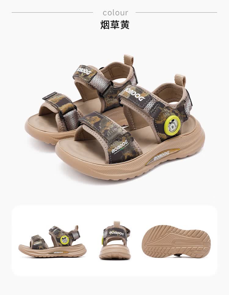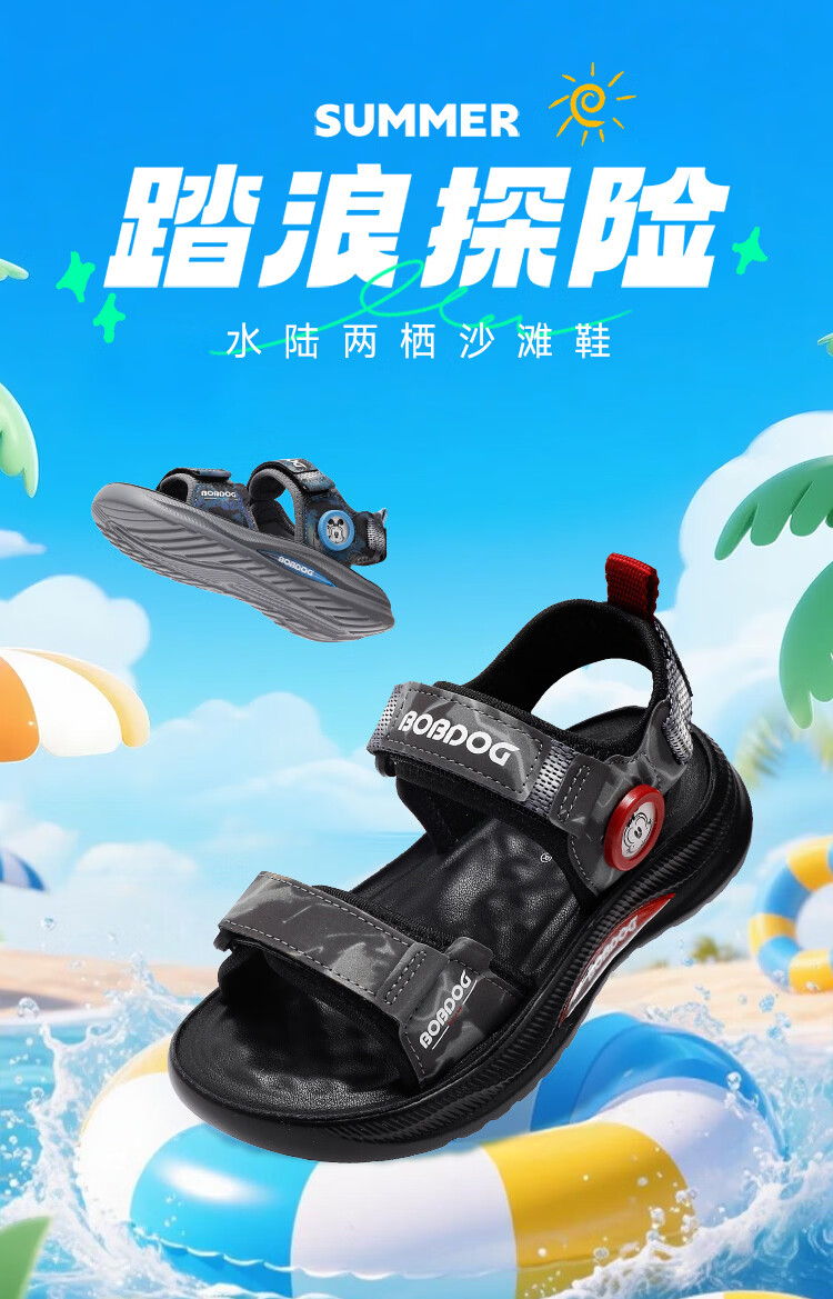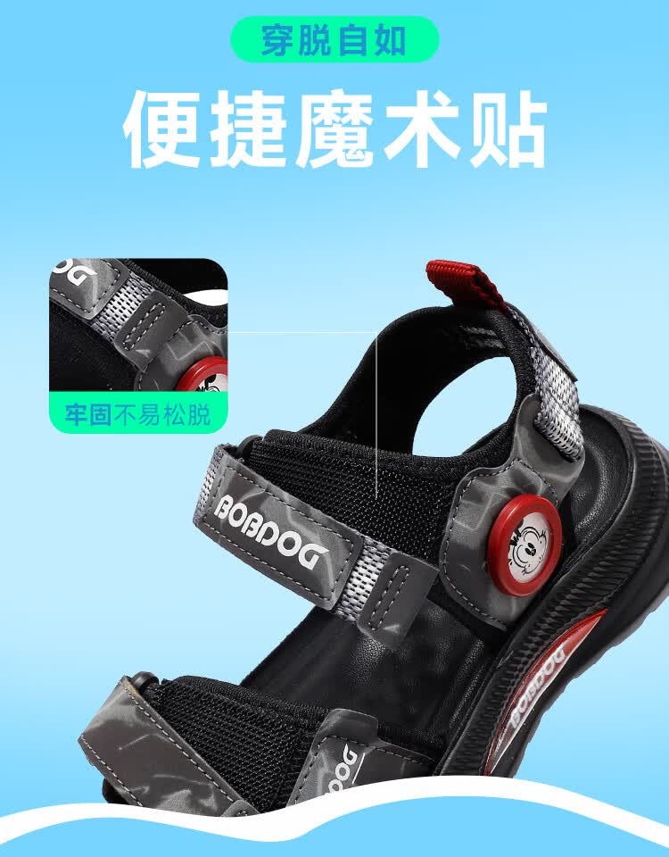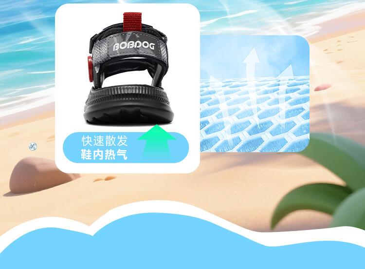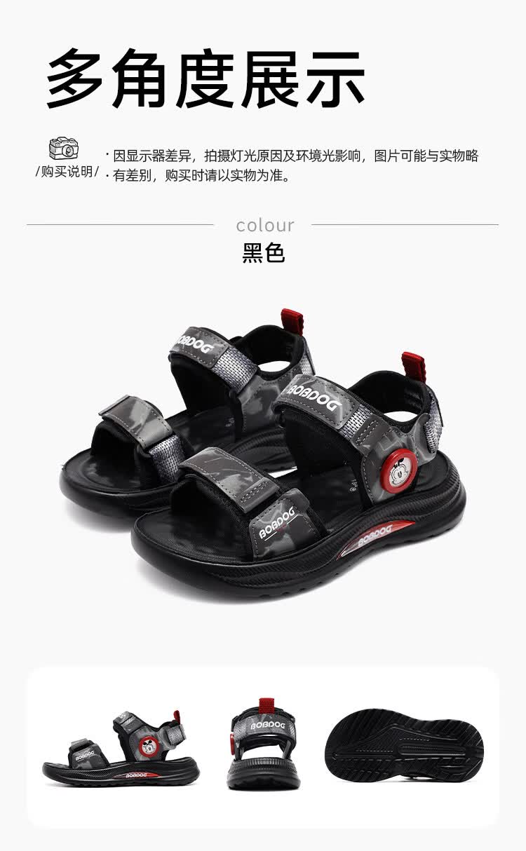 巴布豆(BOBDOG)童鞋夏季透气儿童凉鞋男童校园运动鞋子2026新款中大童露趾沙滩鞋 黑色 26 适合脚长17.5cm