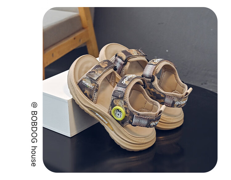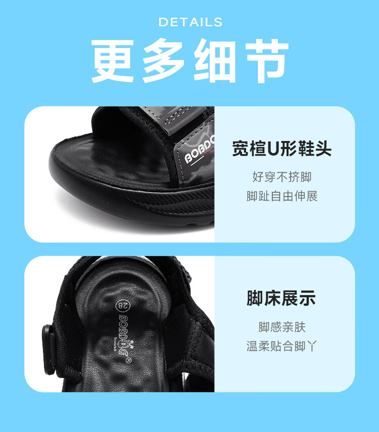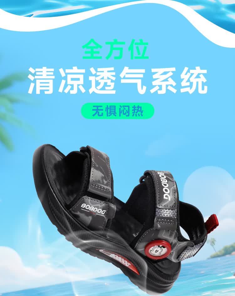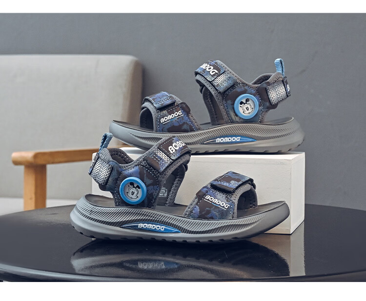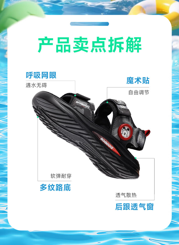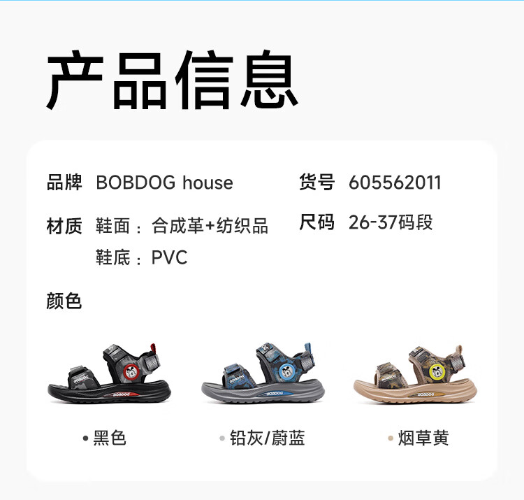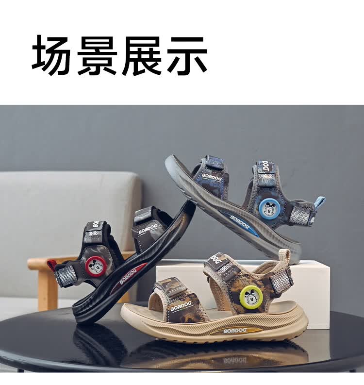 巴布豆(BOBDOG)童鞋夏季透气儿童凉鞋男童校园运动鞋子2026新款中大童露趾沙滩鞋 黑色 26 适合脚长17.5cm