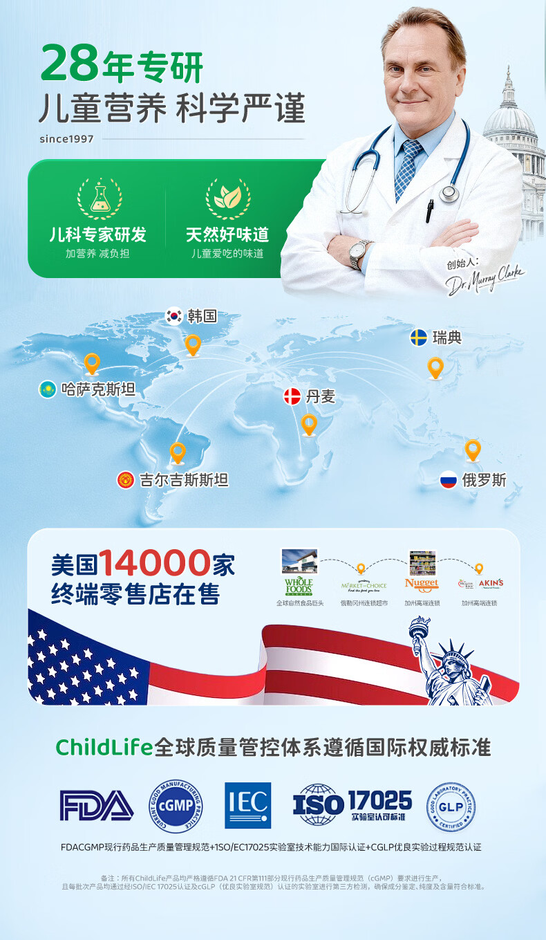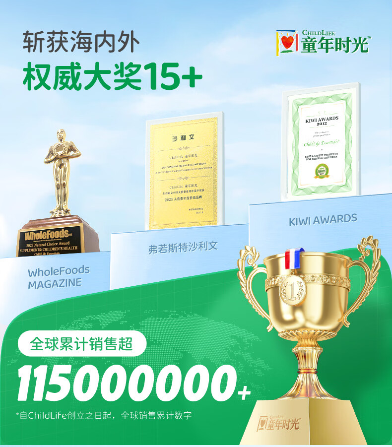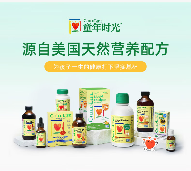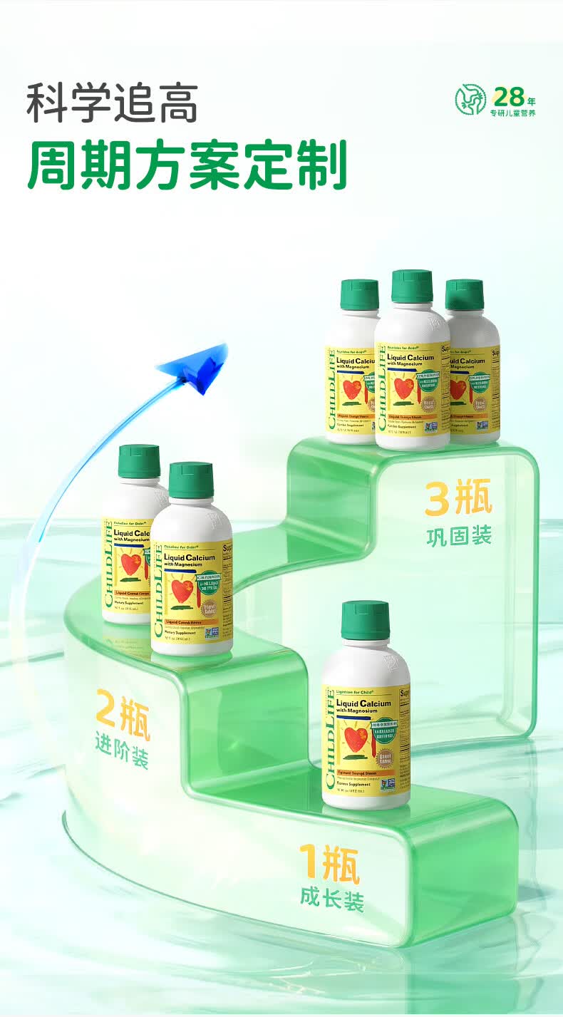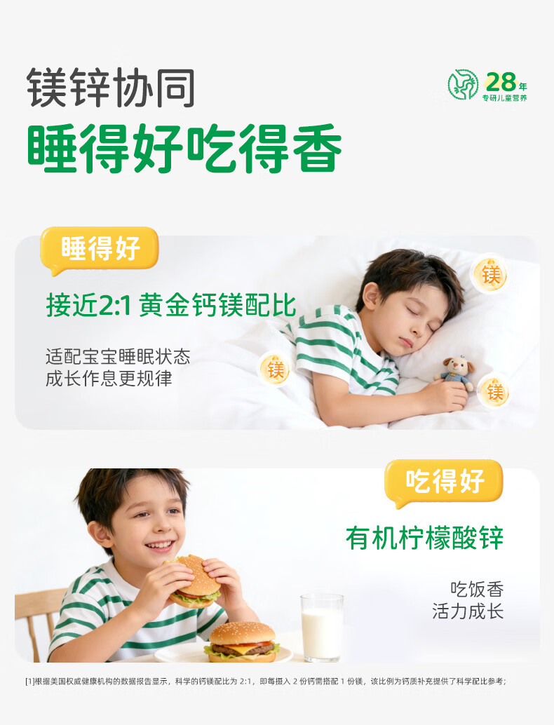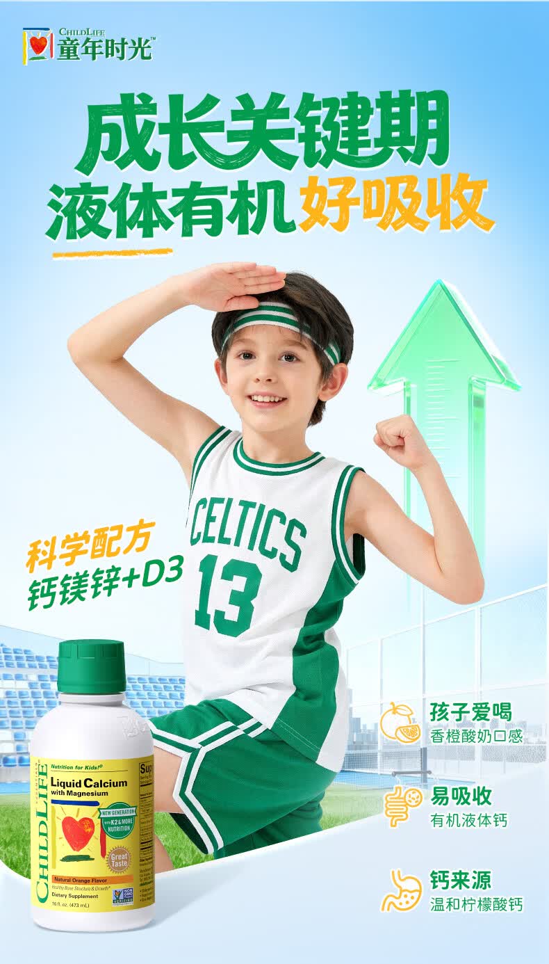 童年时光 钙镁锌液体钙大白瓶婴幼儿童补钙含K2维生素d3 473ml (便捷装)液体钙镁锌 10ml*30包