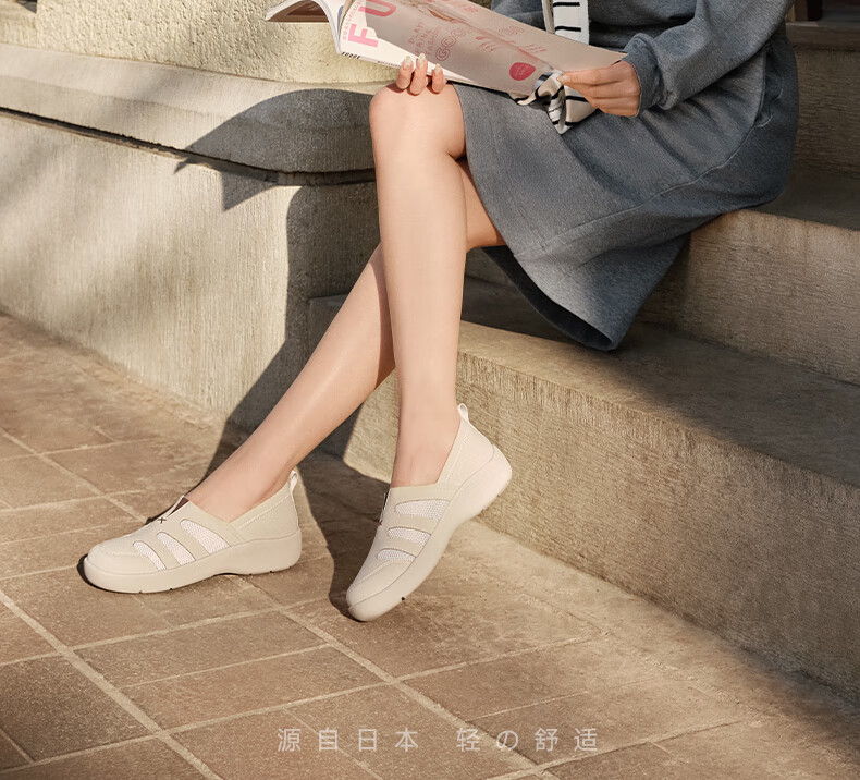 Pansy盼喜网面鞋女鞋春季休闲鞋德训鞋透气舒适一脚蹬鞋子4242 米色 38