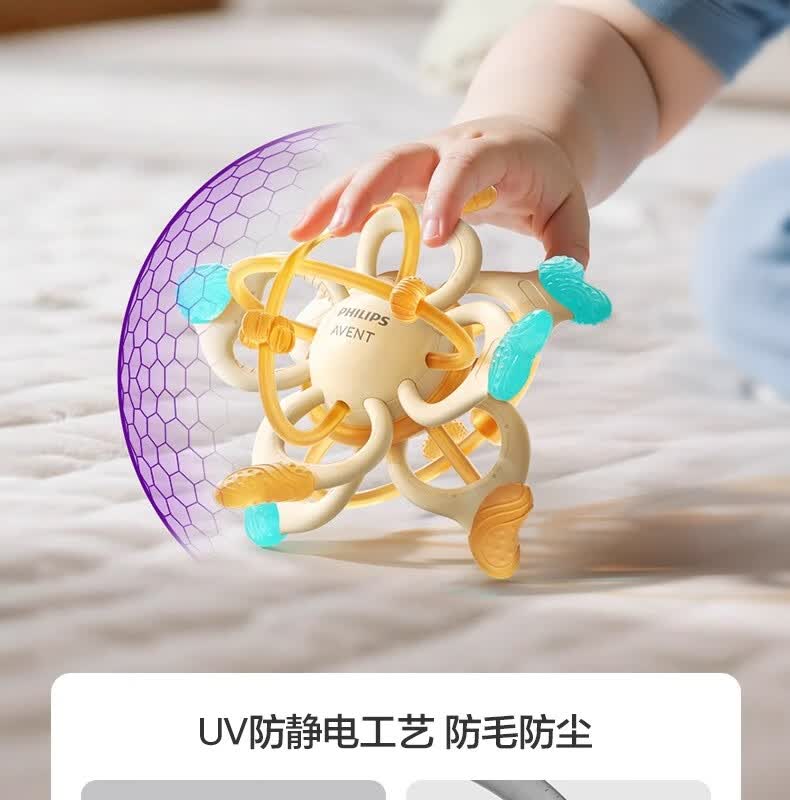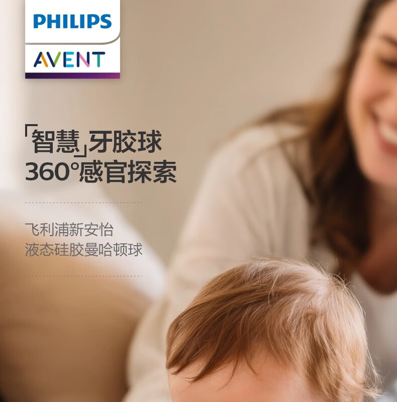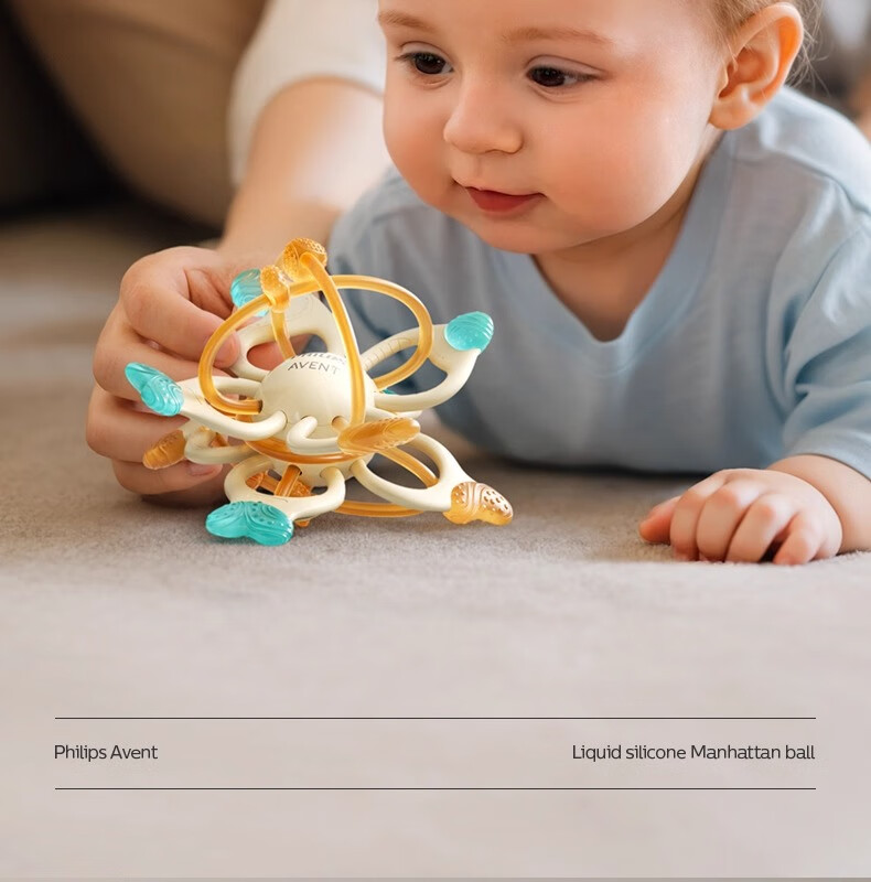 新安怡(AVENT)飞利浦婴儿曼哈顿手抓球宝宝口欲期磨牙食品级硅胶啃咬防吃手玩具