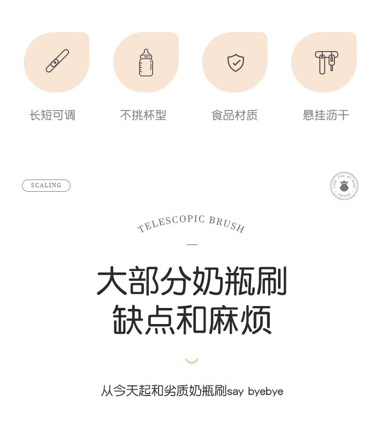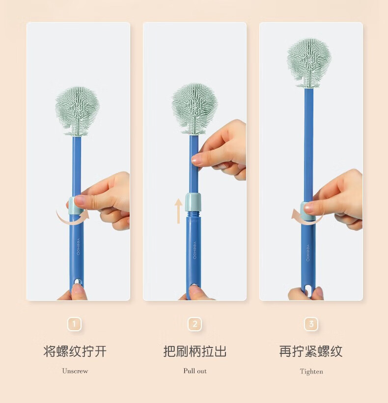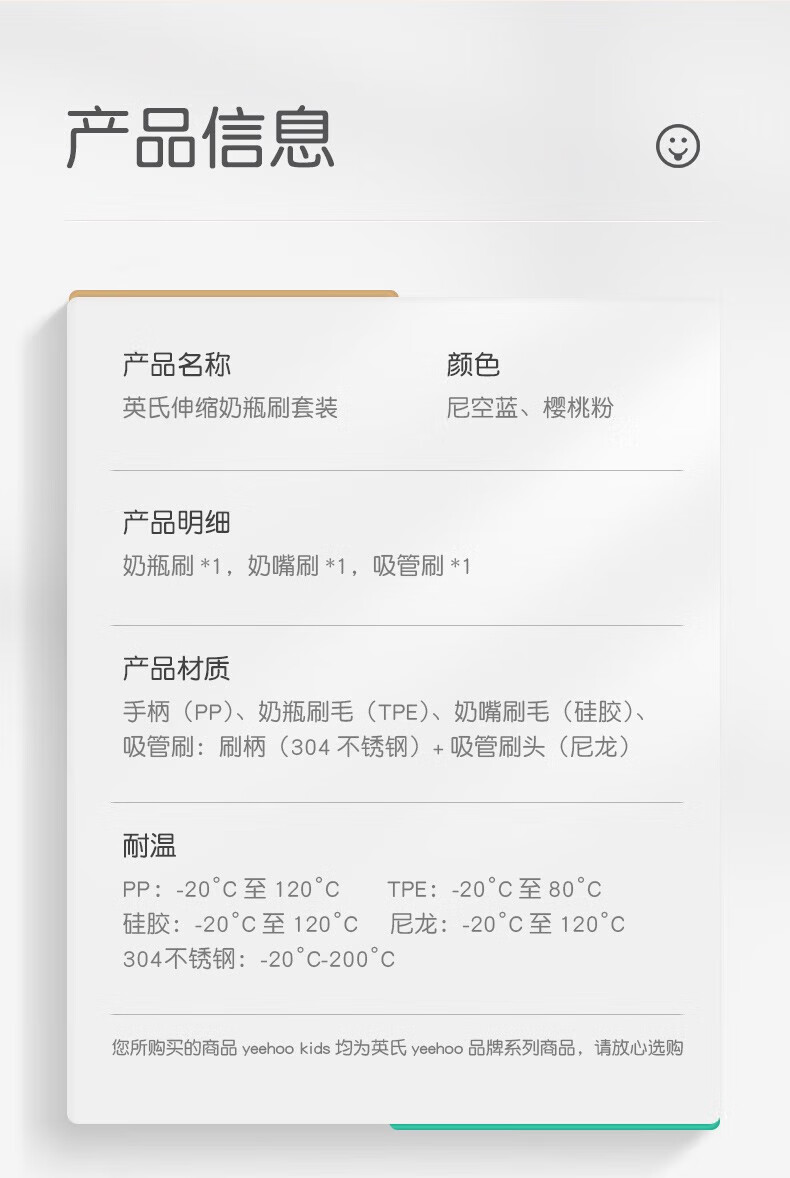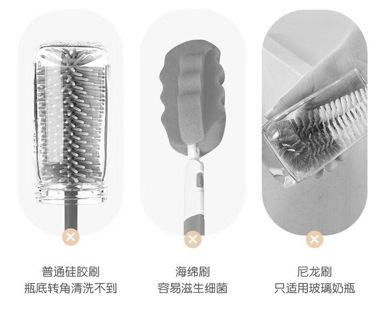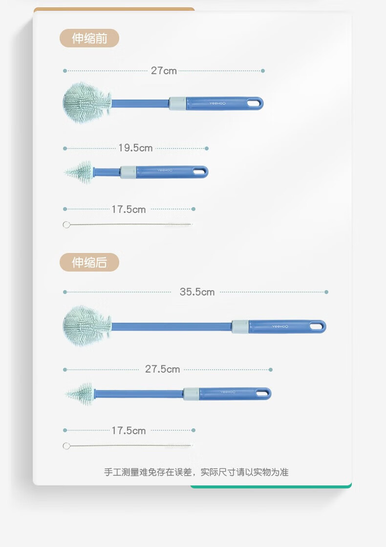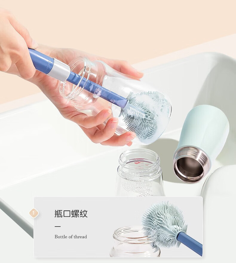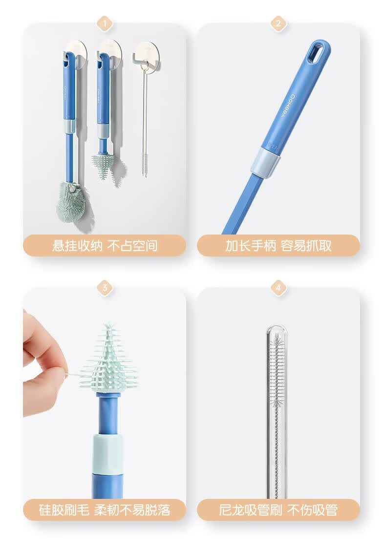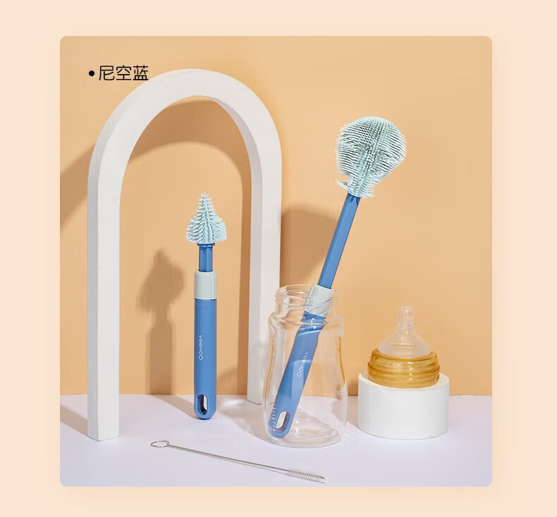 英氏(YEEHOO)奶瓶刷水杯刷直刷奶瓶奶嘴清洁工具奶瓶海绵硅胶刷子 尼空蓝