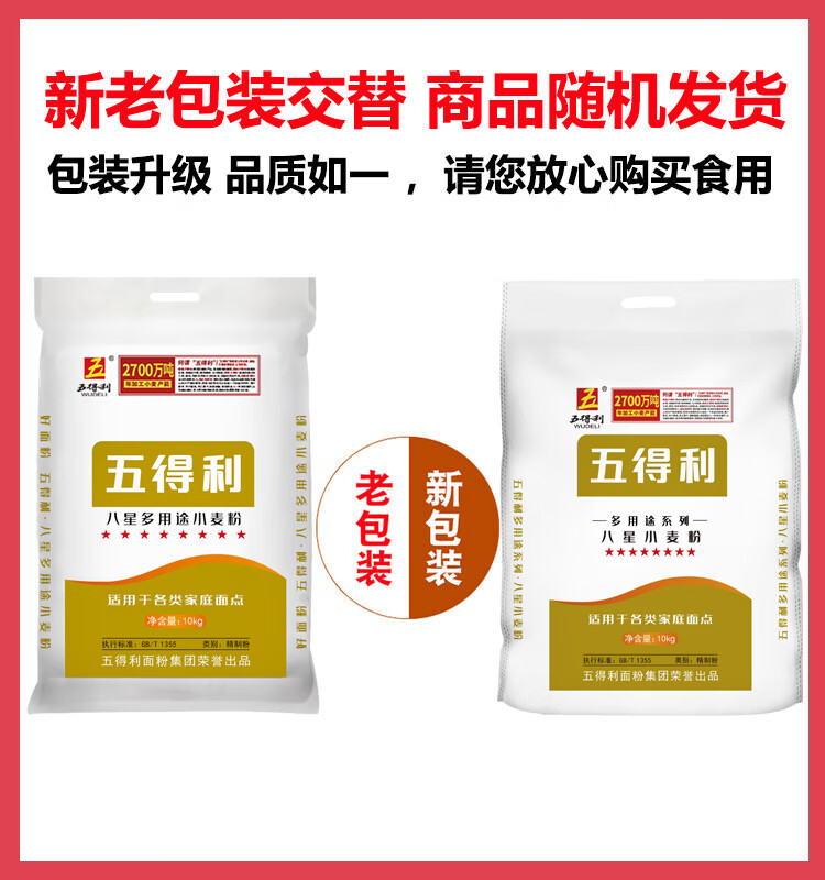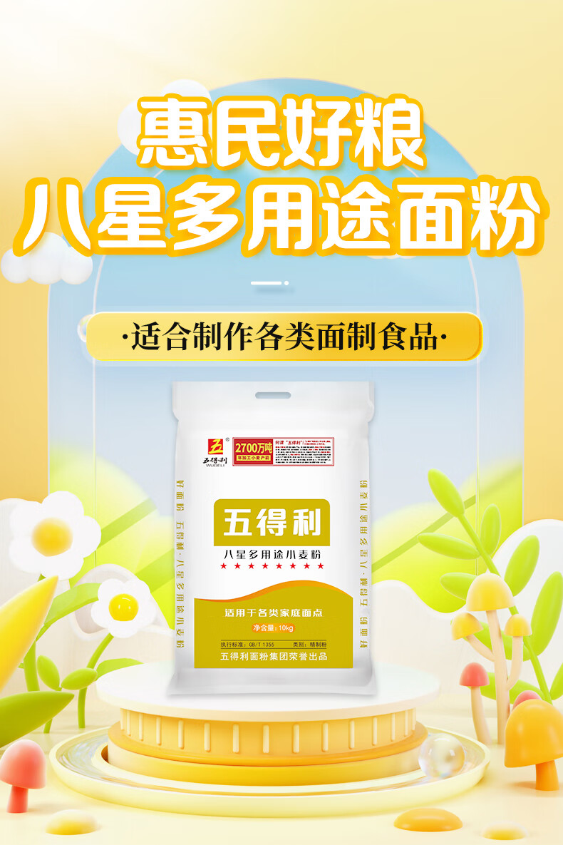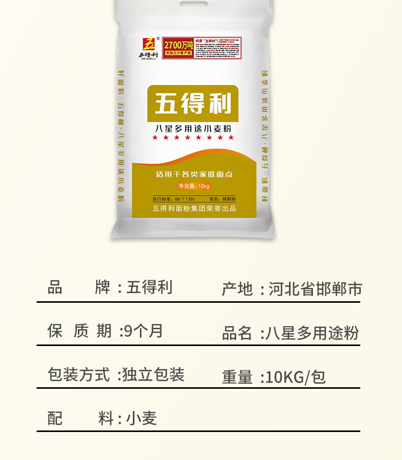 五得利面粉 八星多用途小麦粉20斤 家庭 馒头包子饺子面条 通用粉