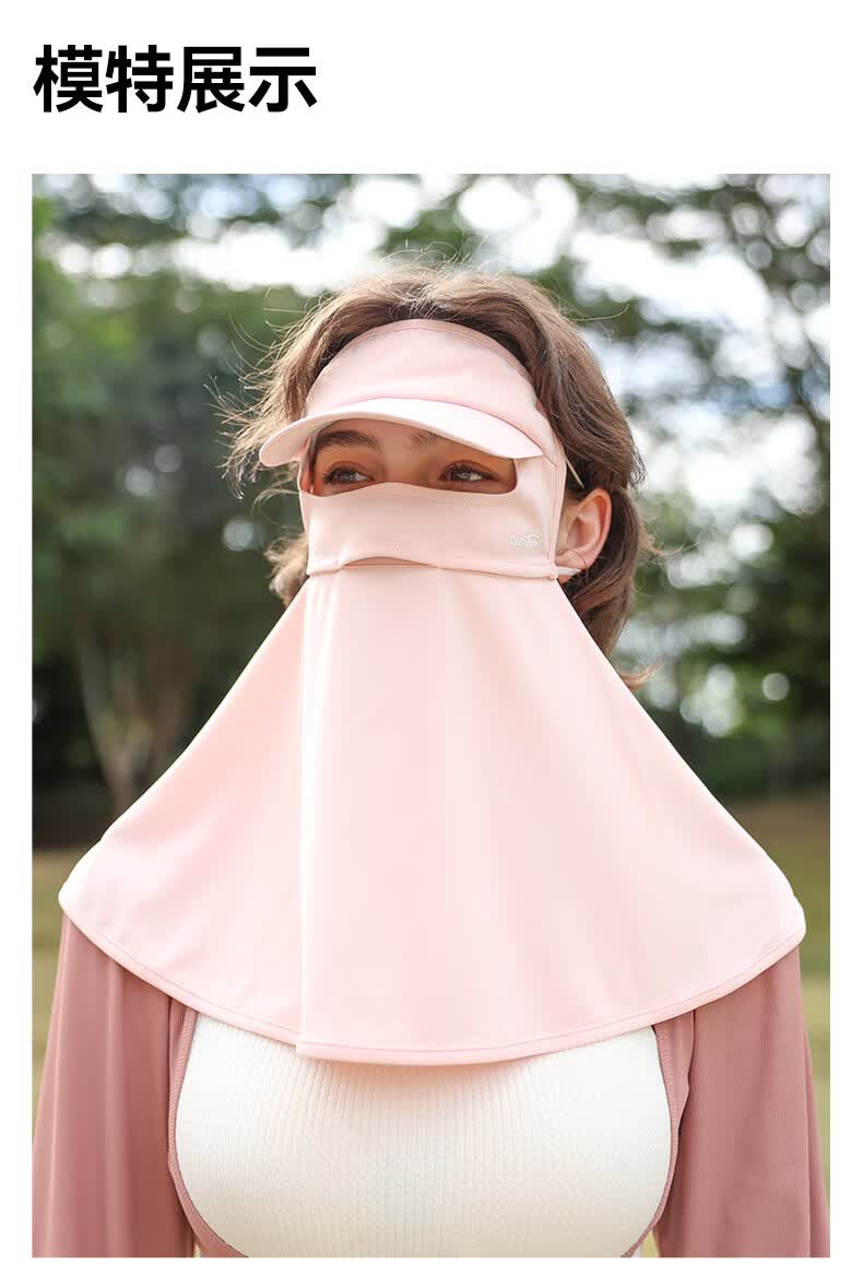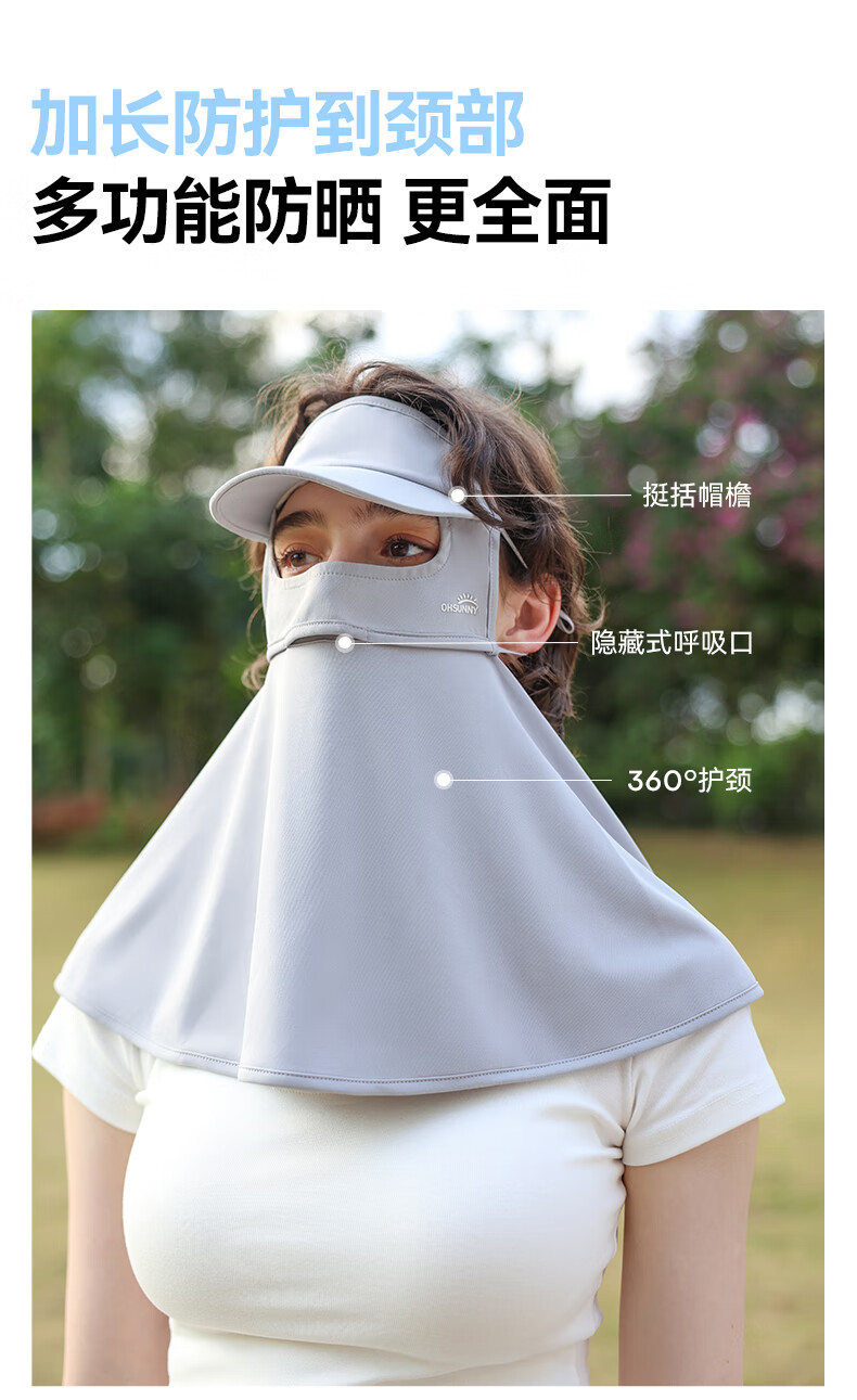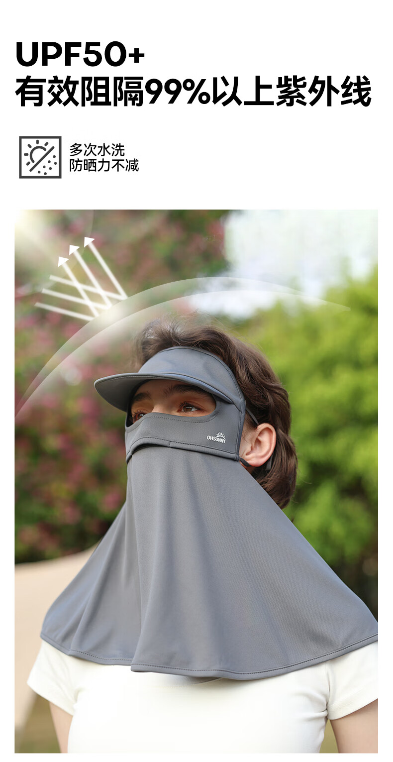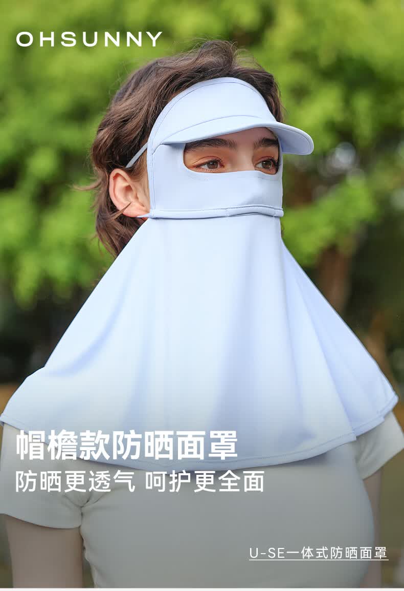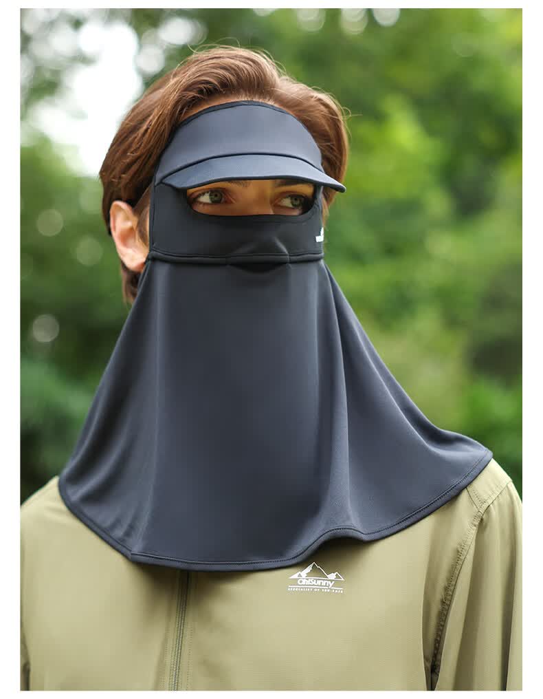 OhSunny全脸防晒面罩女夏季户外全防护透气遮阳护颈带帽檐口罩男 暗夜黑M