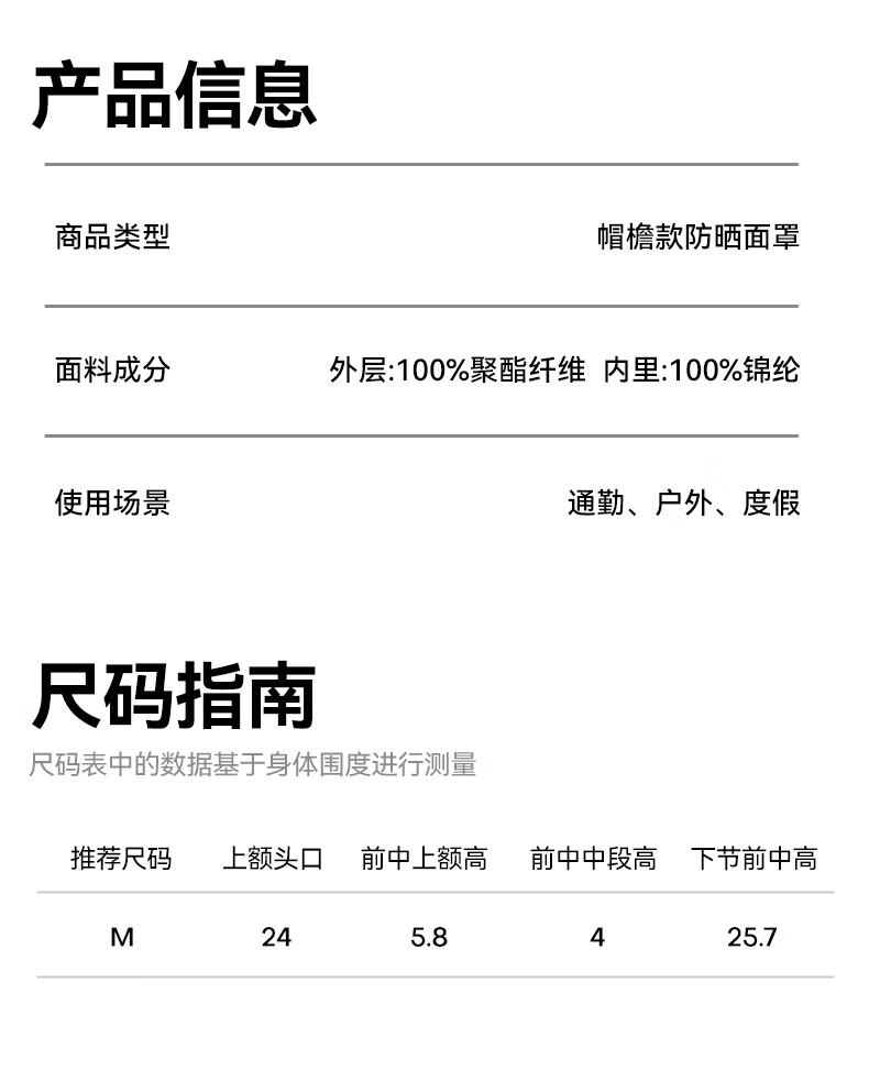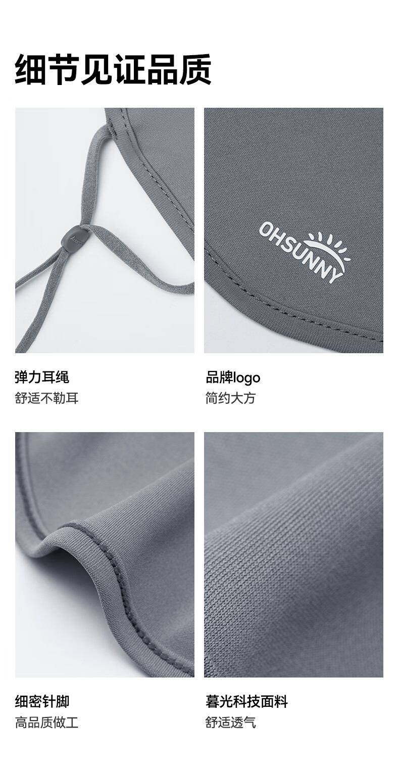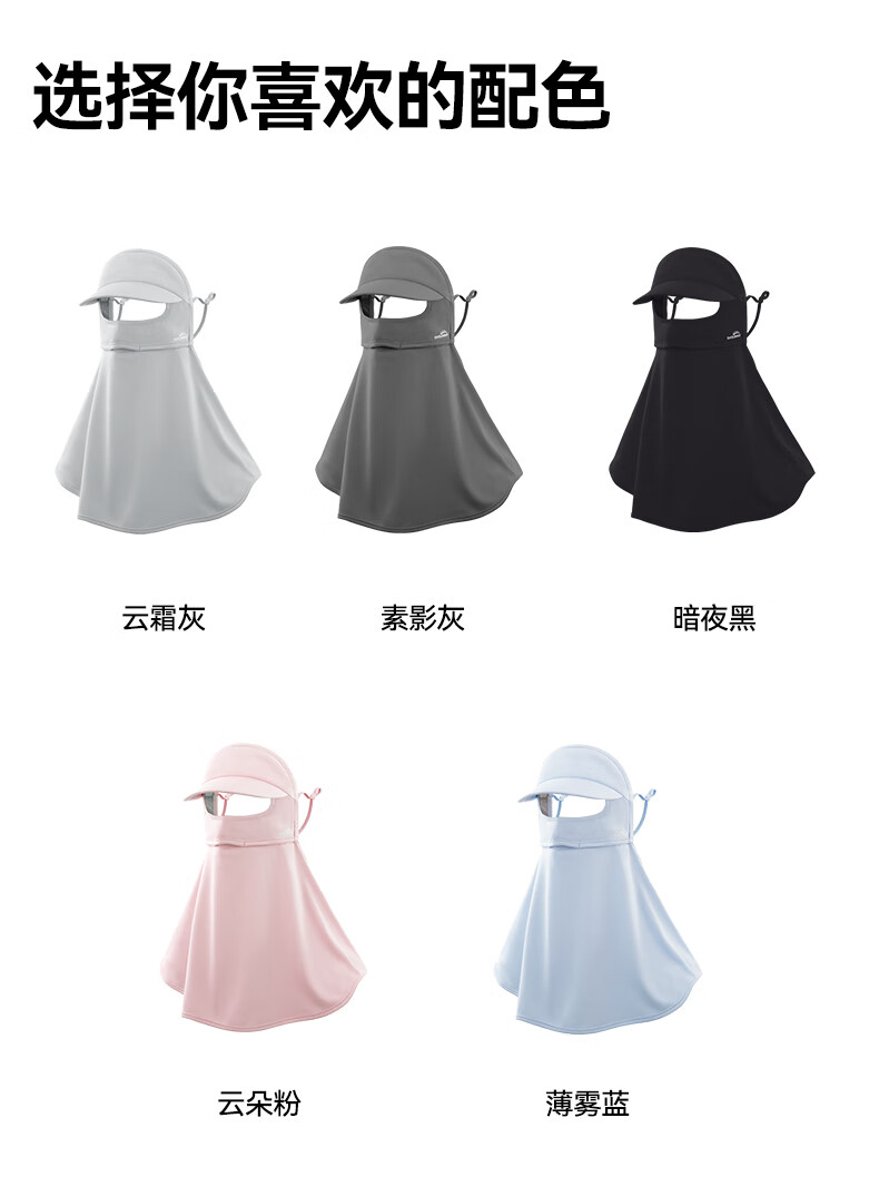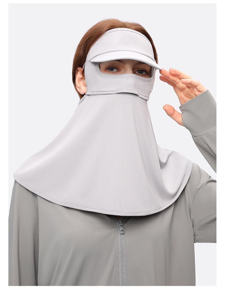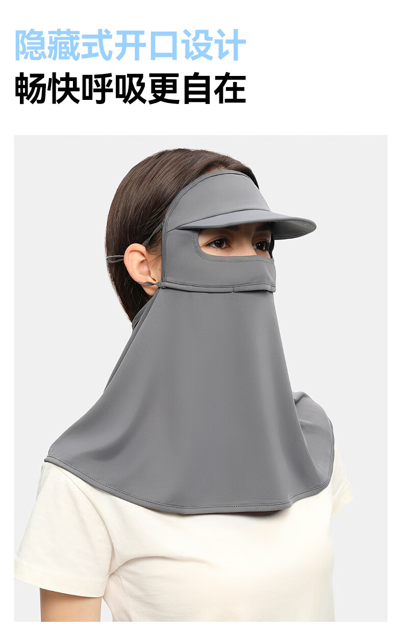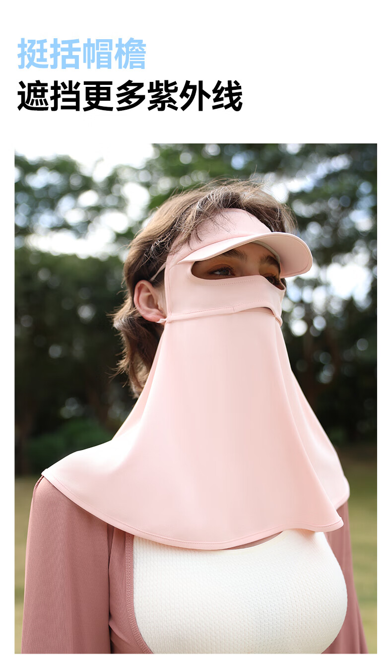 OhSunny全脸防晒面罩女夏季户外全防护透气遮阳护颈带帽檐口罩男 暗夜黑M