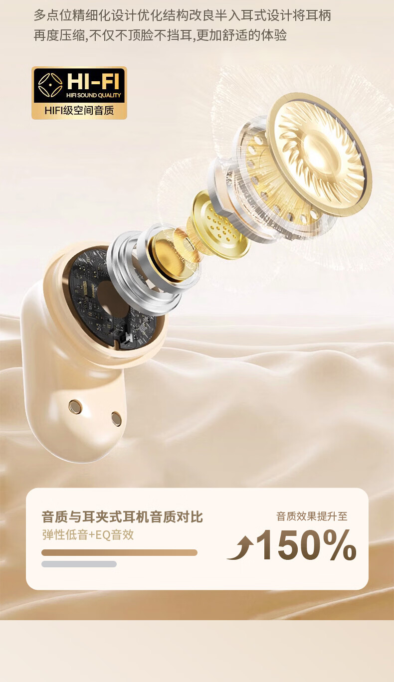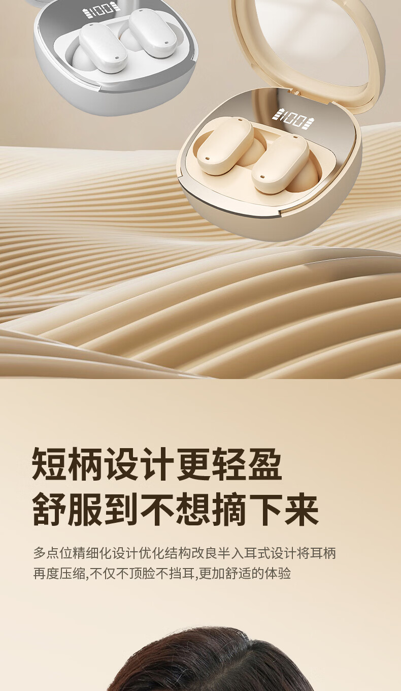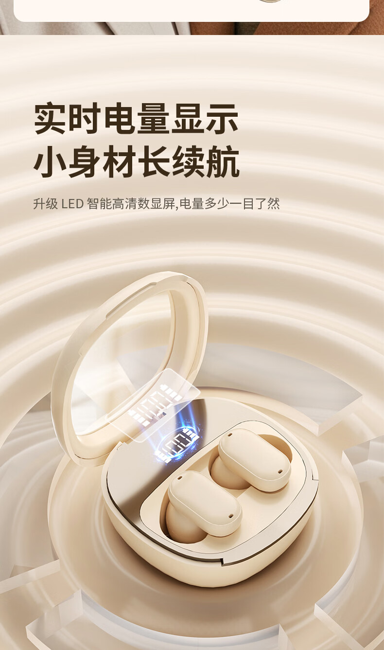酷狗【音乐金榜】6.0蓝牙耳机耳夹式骨传导概念无线不入耳运动跑步降噪续航开放适用于苹果华为KG300 香槟金丨蓝牙6.0旗舰丨超长续航丨磁力数显