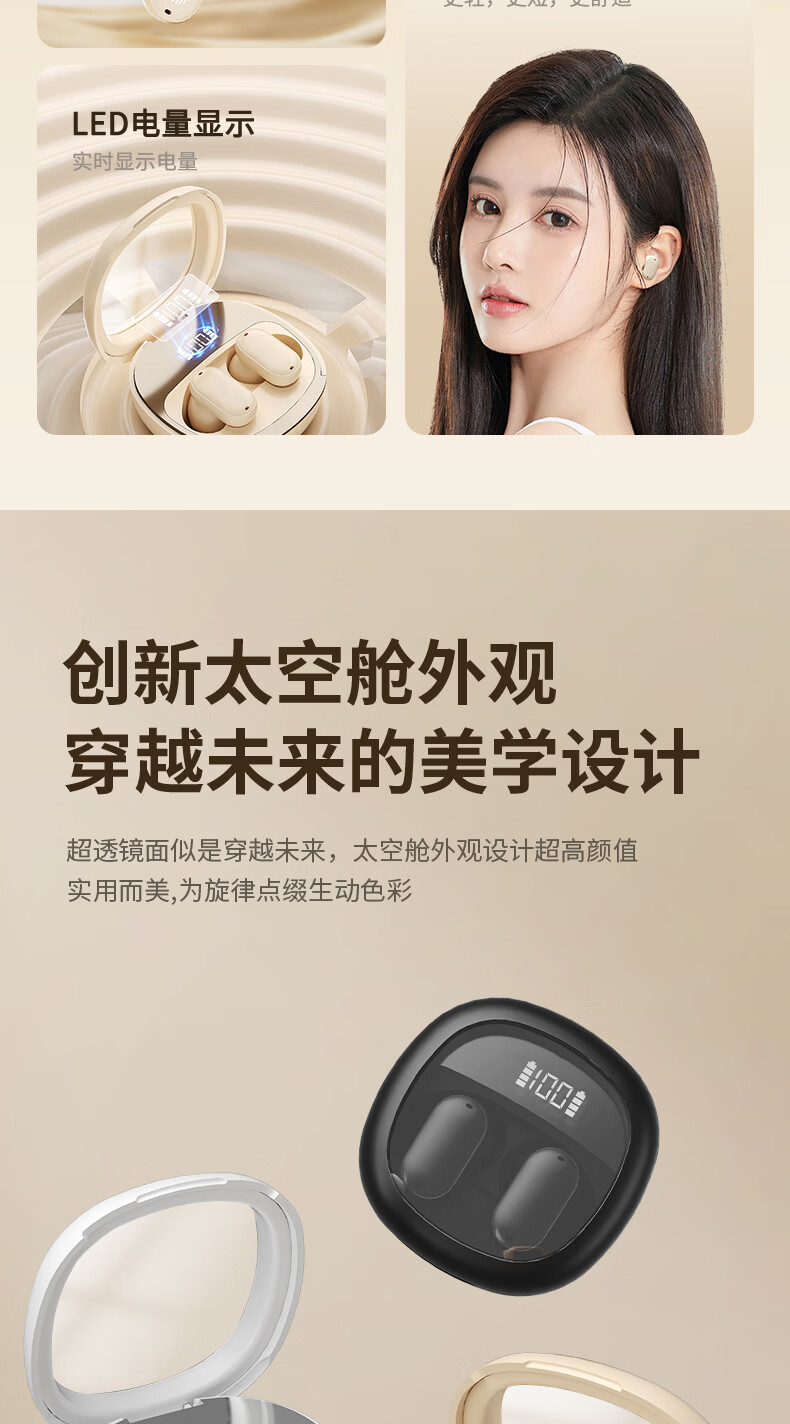 金声动音耳机蓝牙耳机AI语音耳夹式饰品手机电脑通用真蓝牙迷你运动无线款真无线蓝牙耳机迷你运动适用 暮云粉 不带饰品