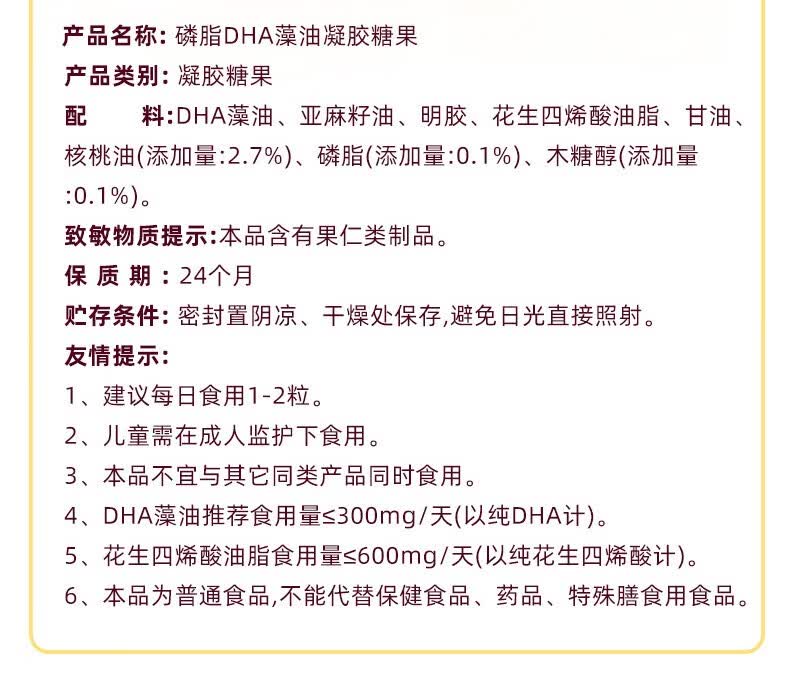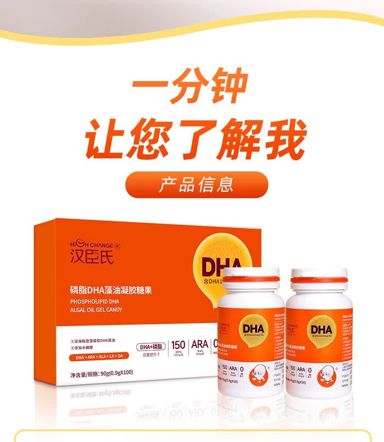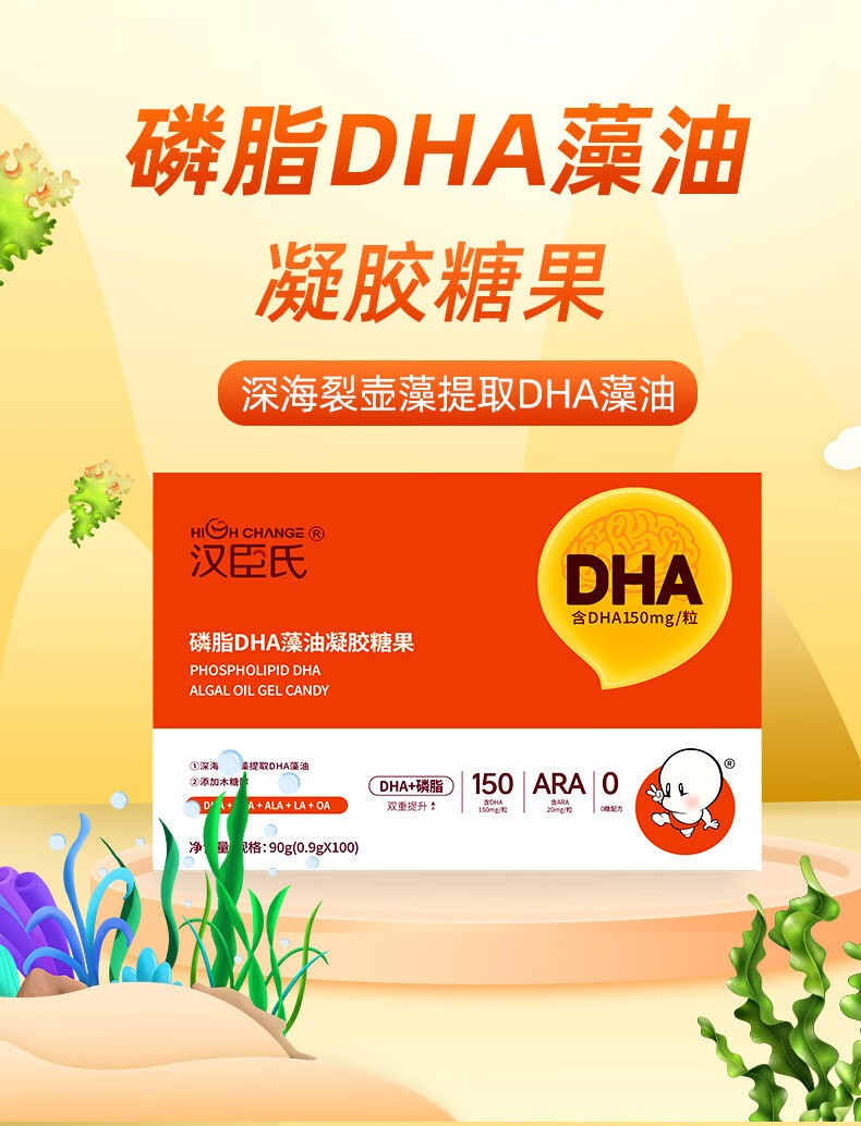 汉臣氏磷脂DHA藻油凝胶糖果儿童宝宝成人含ARA亚麻籽油100粒 90g*1盒