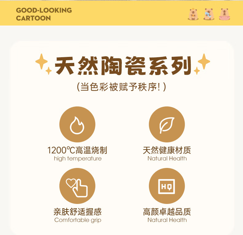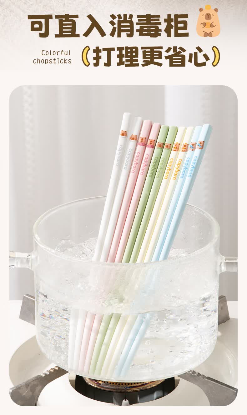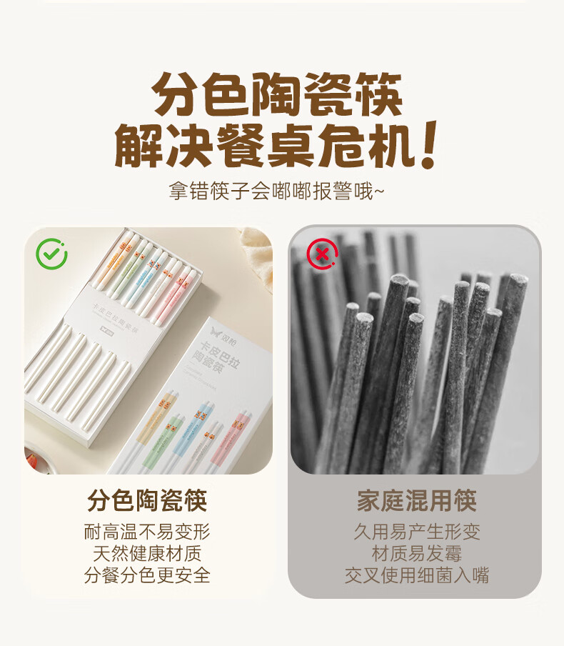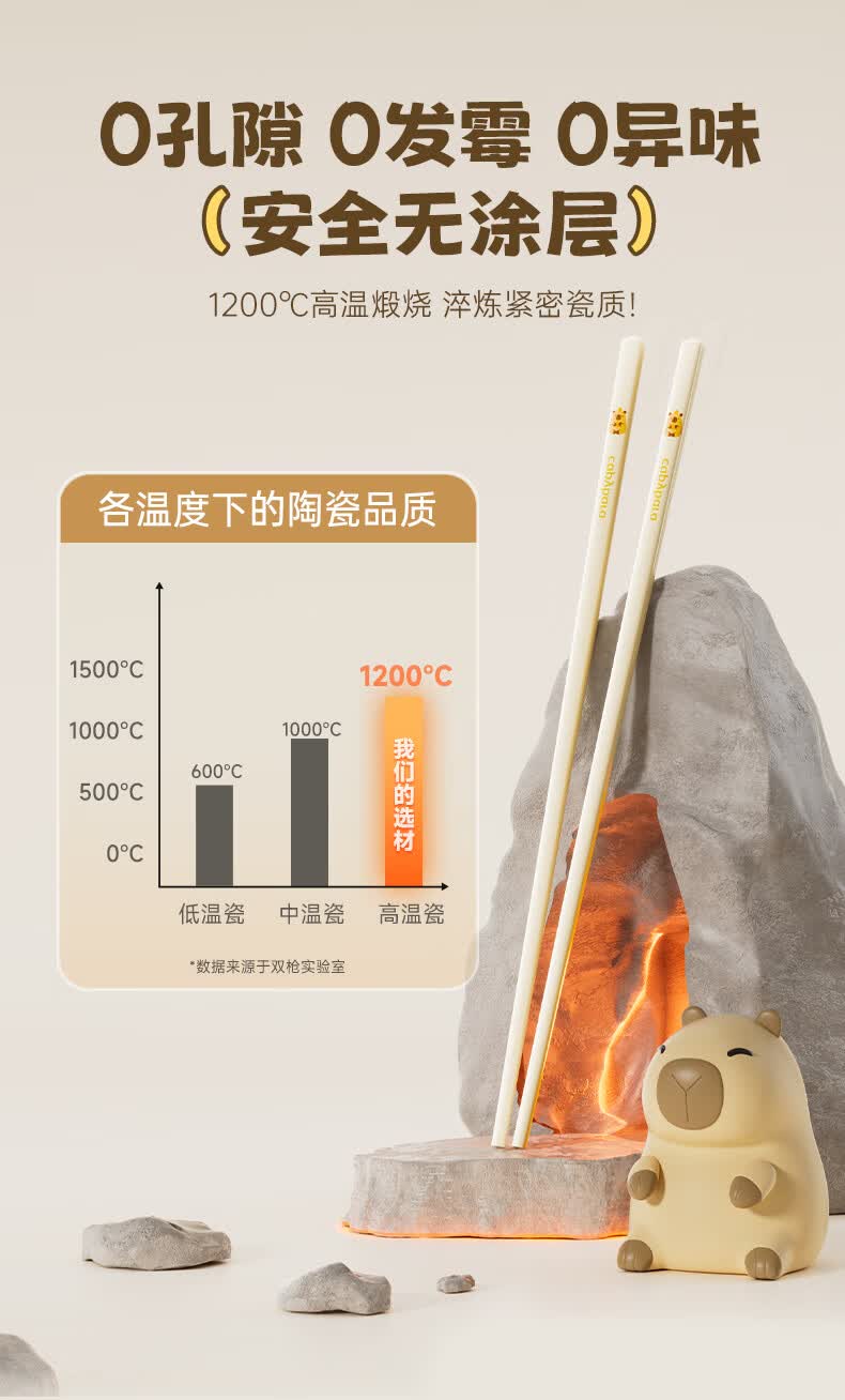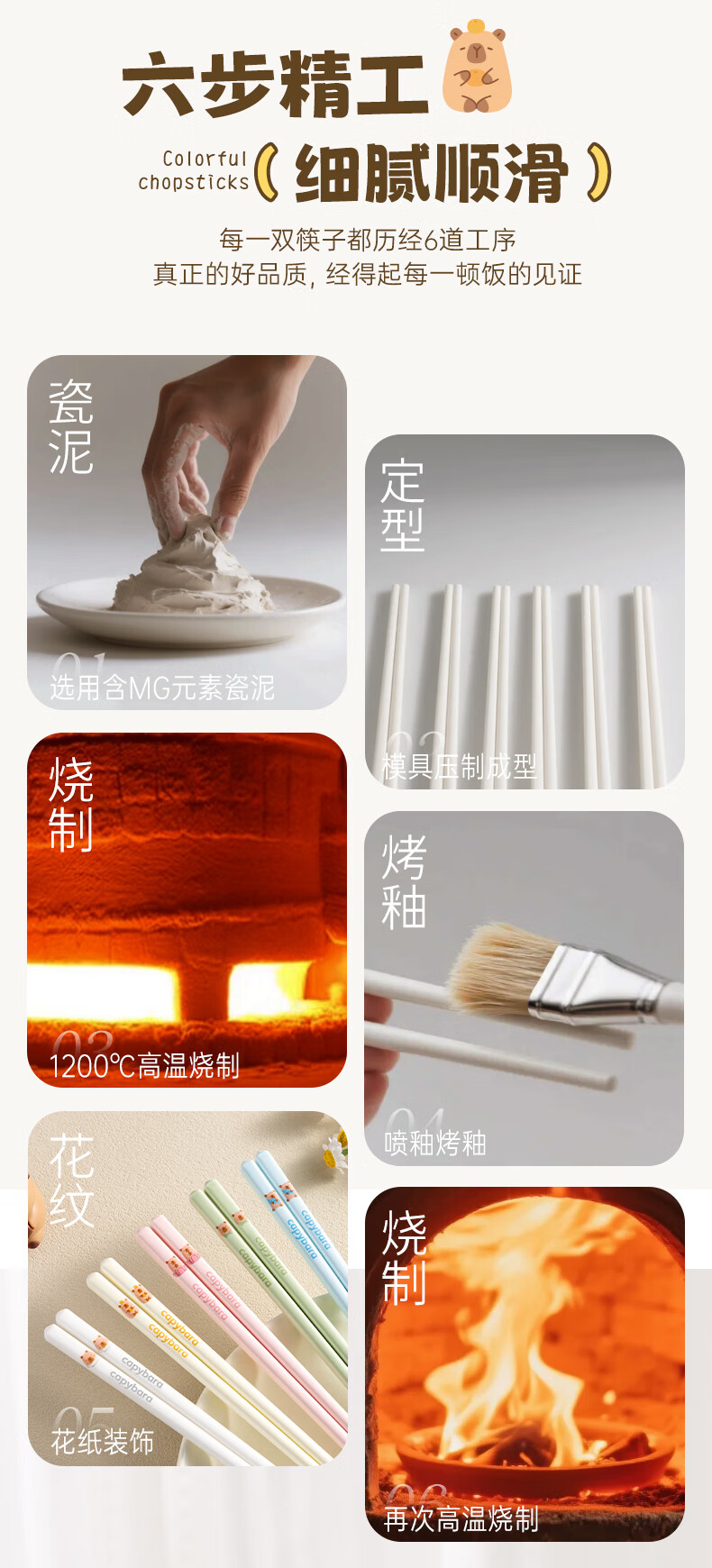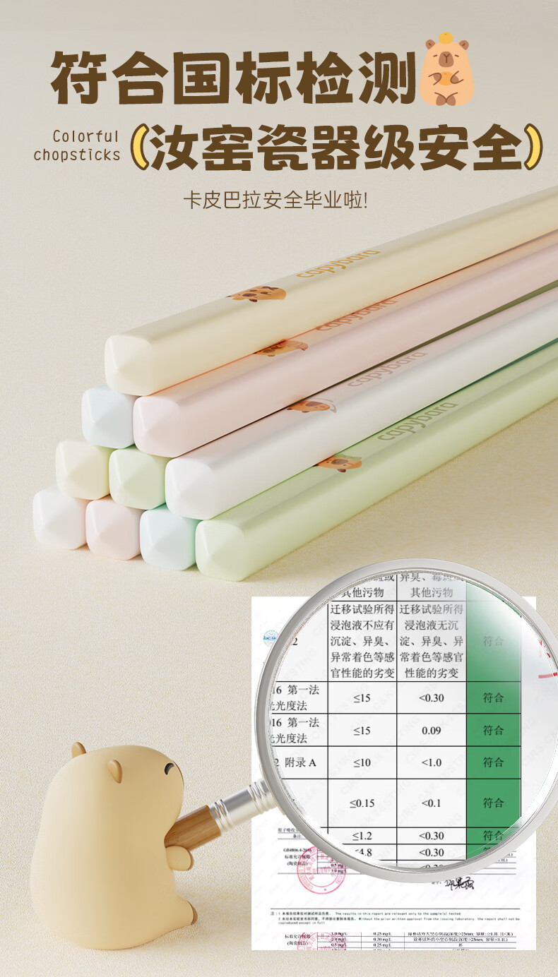 双枪家用陶瓷筷子食品接触级抗菌防霉 卡皮巴拉10双装 高档礼盒装