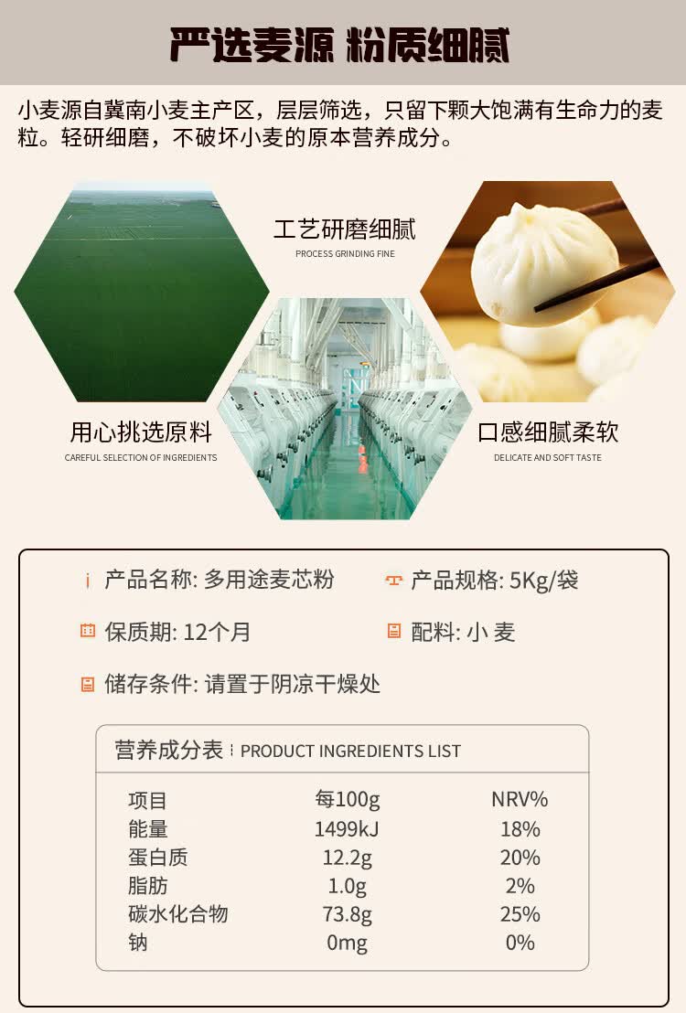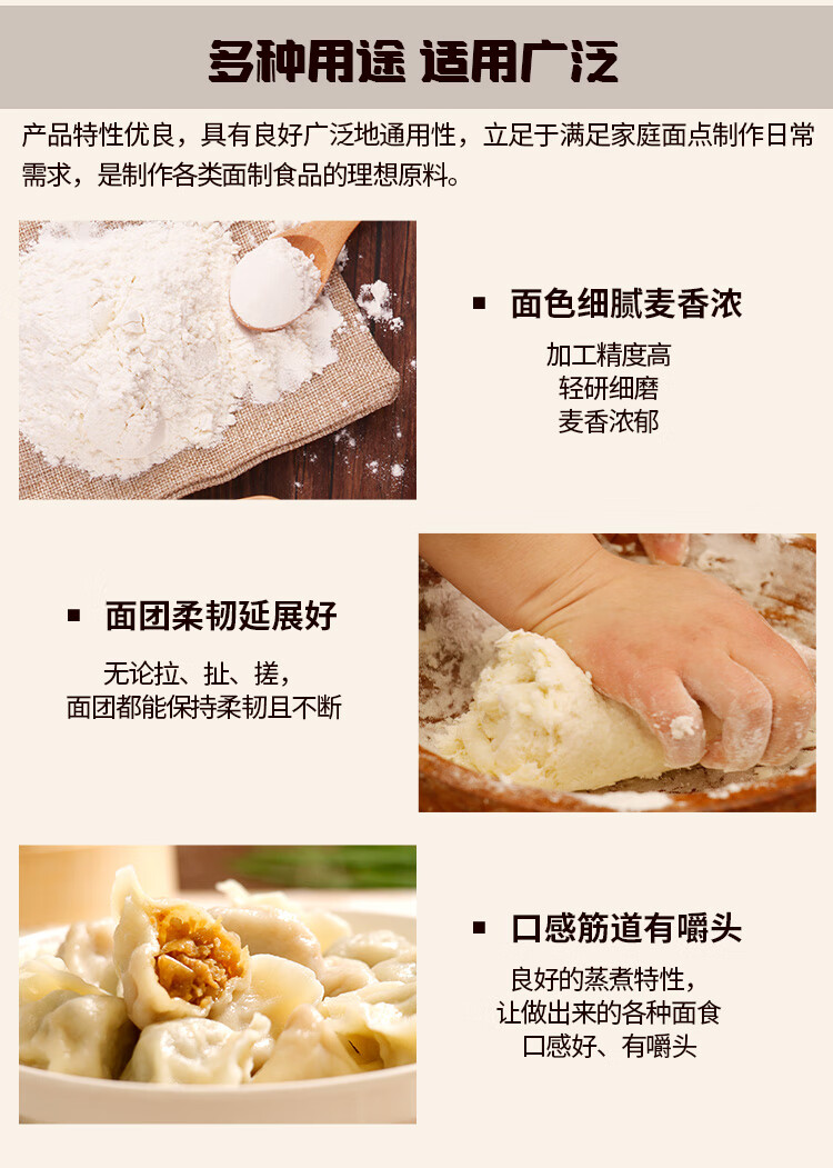 金沙河面粉 多用途麦芯小麦粉 包子馒头水饺饼 中筋粉10斤 京东自营