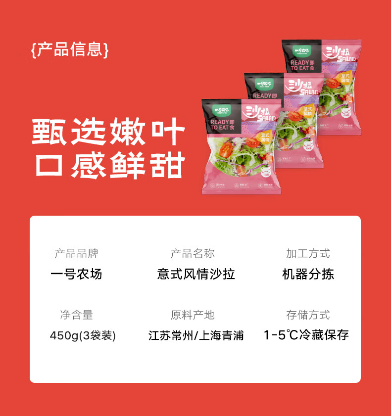 一号农场开袋即食意式风情沙拉150g*3无酱汁蔬菜沙拉轻食健身代餐源头直发