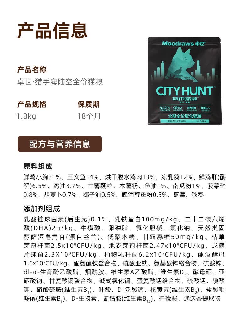 卓世鲜鸡肉三文鱼乳鸽猫粮高蛋白无谷全价成幼猫全阶段通用主食蓝猫 【爆款强韧骨骼】鸡鱼鸽全价猫粮1.8kg