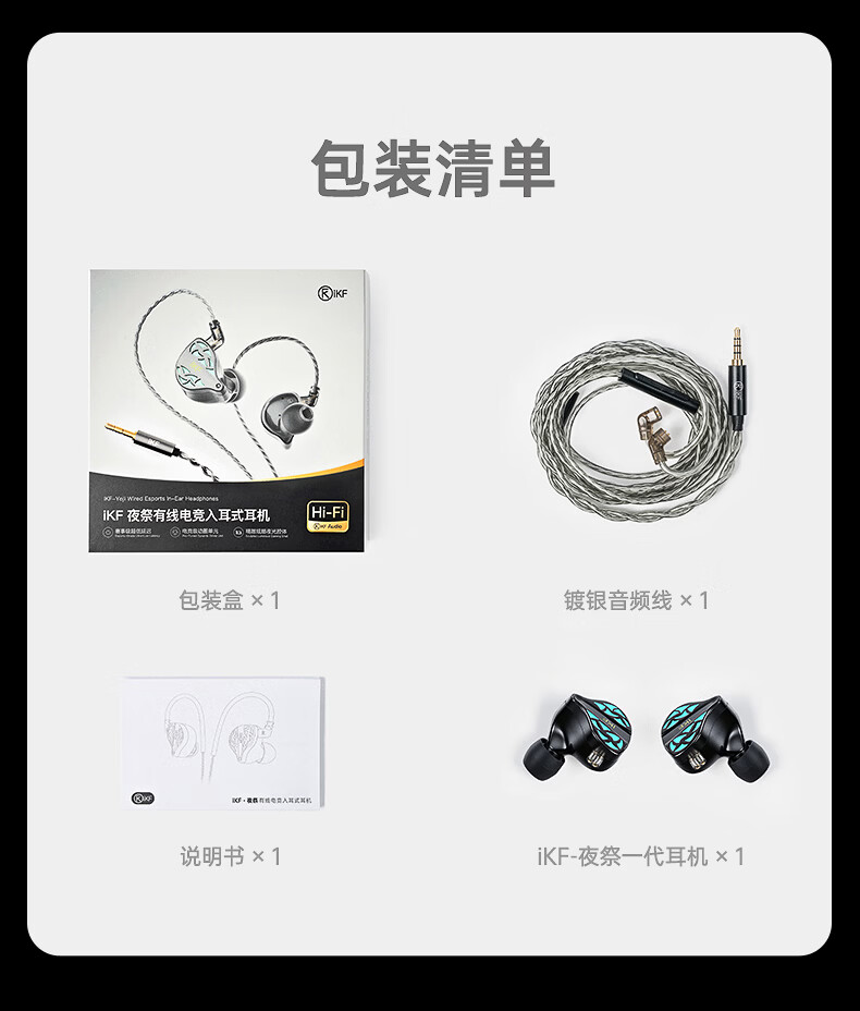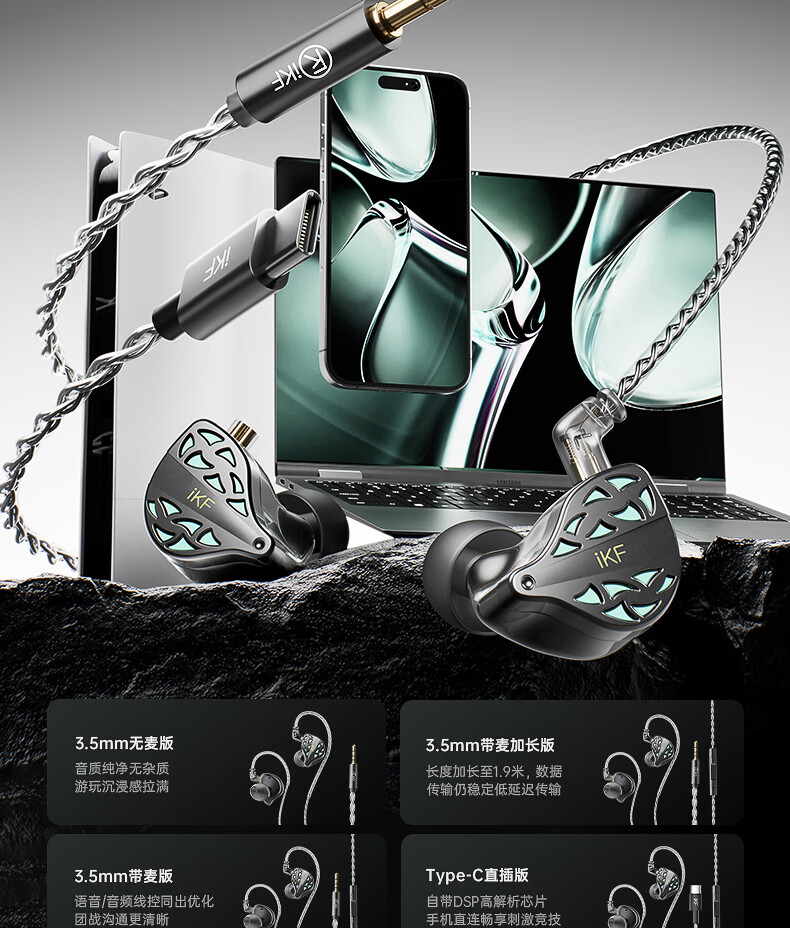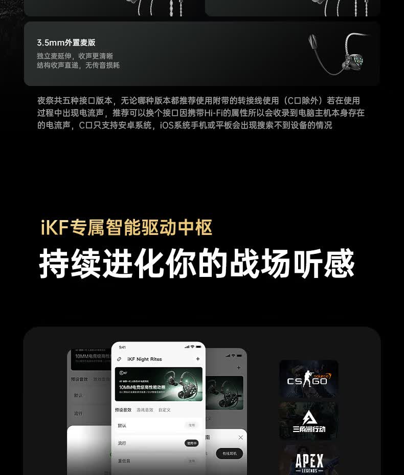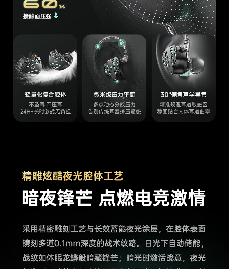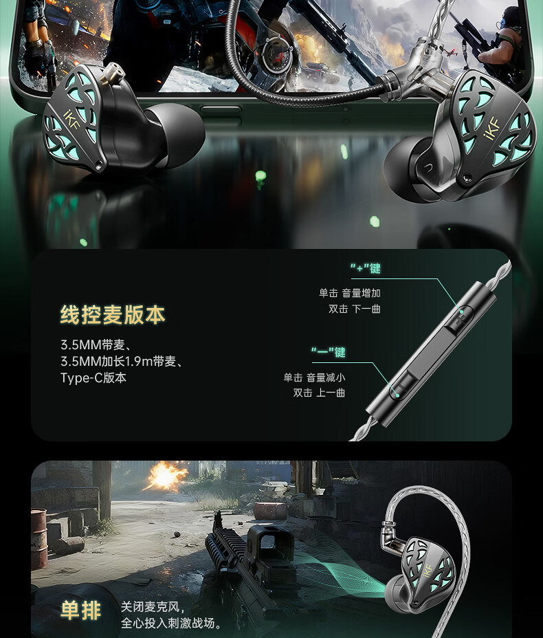 iKF 夜祭【电竞HiFi】有线入耳式游戏电竞耳机FPS电竞高清麦发烧级耳塞3.5mm无畏契约三角洲CS手游