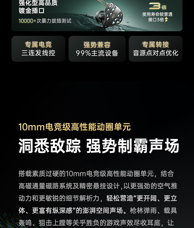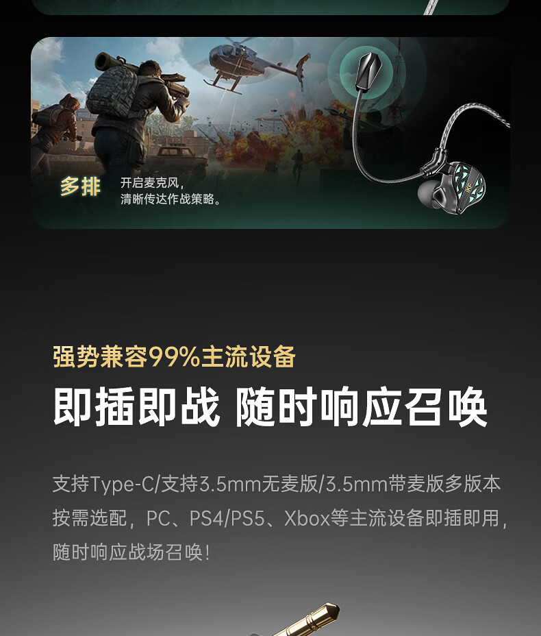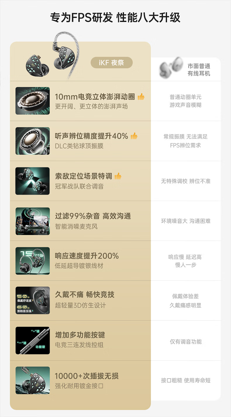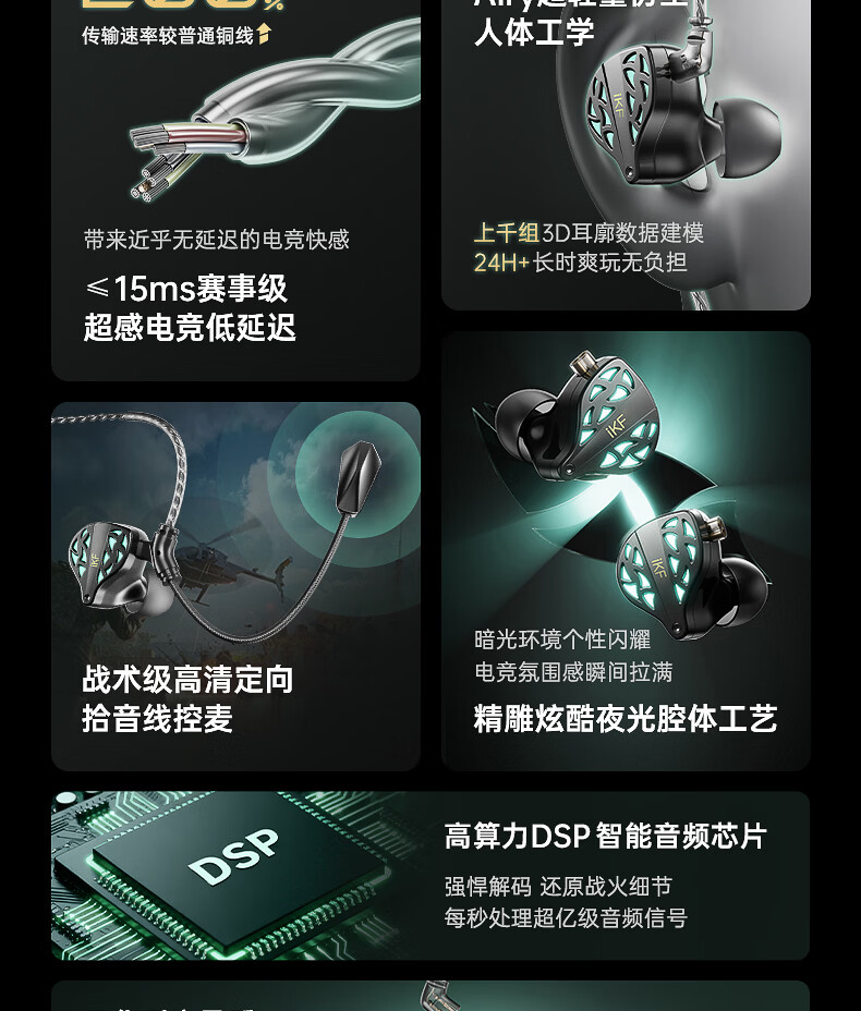 iKF 夜祭【电竞HiFi】有线入耳式游戏电竞耳机FPS电竞高清麦发烧级耳塞3.5mm无畏契约三角洲CS手游