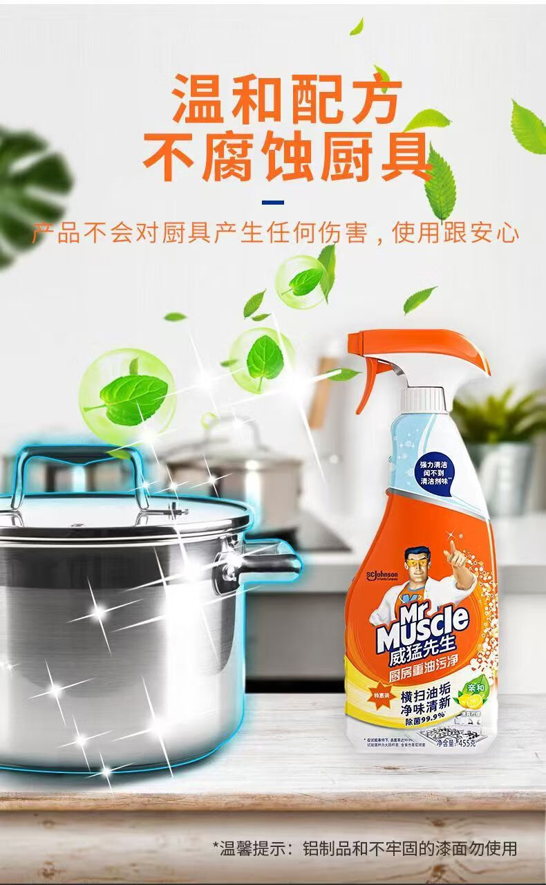 MR MUSCLE 威猛先生 DAILY厨房重油污净柠檬清香去油剂500克 500克*4瓶共2000克 4瓶+4喷头500克