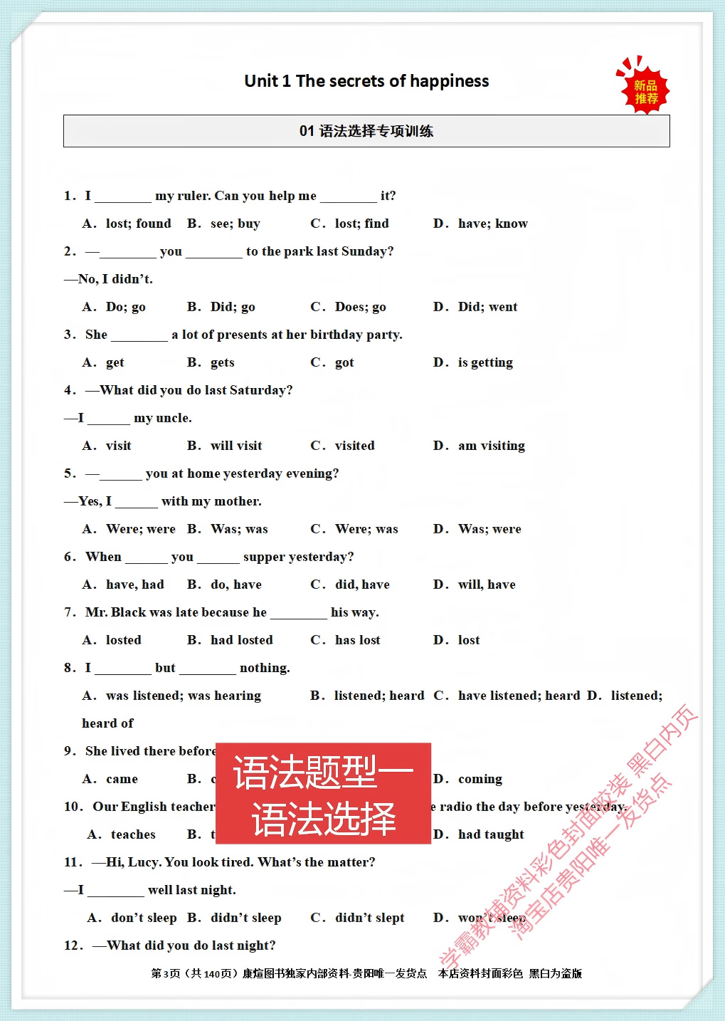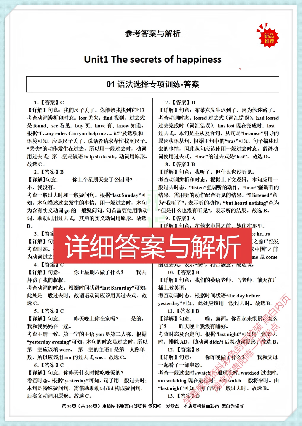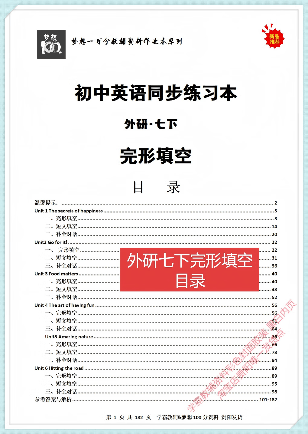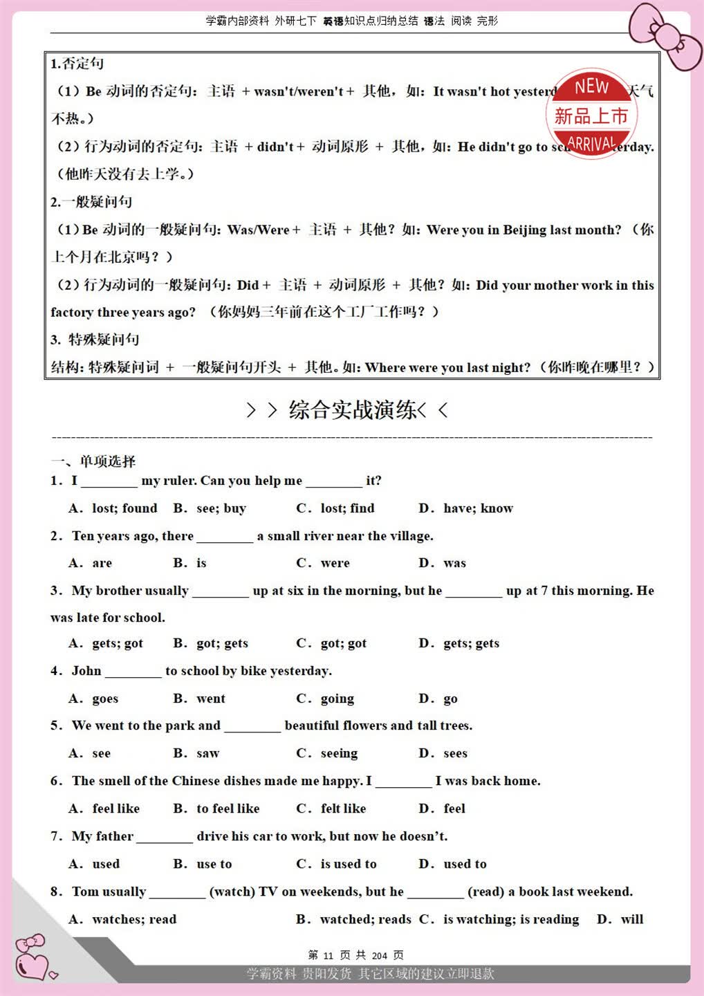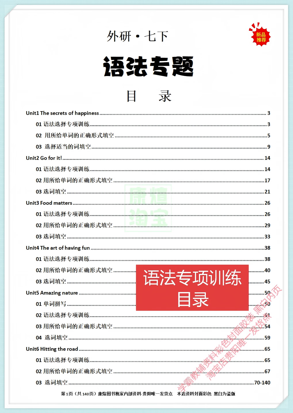 七八年级上下册英语全题型训练完形阅读语法词汇 2026 新版含详解 【外研八上下2本】语法专项训练